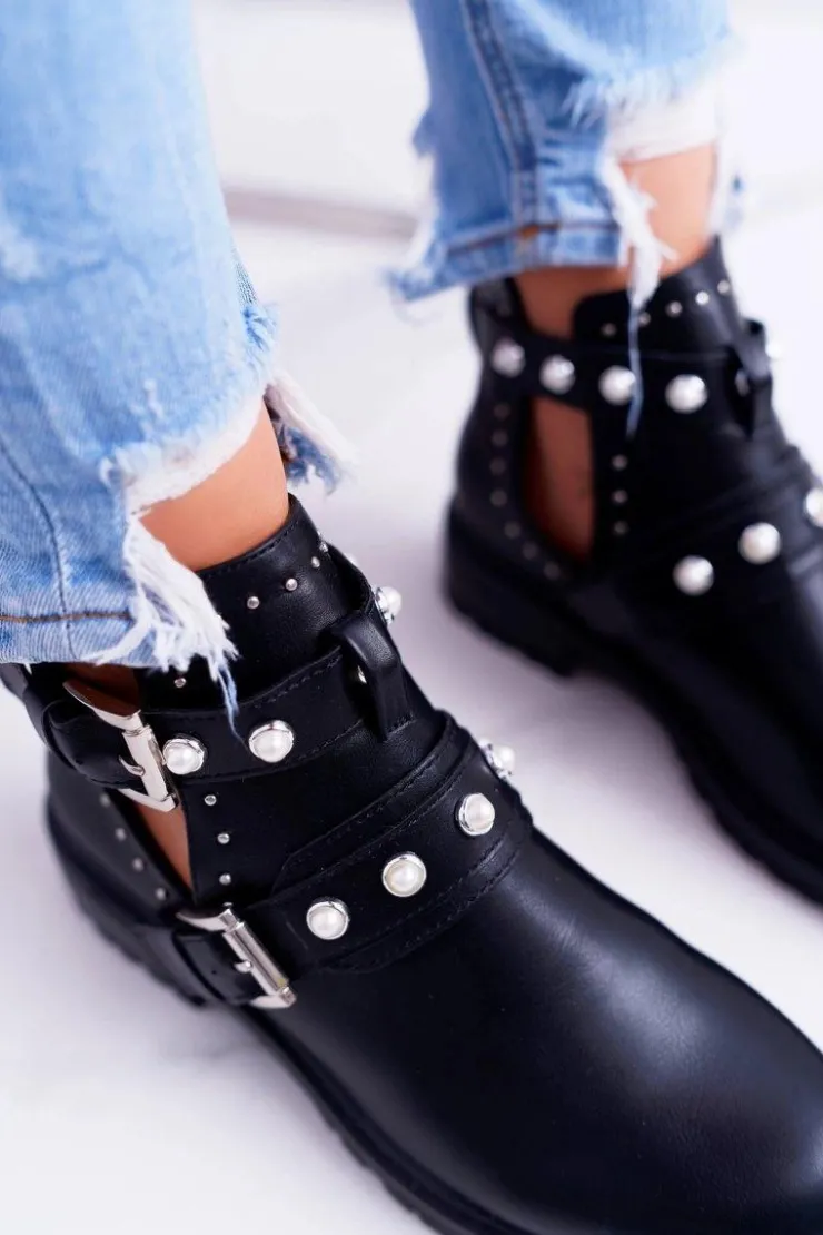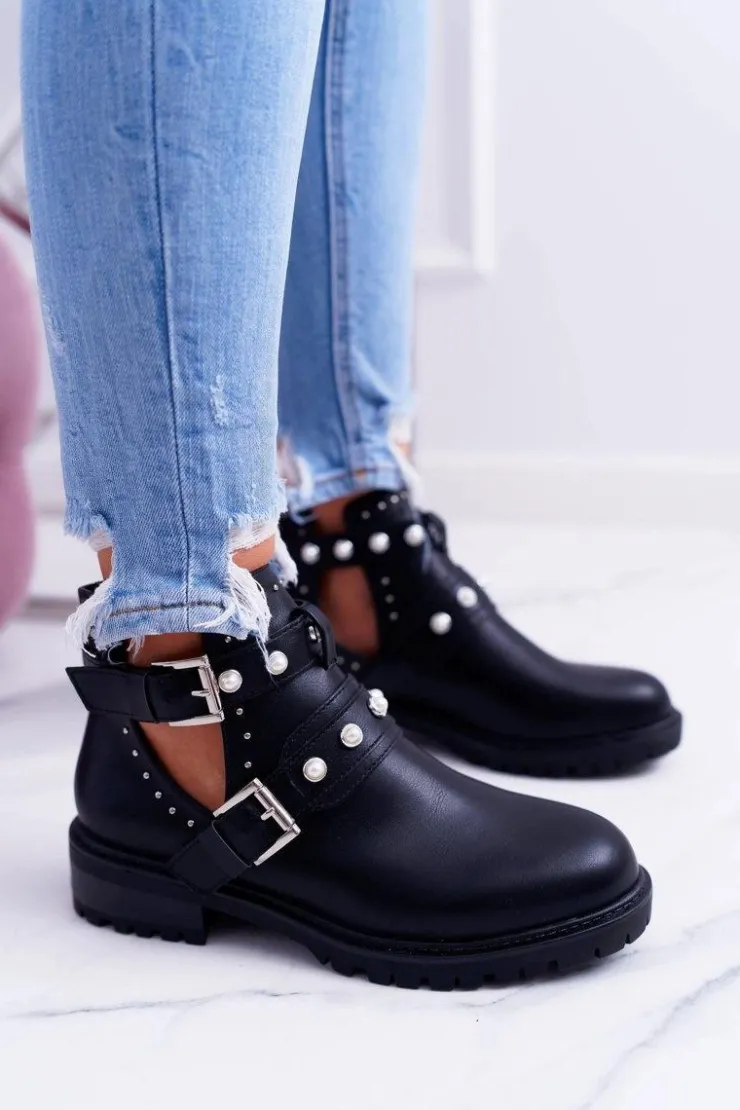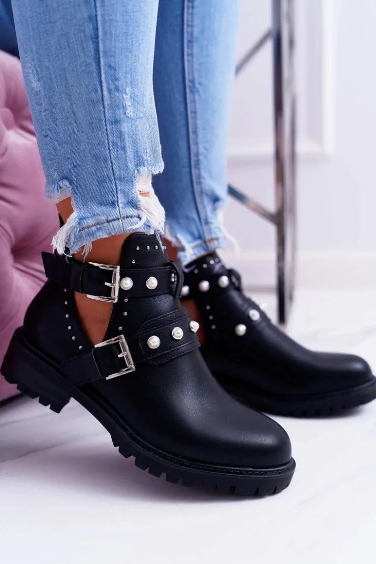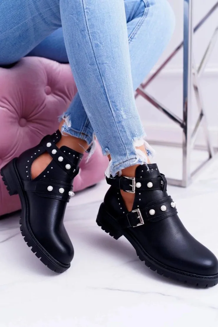 Damskie Boto Czarne Botki z Wycięciami Cadenza