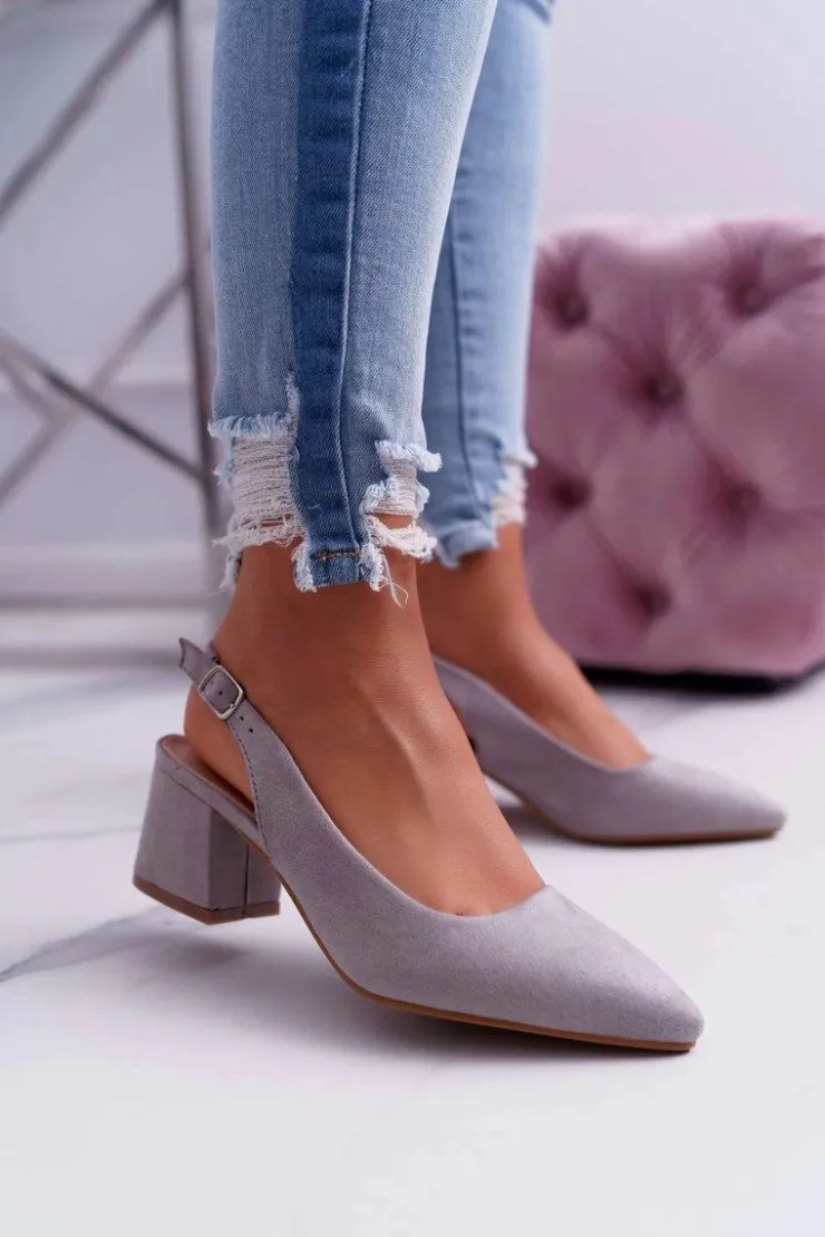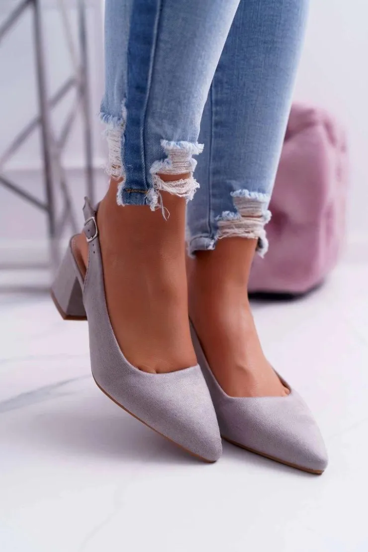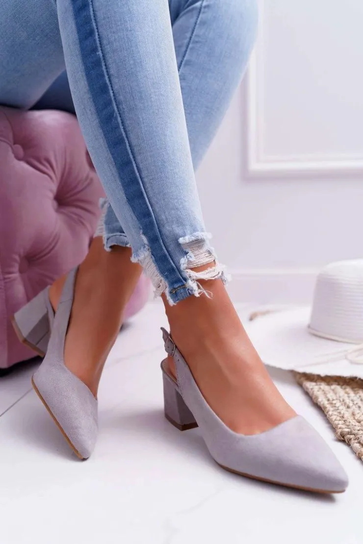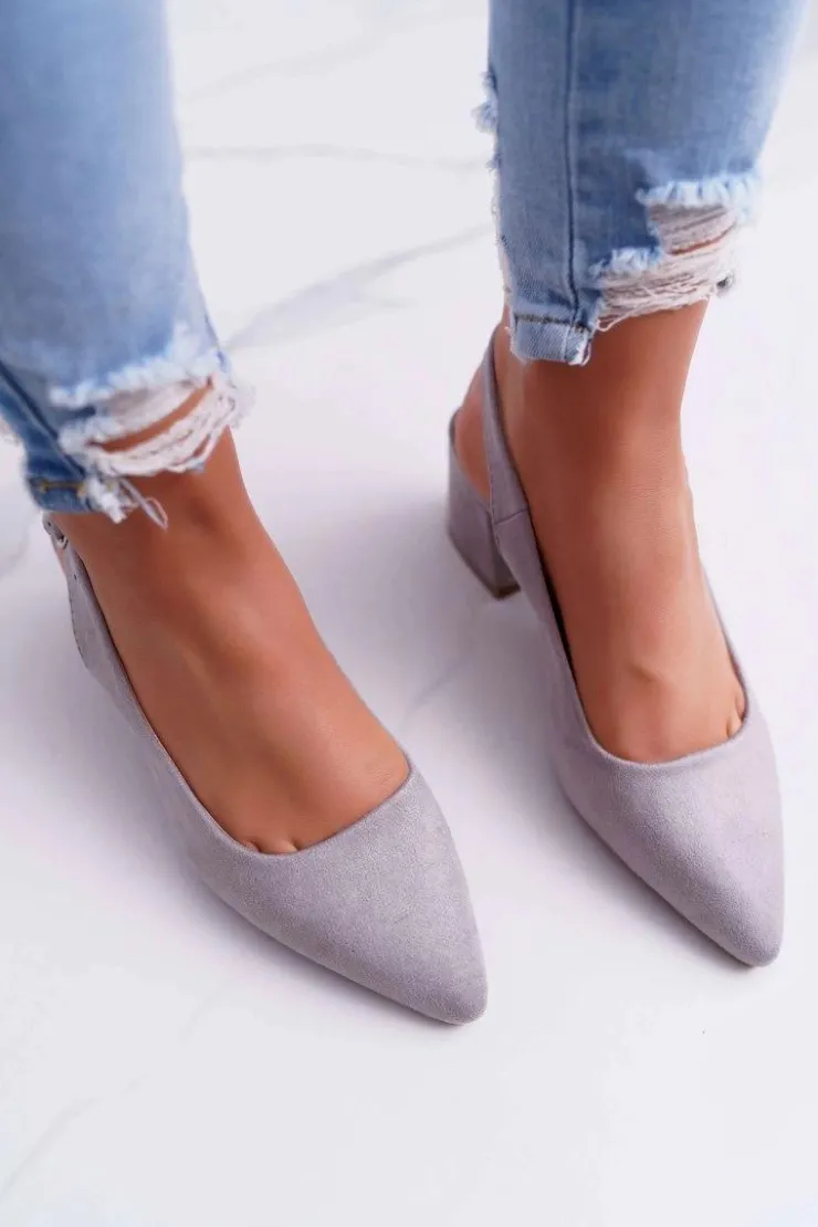 Damskie Boto Czółenka Damskie Na Słupku W Szpic Szare Contrail