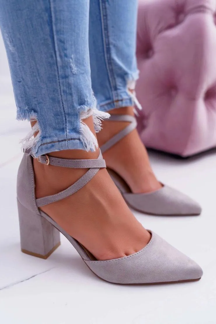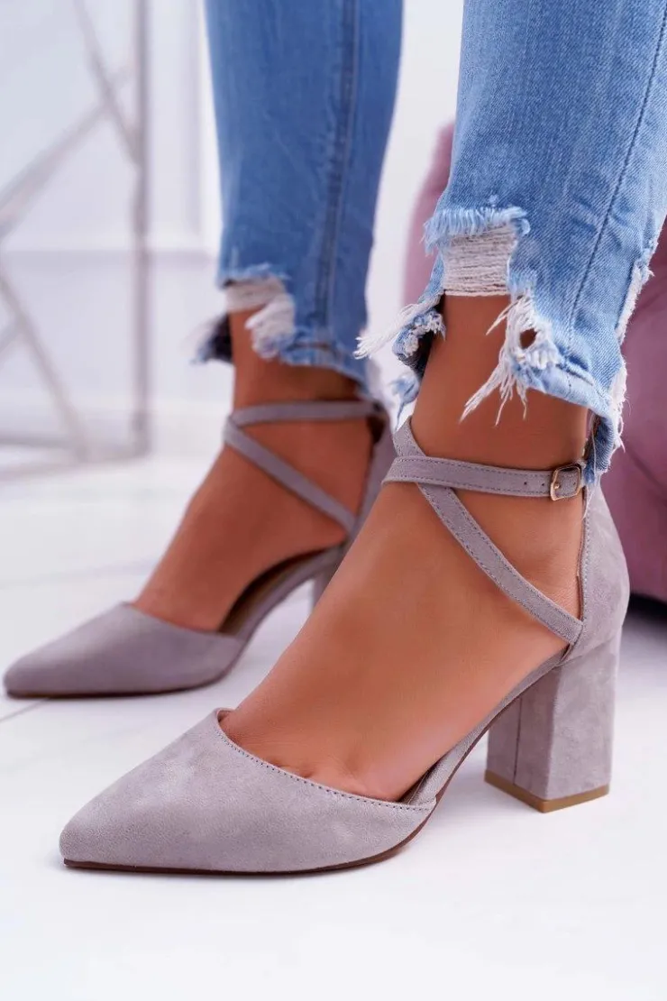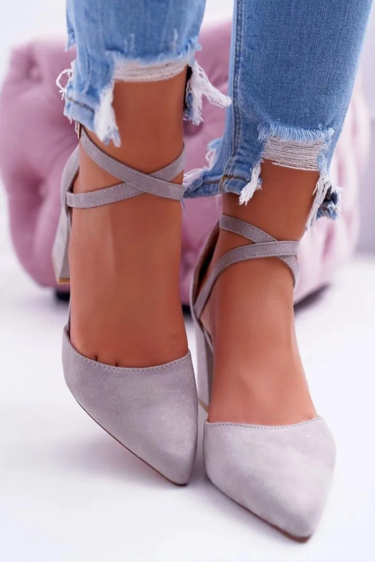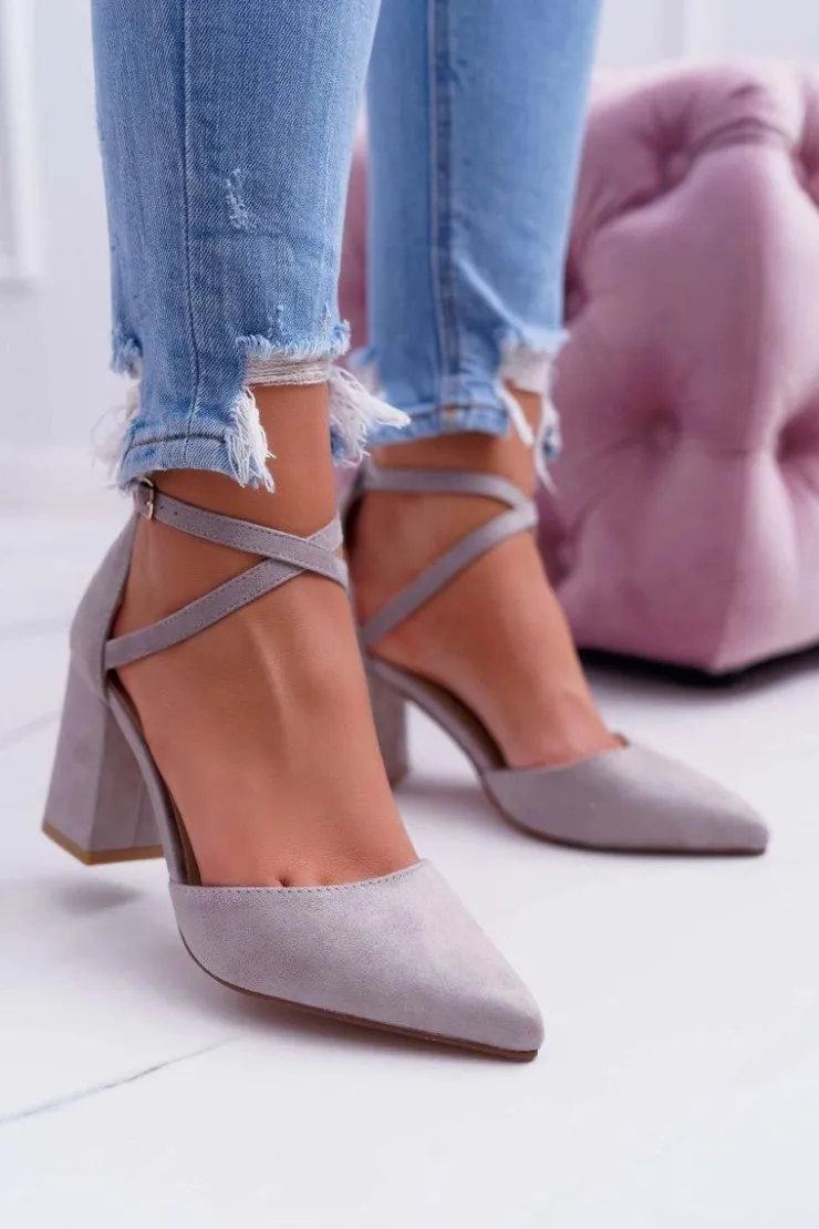 Damskie Boto Czółenka Damskie Na Słupku W Szpic Szare Traffic