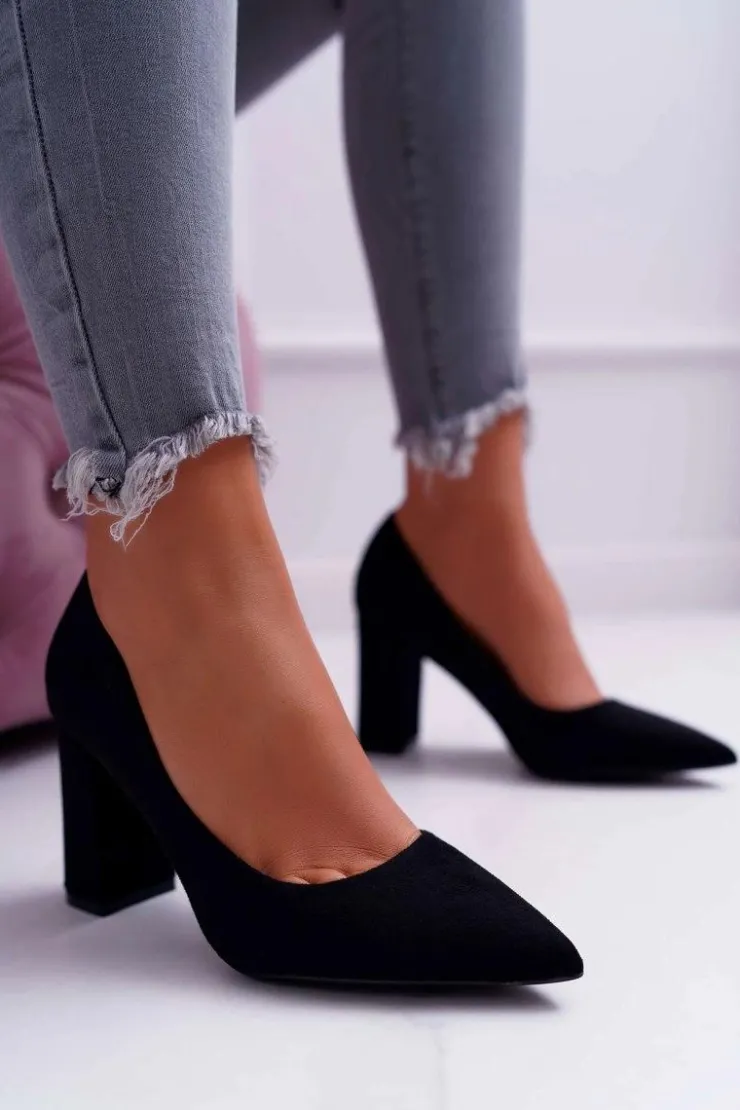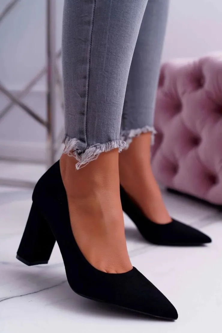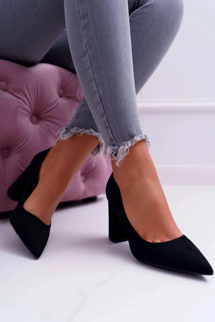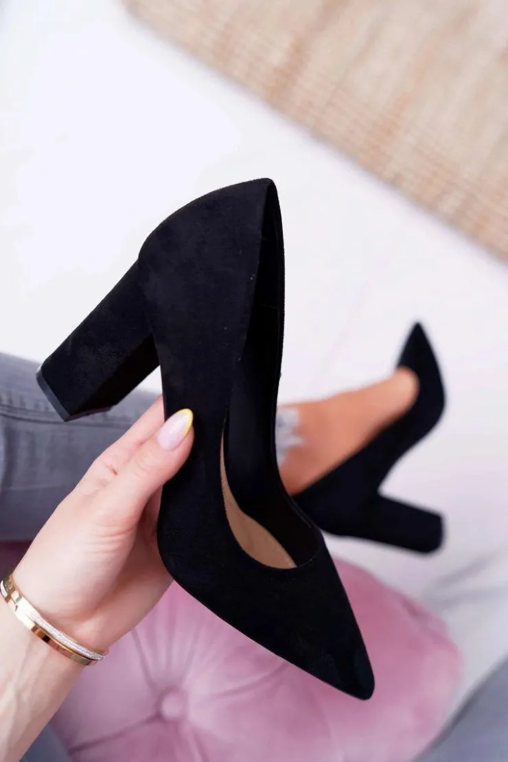 Damskie Boto Czółenka Damskie Na Słupku Zamszowe Czarne Clarina