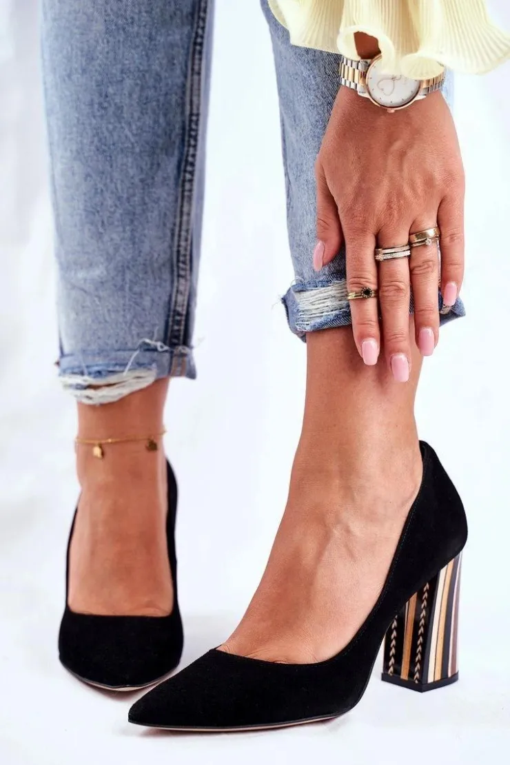 Damskie Boto Czółenka Damskie Visconi Zamszowe Czarne 7417302/200