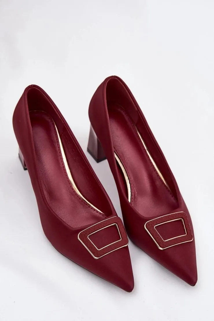 Damskie Boto Czółenka Na Słupku Z Ozdobną Klamrą Bordowe Seriva