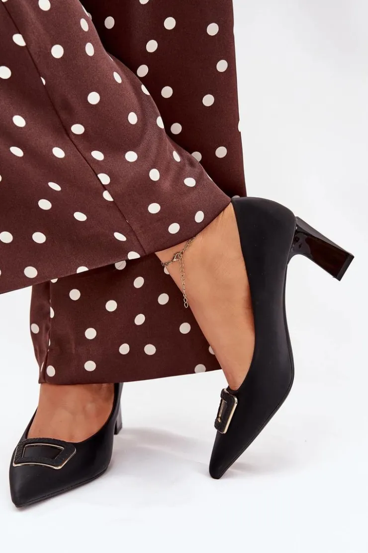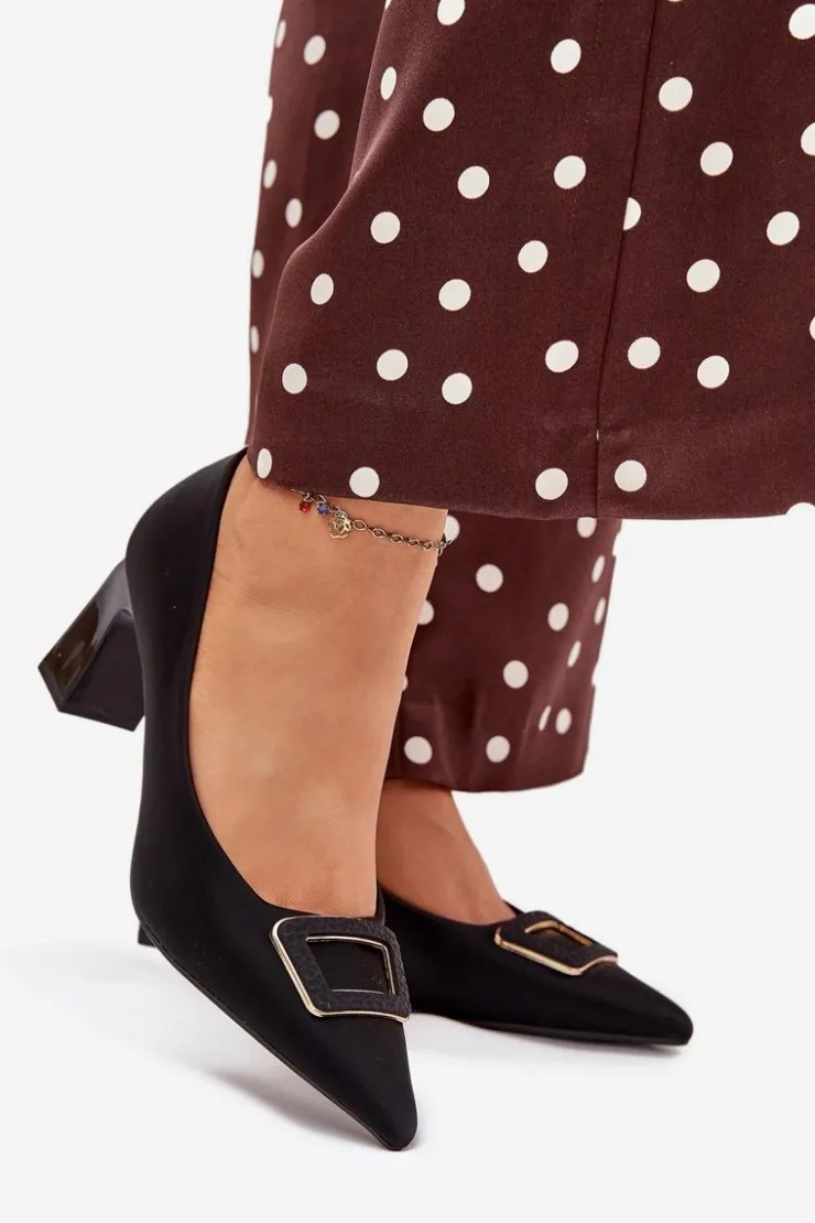 Czółenka damskie z eko skóry, osadzone na obcasie w formie słupka, to elegancka propozycja na różne okazje. Z przodu ozdobna klamra dodaje im wyjątkowego charakteru, a noski w szpic optycznie wysmuklają nogi. Idealne do sukienek, spódnic czy spodni, te czółenka łączą styl, wygodę i nowoczesny wygląd, tworząc ponadczasową klasykę w Twojej garderobie. Przy wyborze rozmiaru prosimy kierować się tabelą rozmiarów