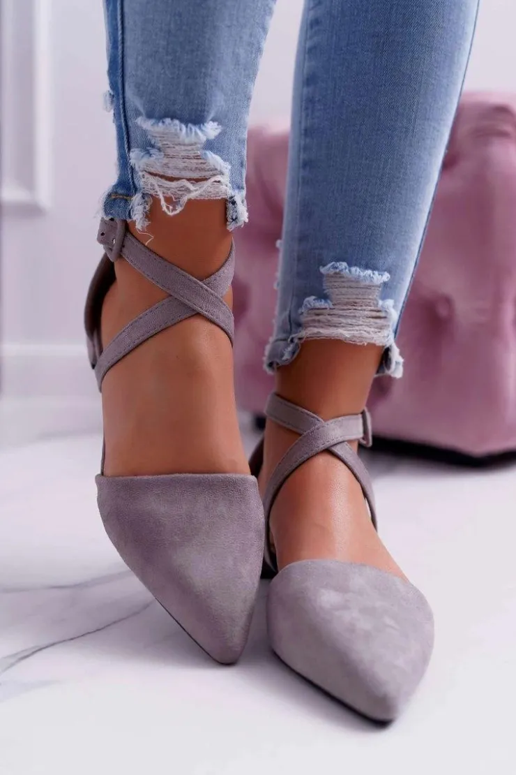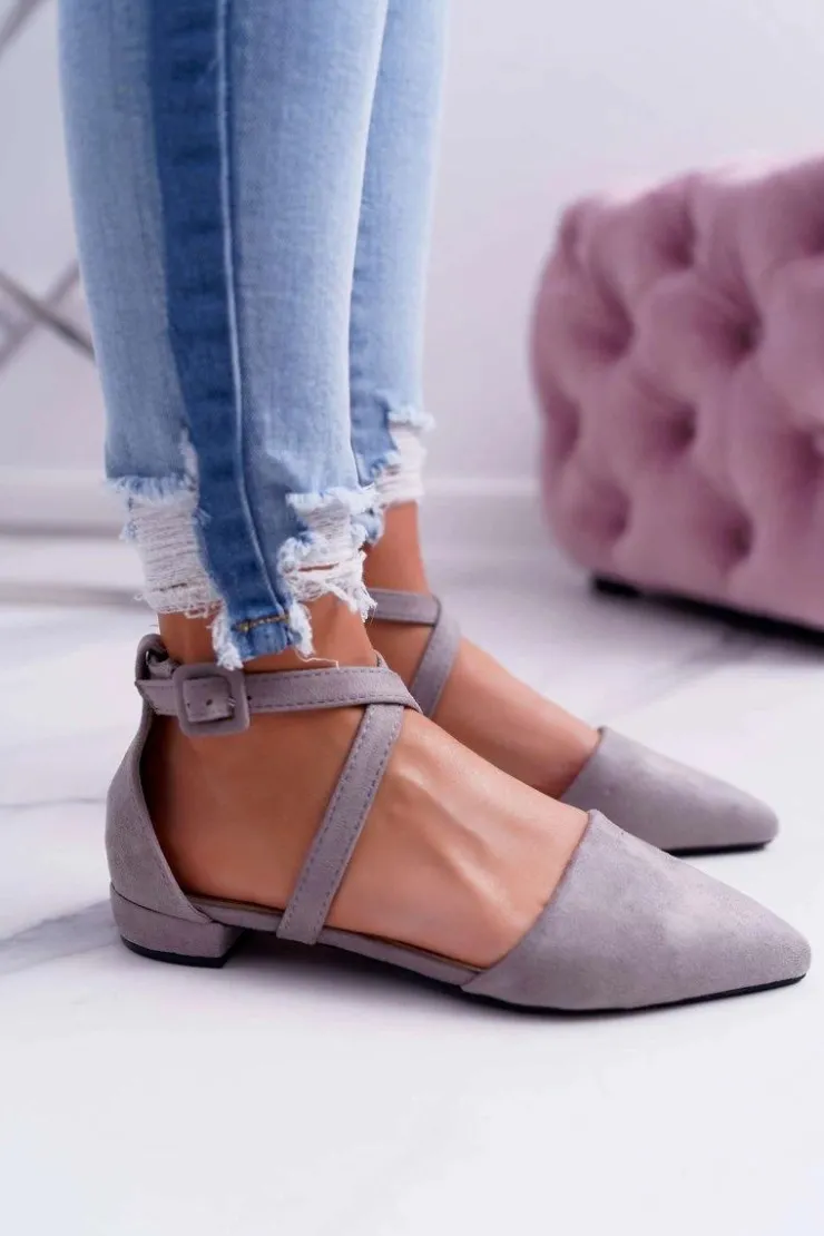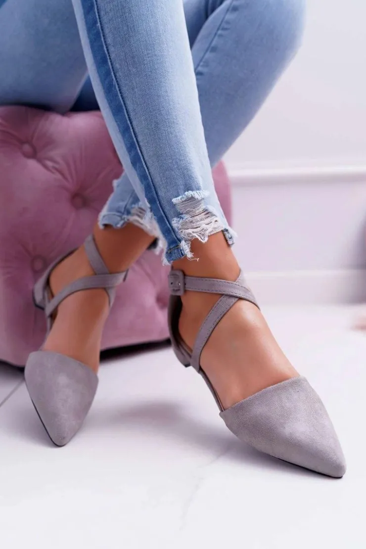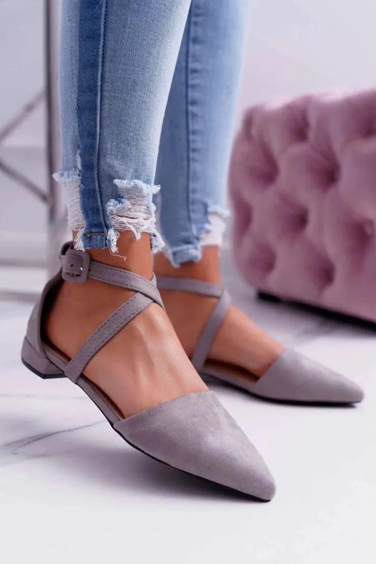 Damskie Boto Damskie Baleriny Szare Zamszowe W Szpic Medena