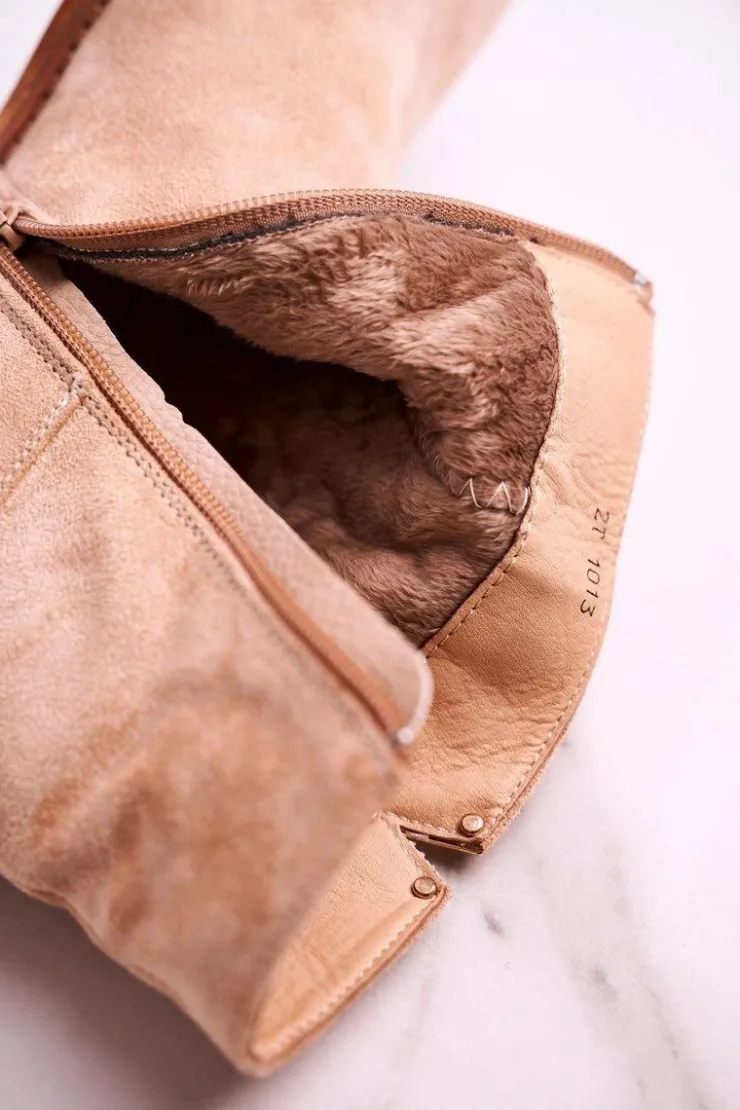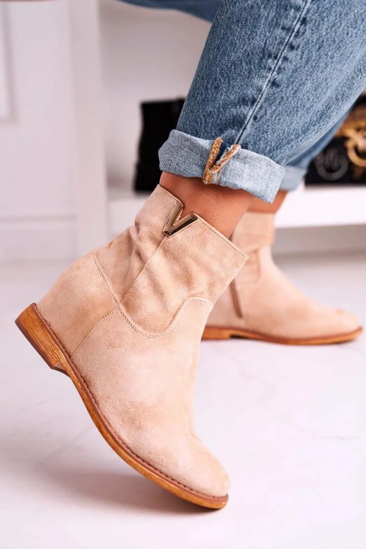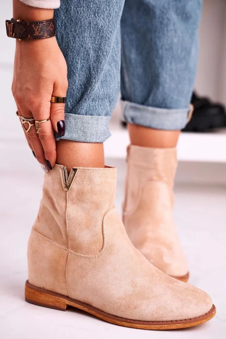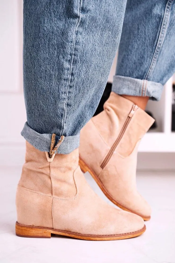 Damskie Boto Damskie Botki Na Koturnie Zamszowe Beżowe Vanya