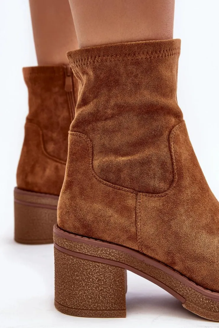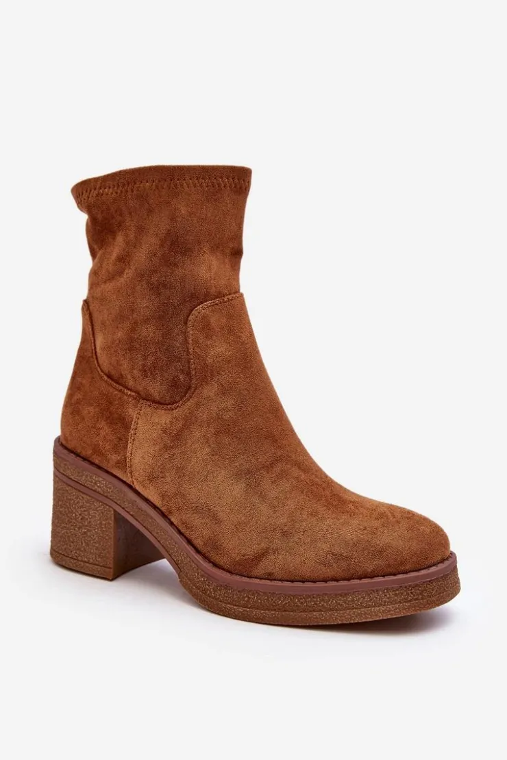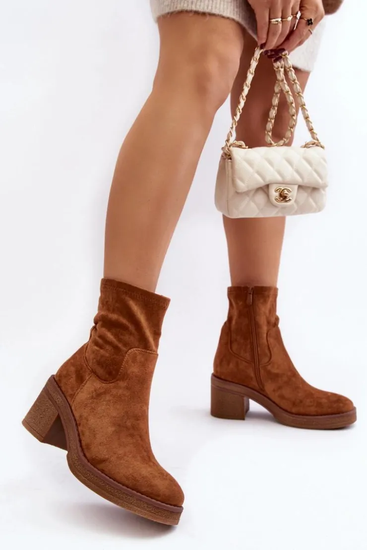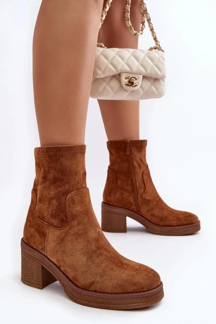 Klasyczne botki damskie, które dopasujesz do wielu jesienno-zimowych stylizacji! Wykonane z eko zamszu. Osadzone na obcasie w postaci słupka. Noski zaokrąglone. Środek częściowo ocieplony kocem obuwniczym. Koniecznie musisz je mieć! Przy wyborze rozmiaru prosimy sugerować się tabelą rozmiarów.