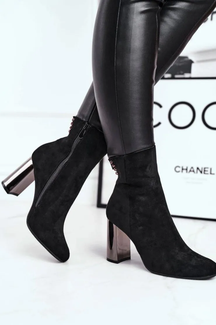 Damskie Boto Damskie Botki Na Słupku Czarne Trens