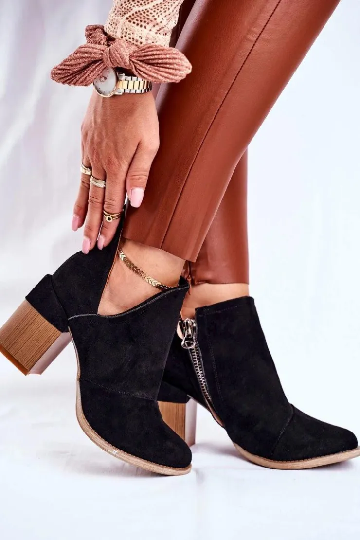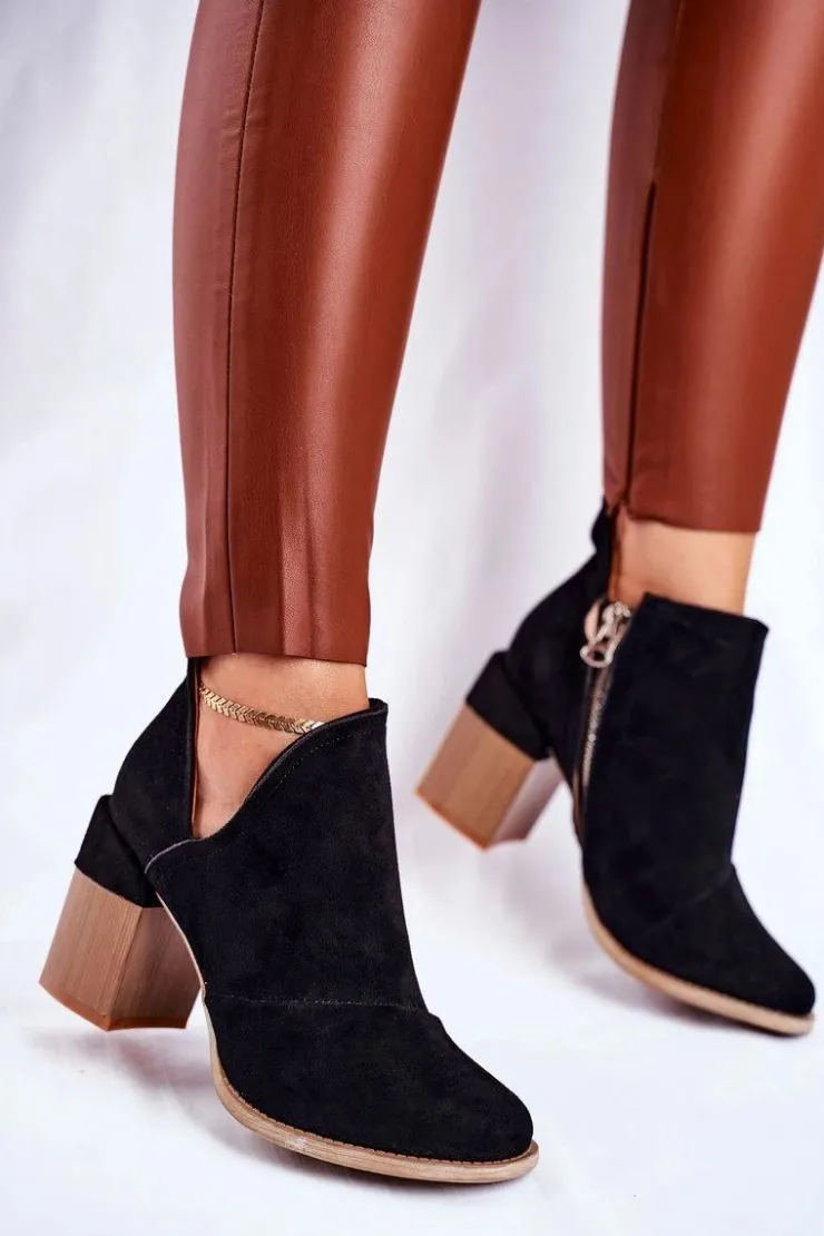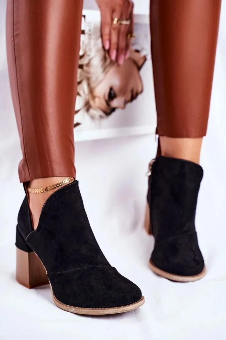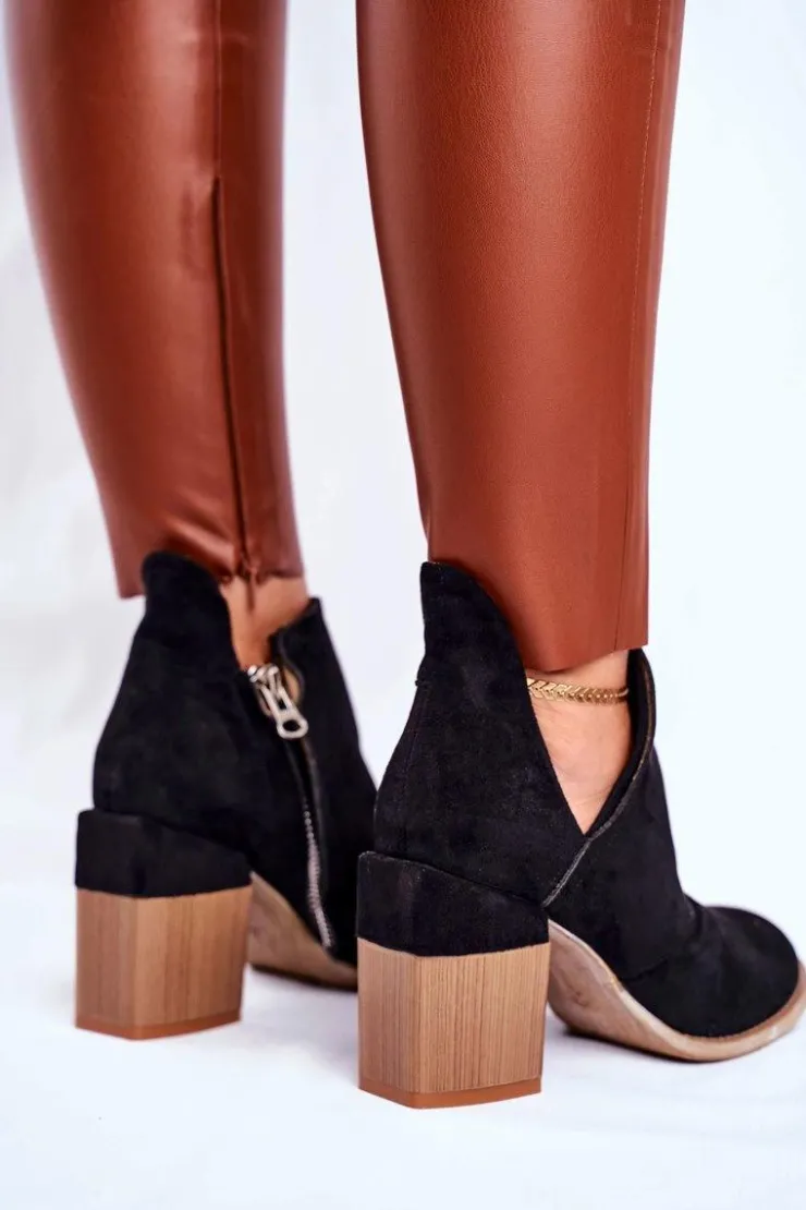 Damskie Boto Damskie Botki Na Słupku Czarne Wycięte Meliori