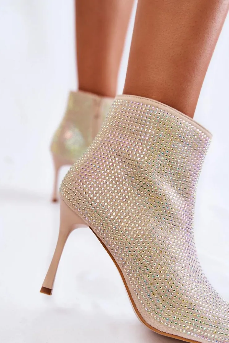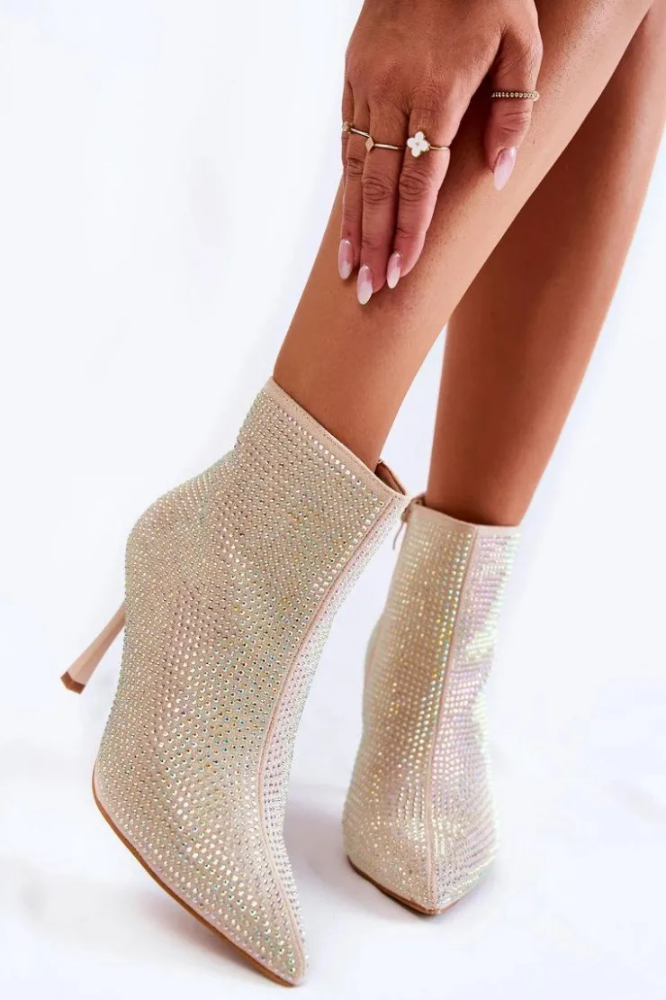 Cudowne botki zostały wykonane z eko zamszu. Model osadzony na obcasie w postaci szpilki, z noskiem w szpic świetnie wysmukli nogi. Cholewka została ozdobiona mieniącymi się dżetami. Botki są zapinane z boku na suwak. Zapiętek w tych botkach jest usztywniany. Model ten świetnie sprawdzi się w wielu stylizacjach! Te botki koniecznie musisz mieć w swojej szafie! Przy wyborze rozmiaru prosimy sugerować się tabelą rozmiarów.
