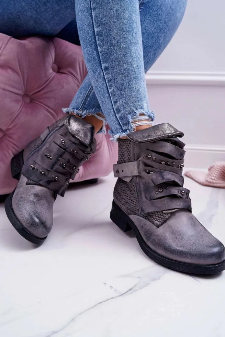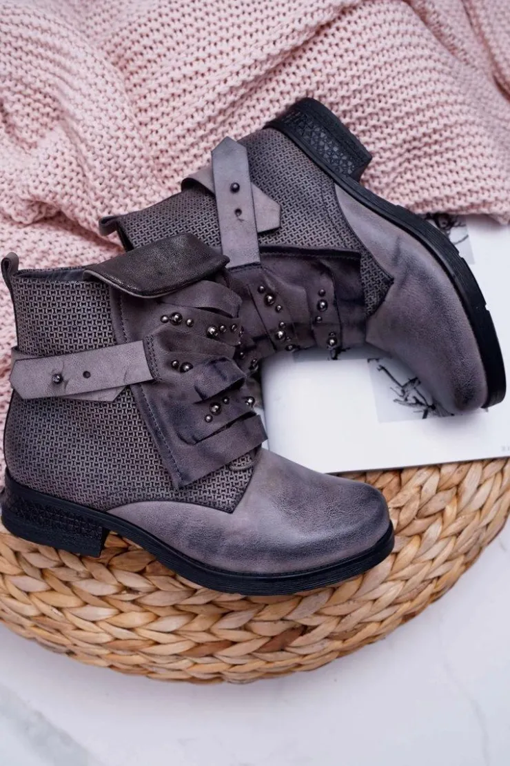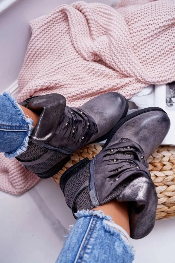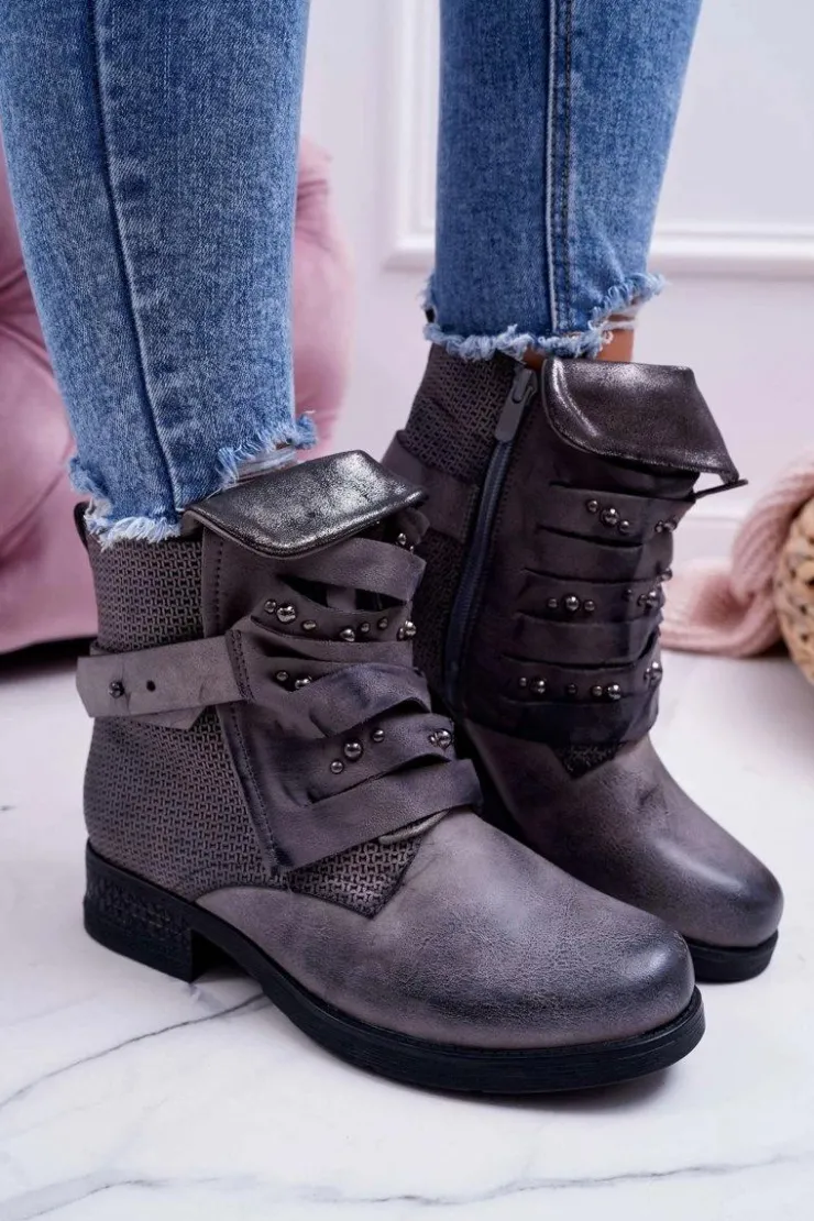 Damskie Boto Damskie Botki Płaski Obcas Ciepłe Szare Debra