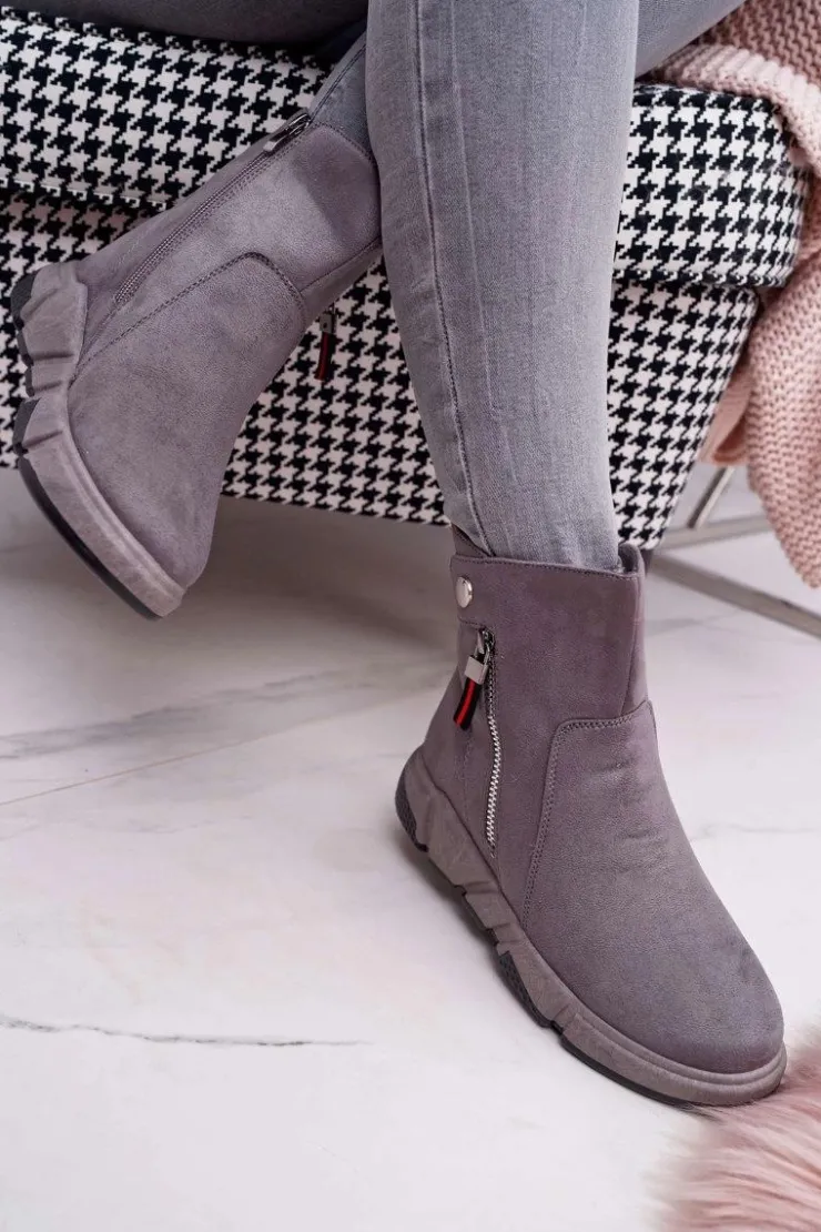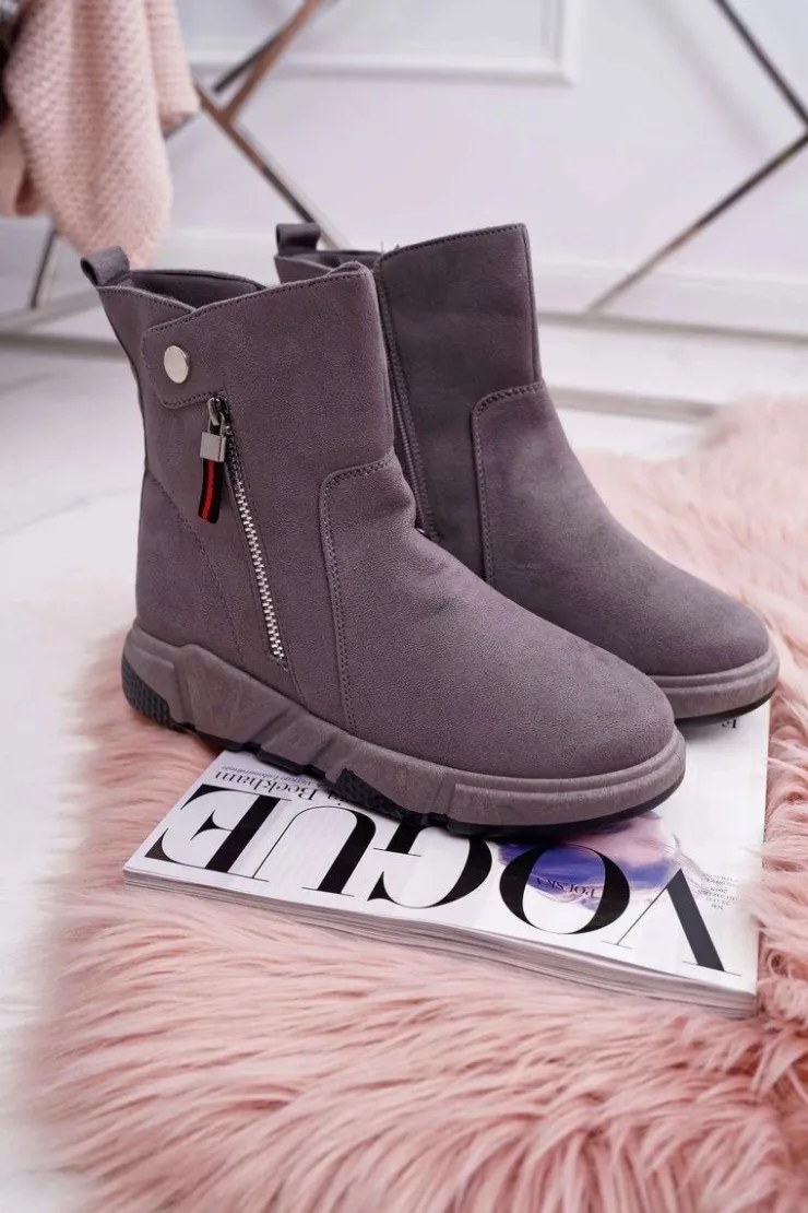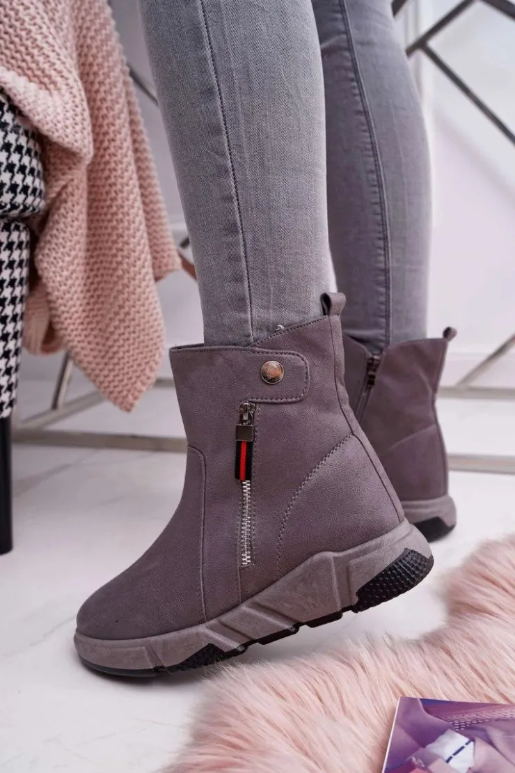Damskie Boto Damskie Botki Sportowe Ocieplane Szary SJ1938 Nefera