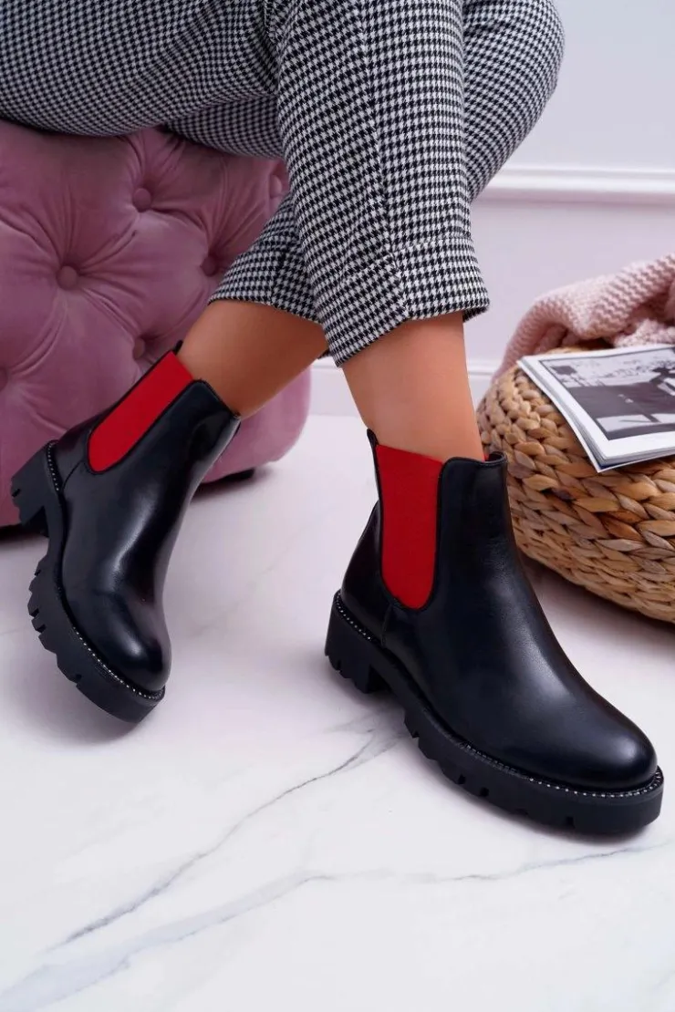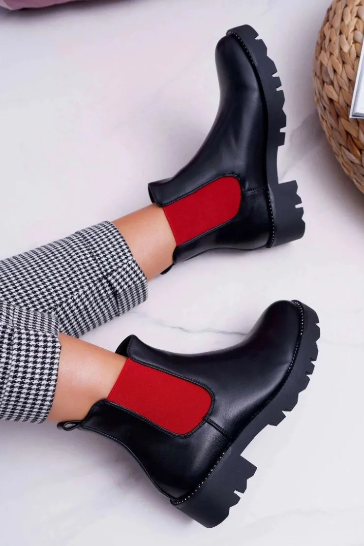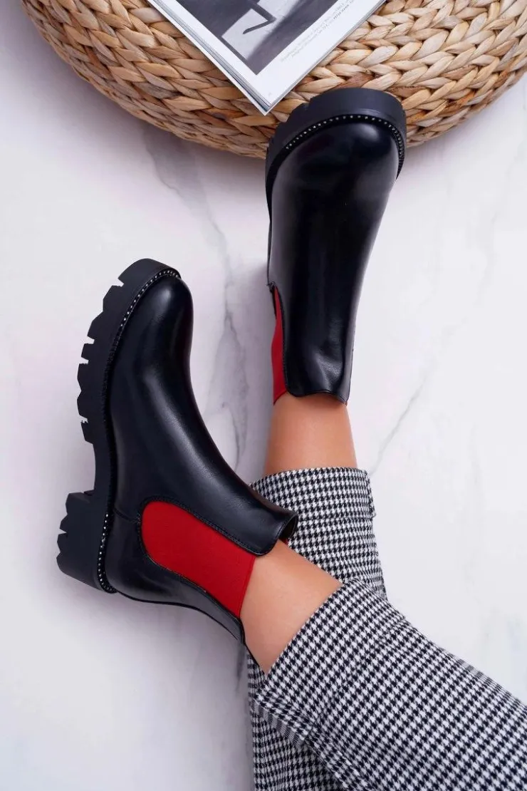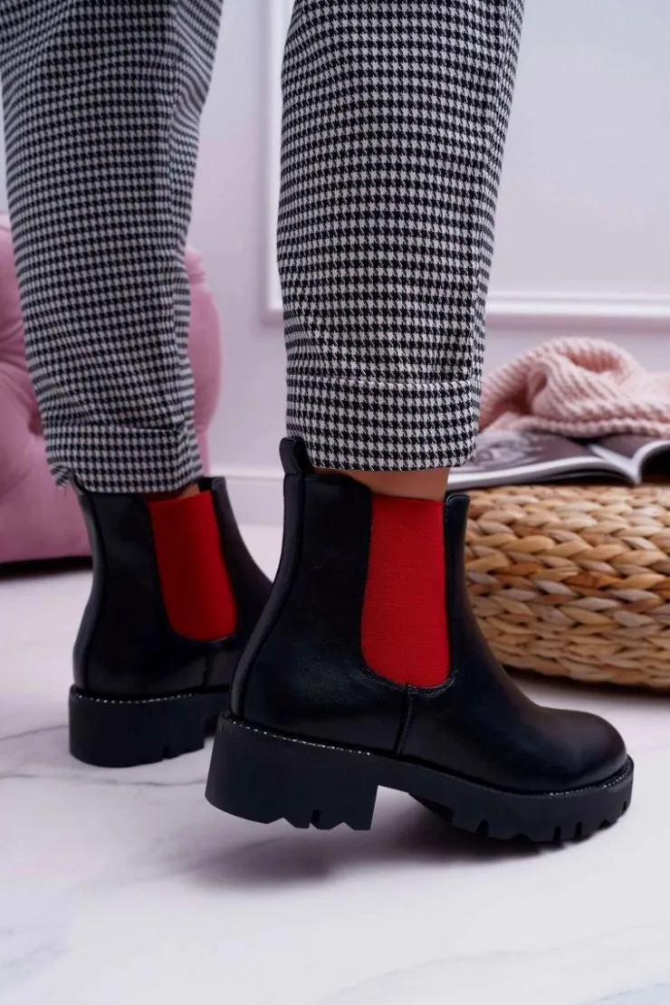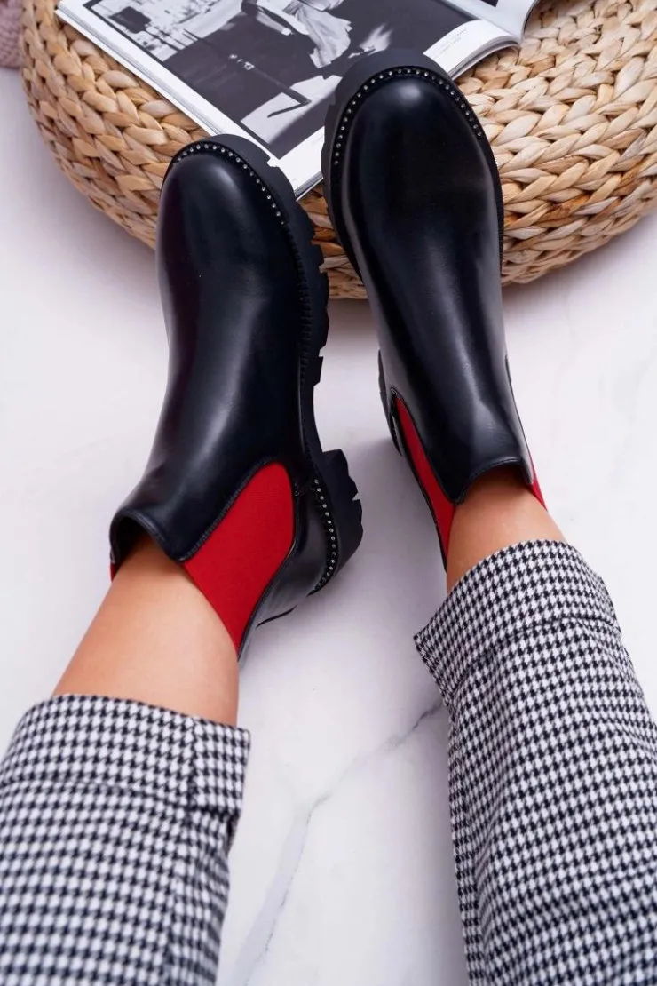 Damskie Boto Damskie Botki Sztyblety Czerwone Gumki Czarne Superpower