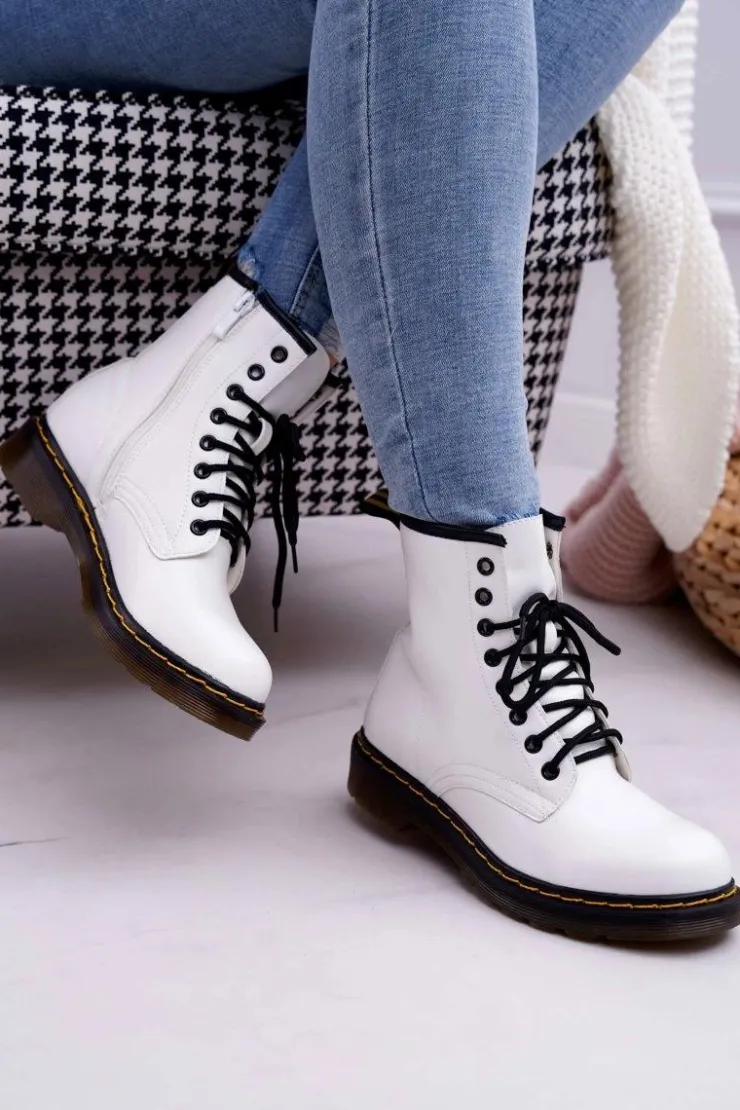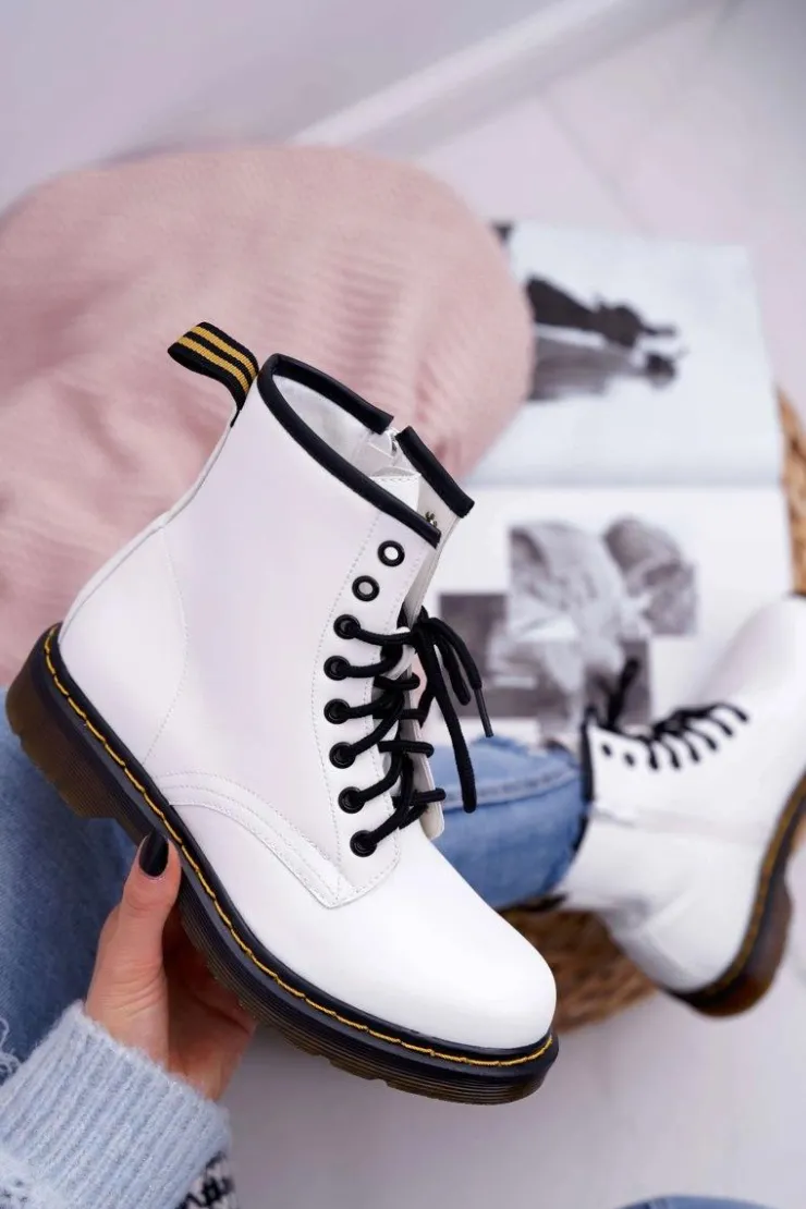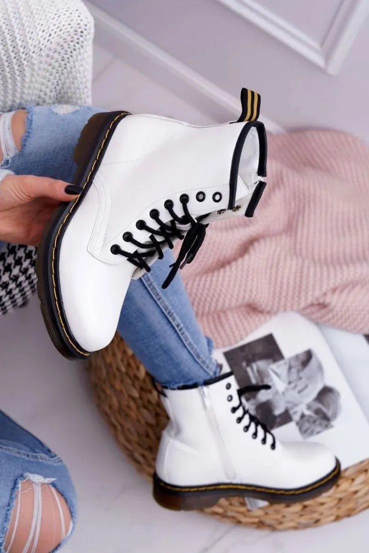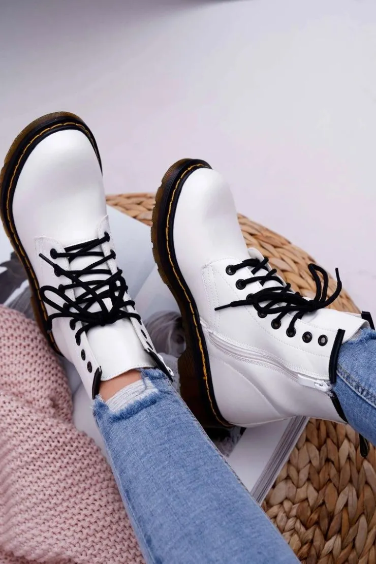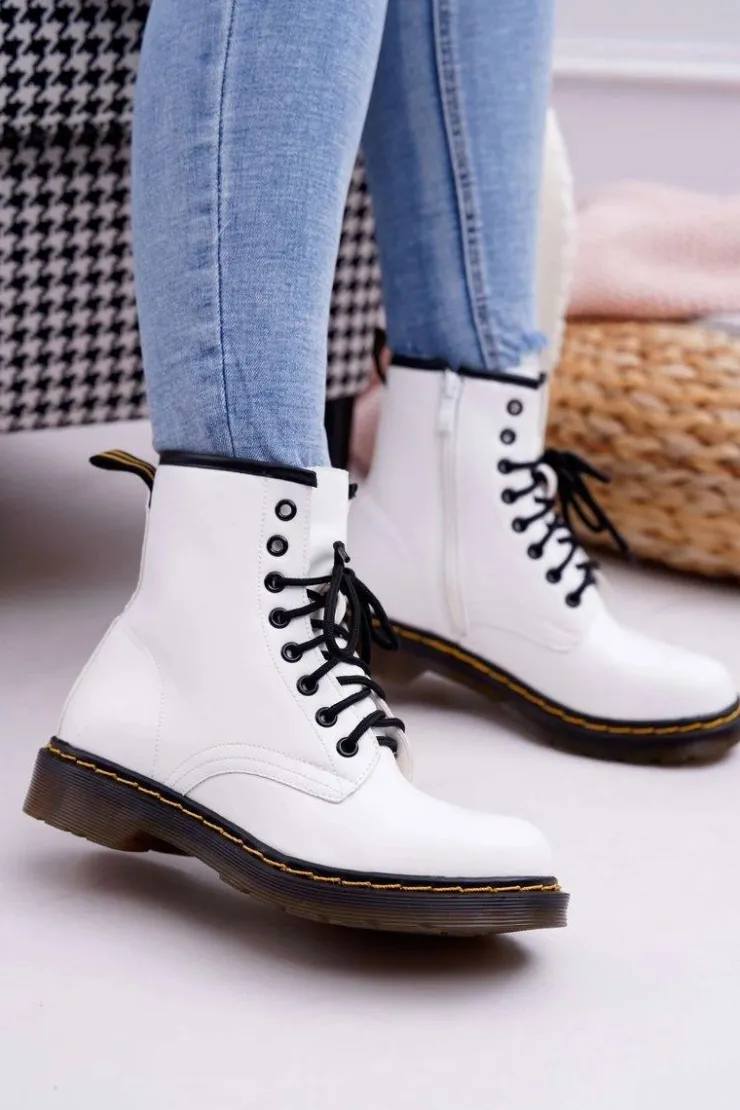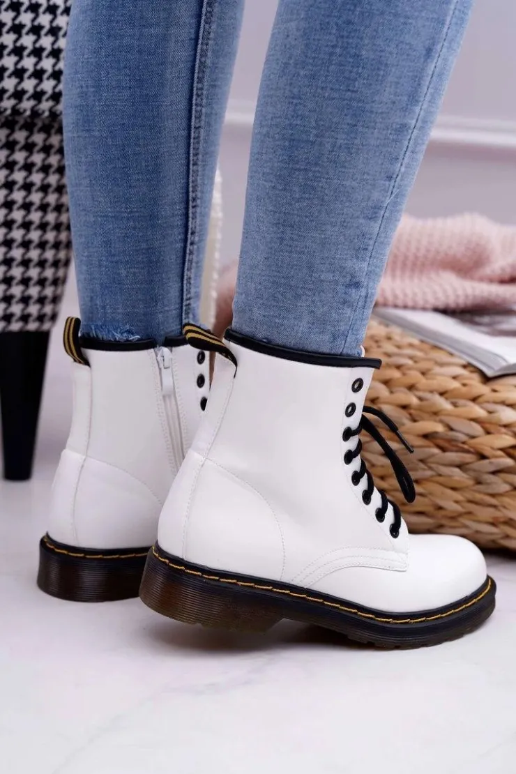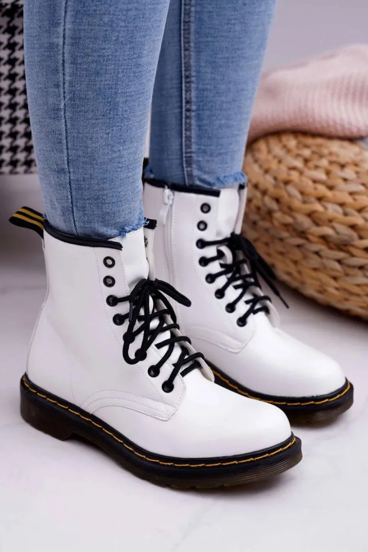Damskie Boto Damskie Botki Trapery Glany Białe Gangsta
