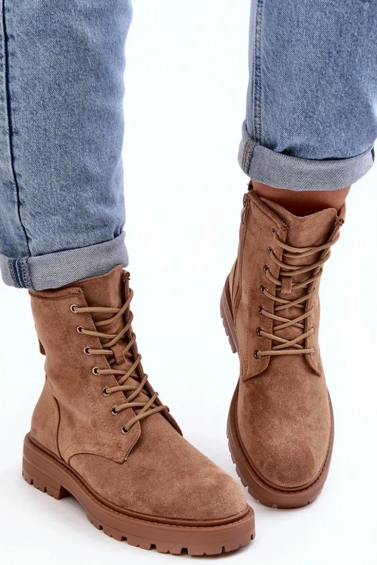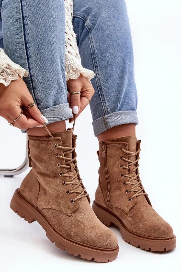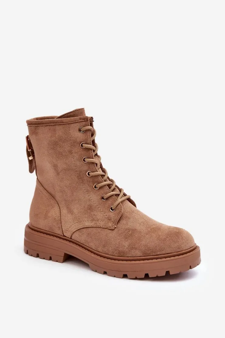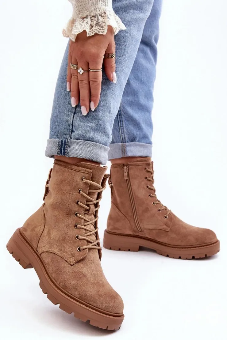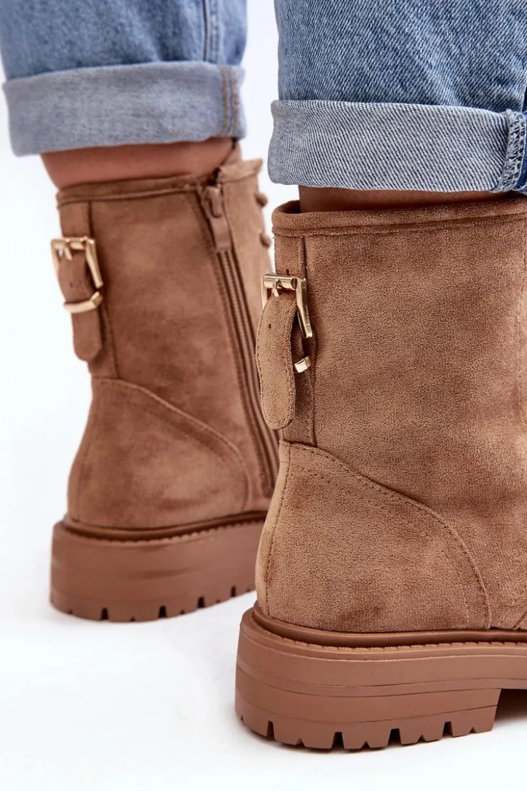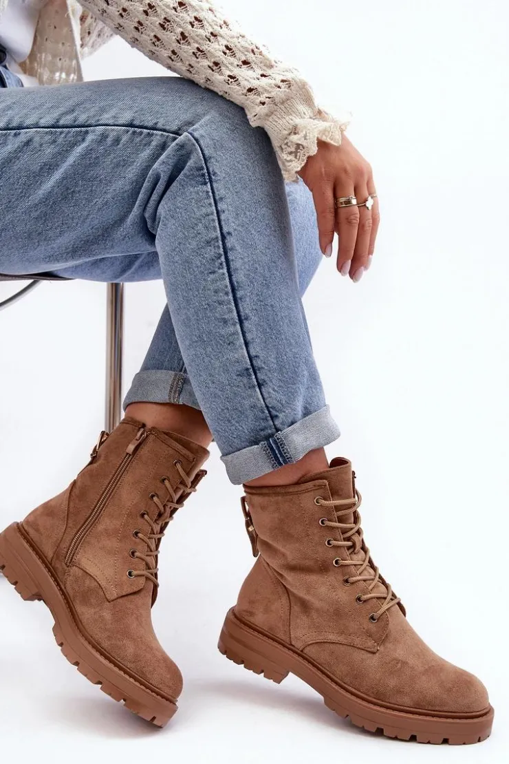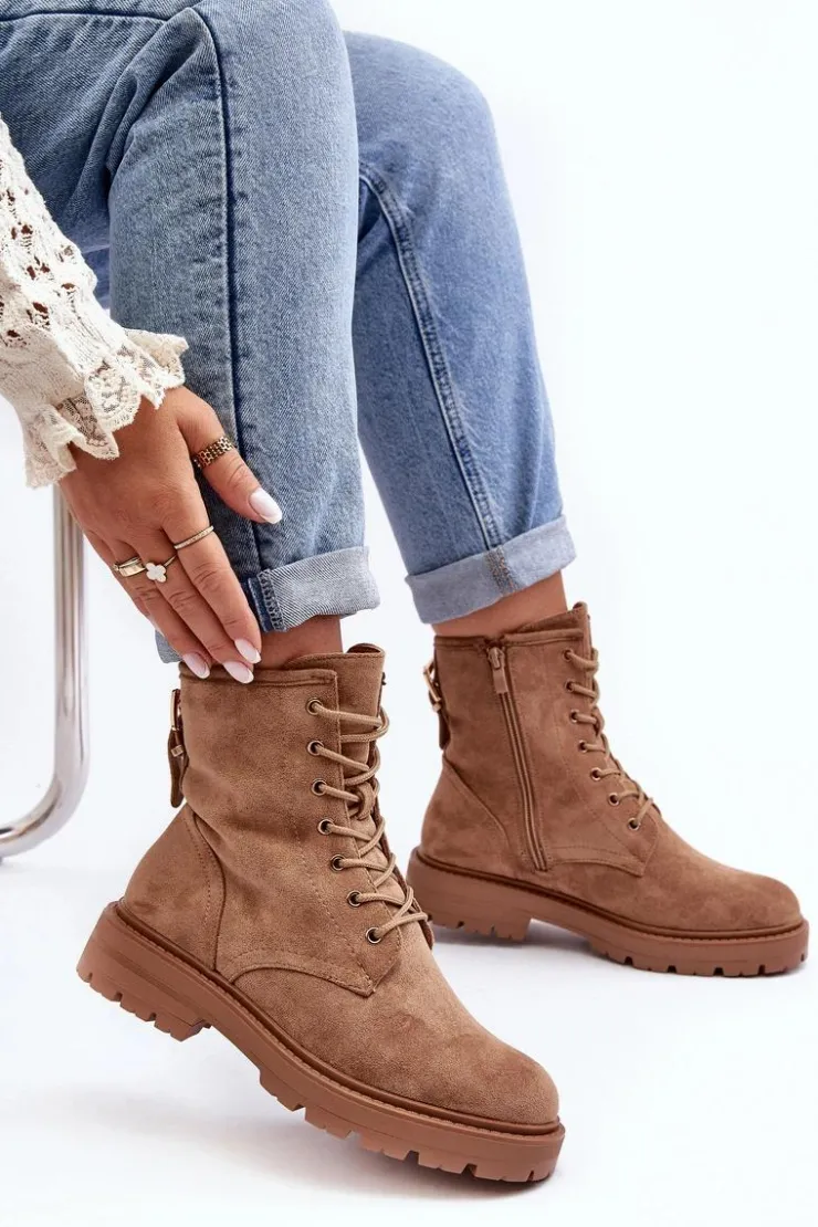 Damskie Boto Damskie Botki Workery Na Suwak Jasnobrązowe Ninsuni