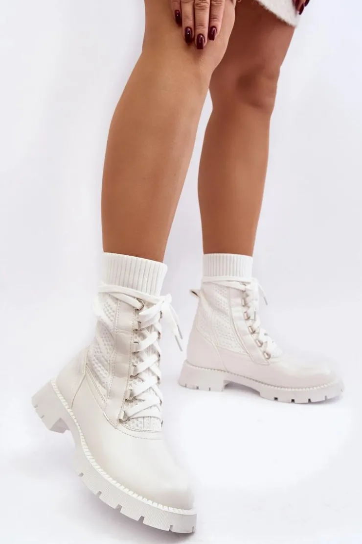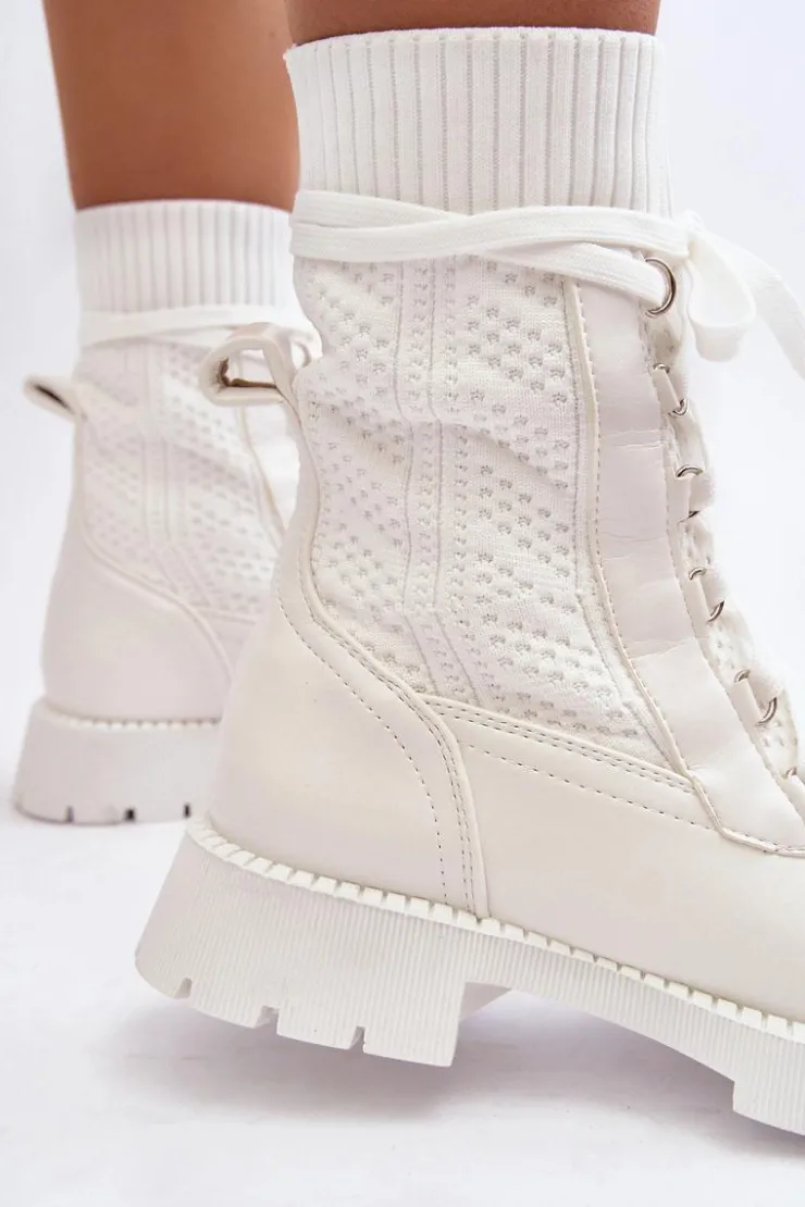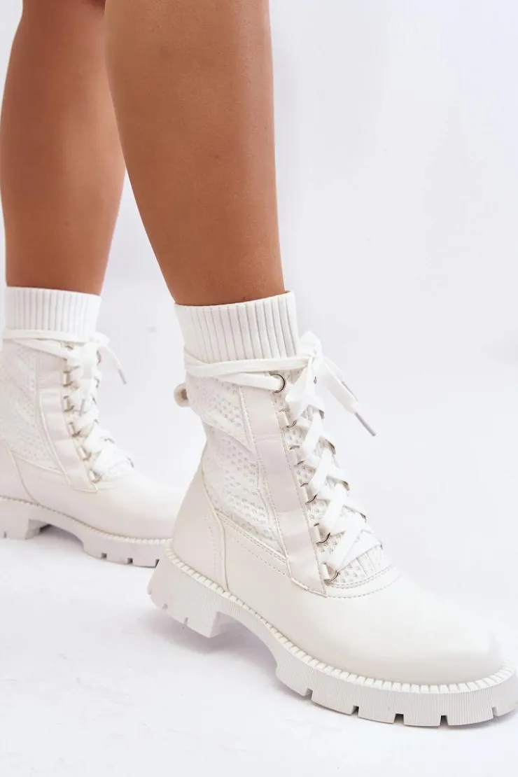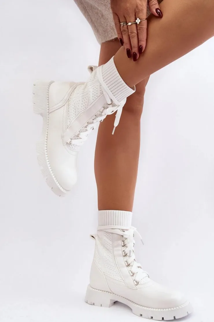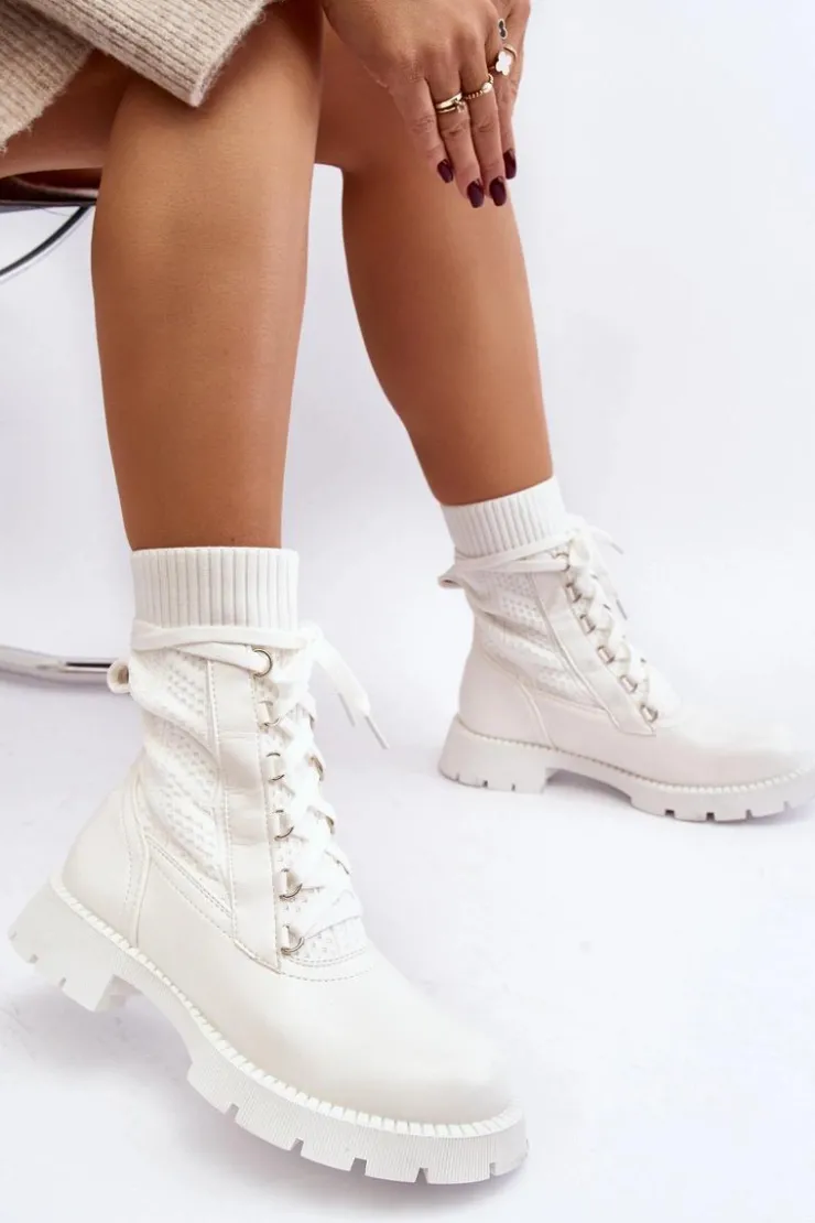Damskie Boto Damskie Botki Ze Skarpetą Sznurowane Białe Gentiana