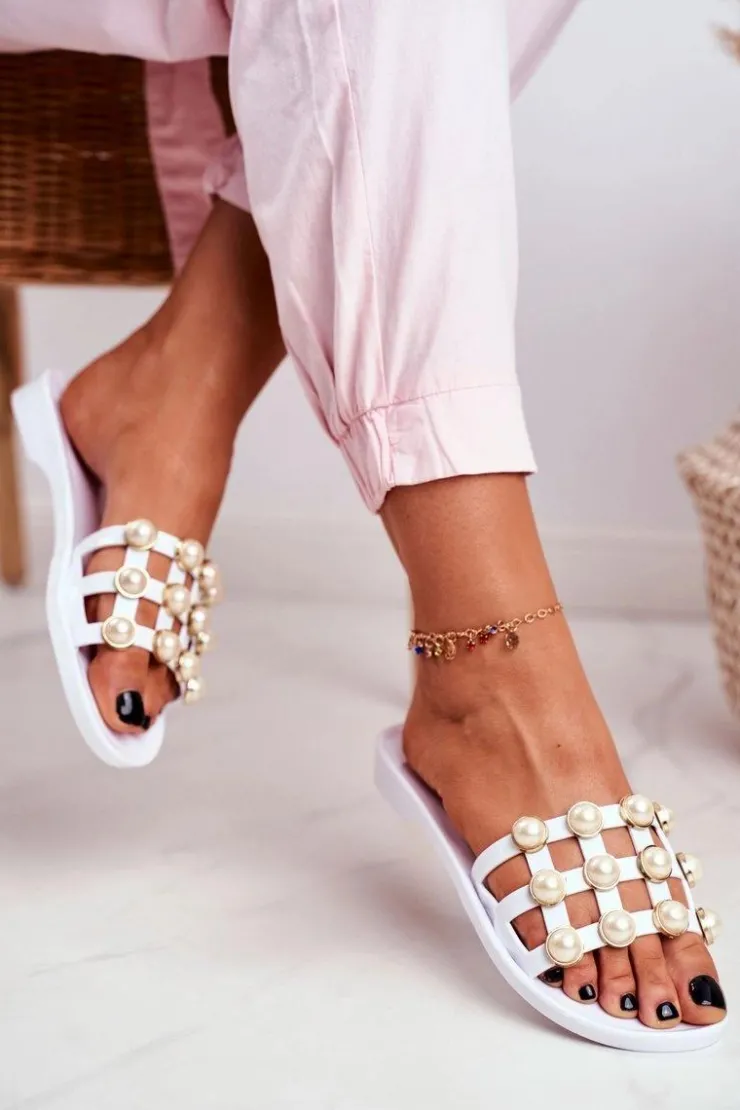 Damskie Boto Damskie Gumowe Klapki Białe Perełki Estelle
