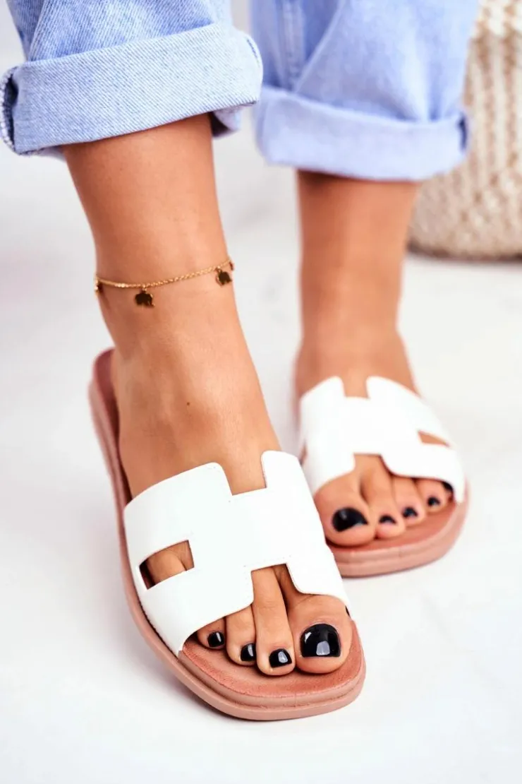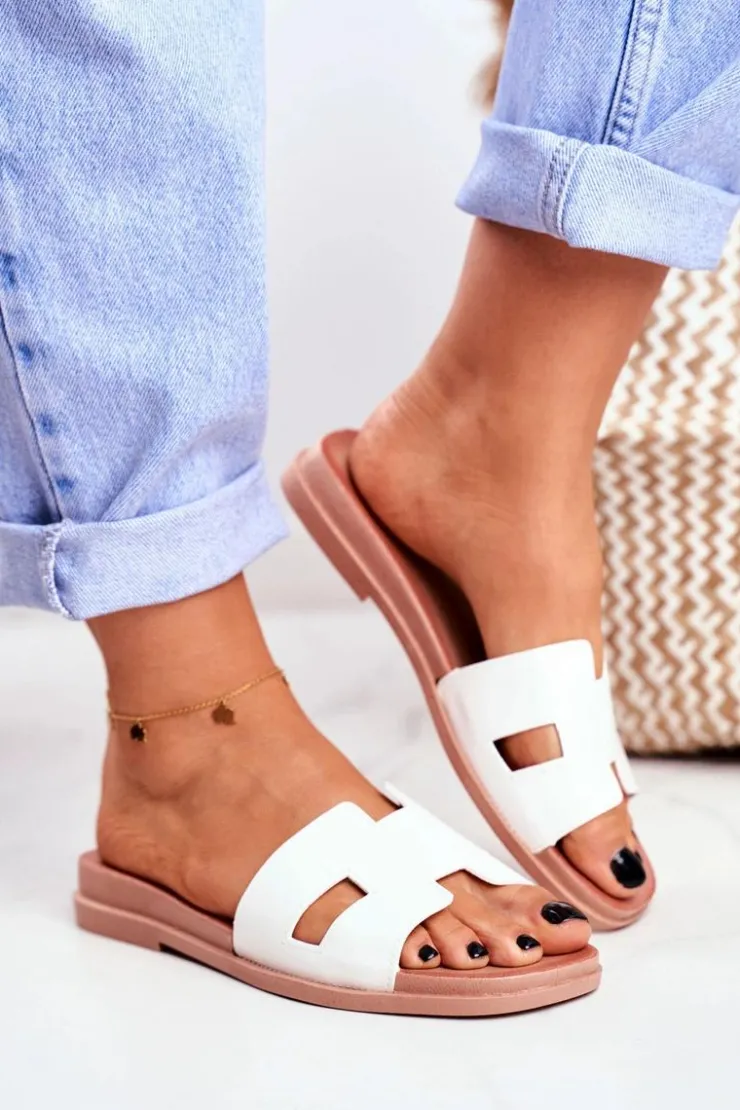 Damskie Boto Damskie Klapki Białe Geometryczne Klasyczne Theodora