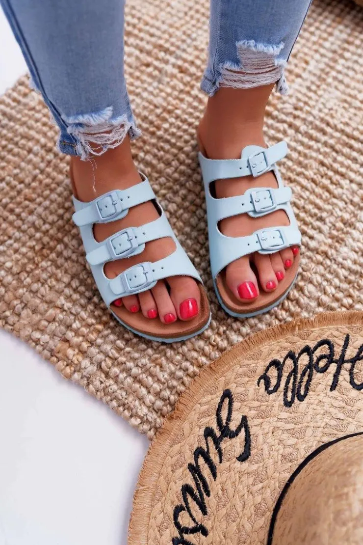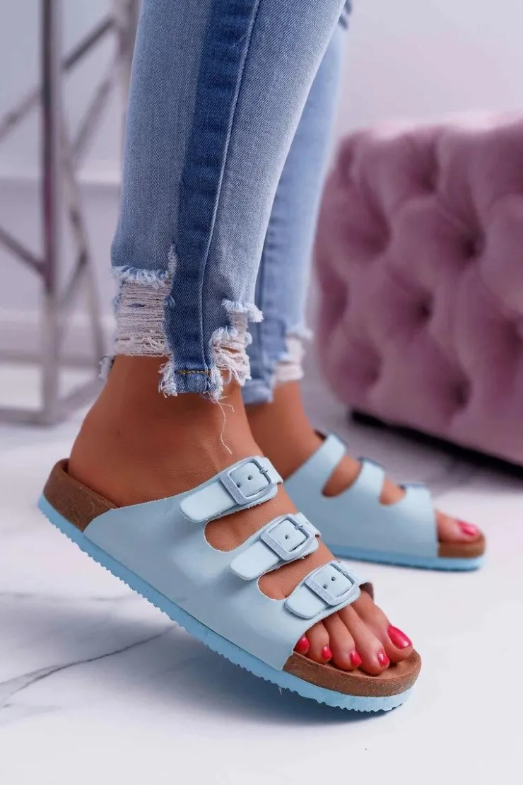 New Boto Damskie Klapki Z Ozdobnym Paskiem Niebieskie Ramisa