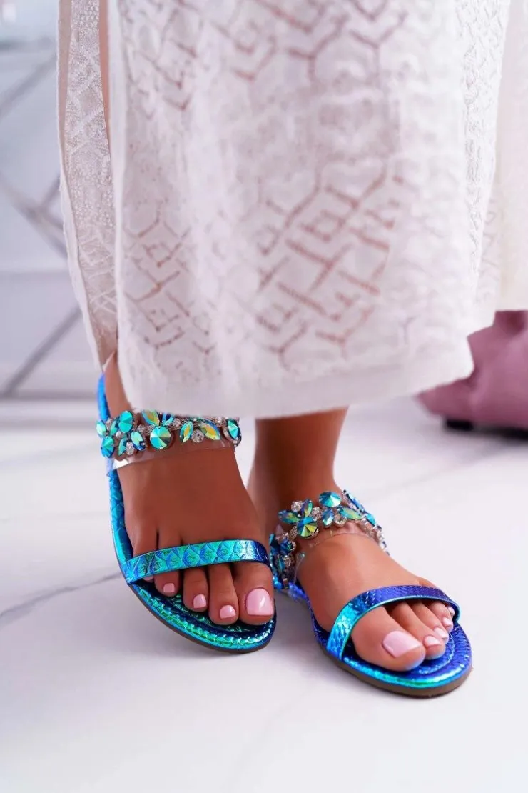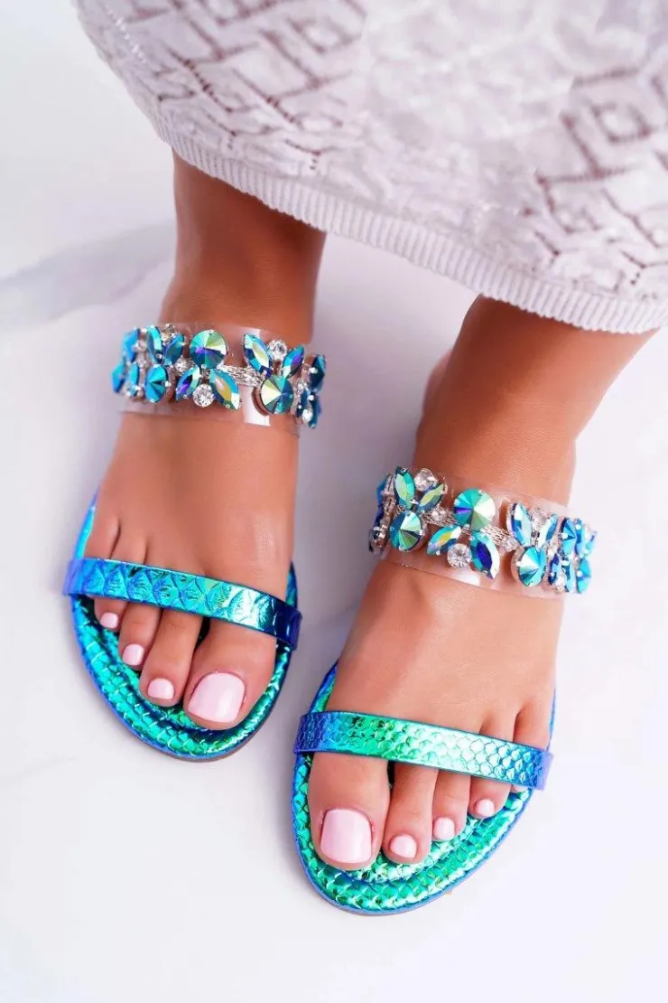 Damskie Boto Damskie Klapki Lu Boo Eleganckie Z Cyrkoniami Niebieskie Elementary