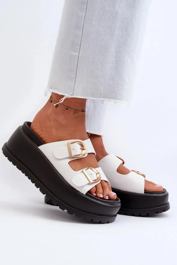 Klapki damskie na masywnej platformie to idealny wybór dla tych, którzy pragną połączyć wygodę z modnym stylem. Wykonane z eko skóry. Regulowane paski z klamrami sprawią, że łatwo dopasujesz je do tęgości stopy. Platforma zapewnia stabilność i wygodę noszenia przez cały dzień. Doskonałe na letnie spacery czy wieczorne wyjścia. Przy wyborze rozmiaru prosimy sugerować się tabelą rozmiarów.