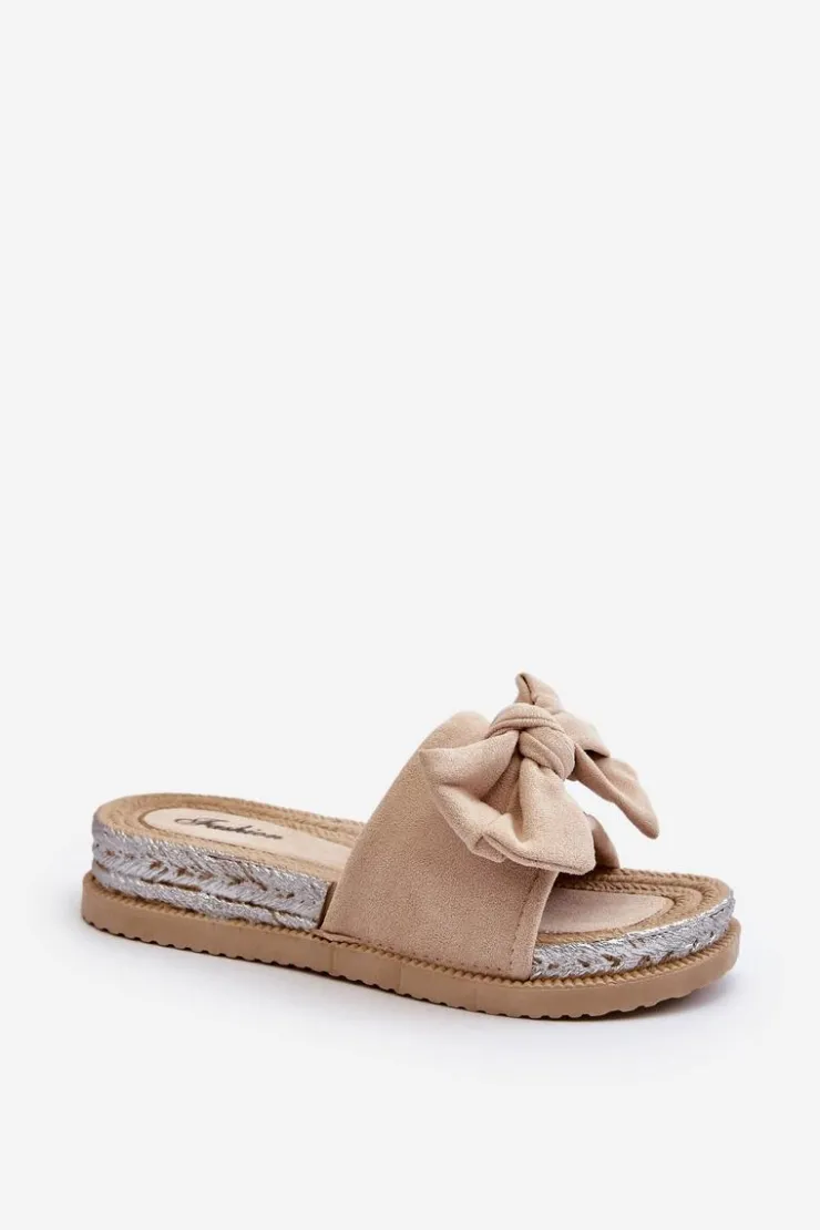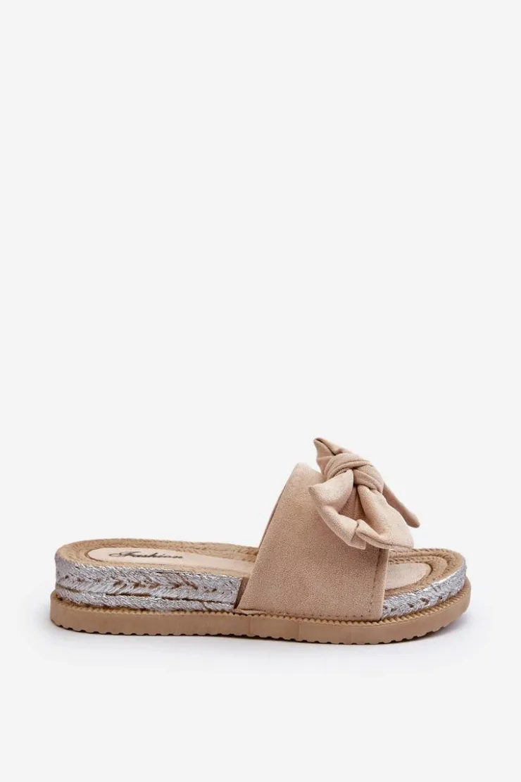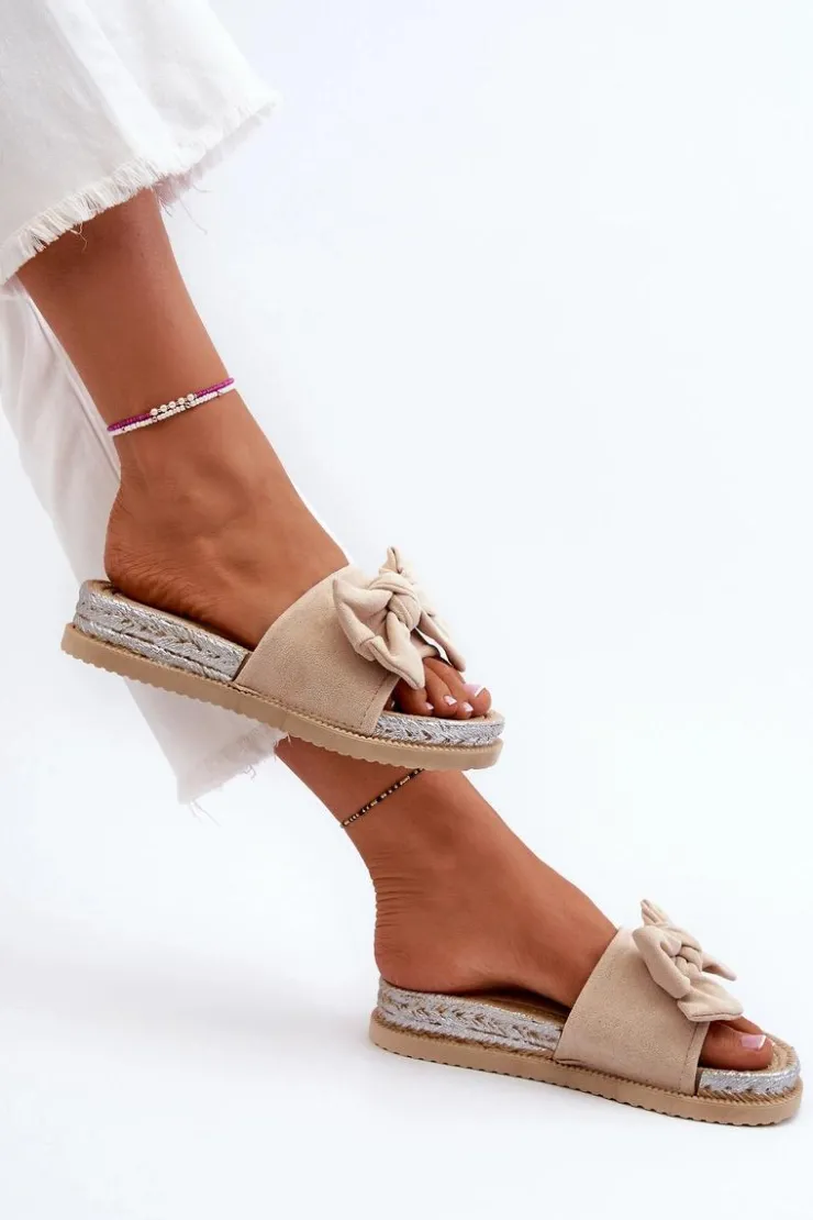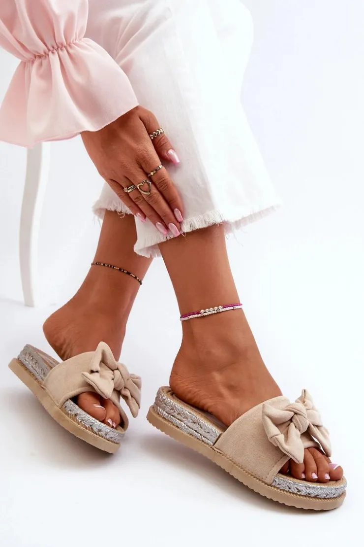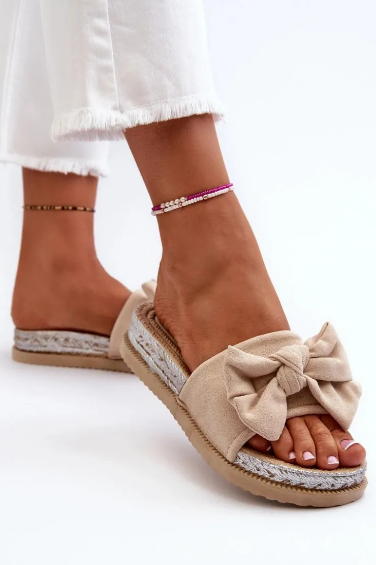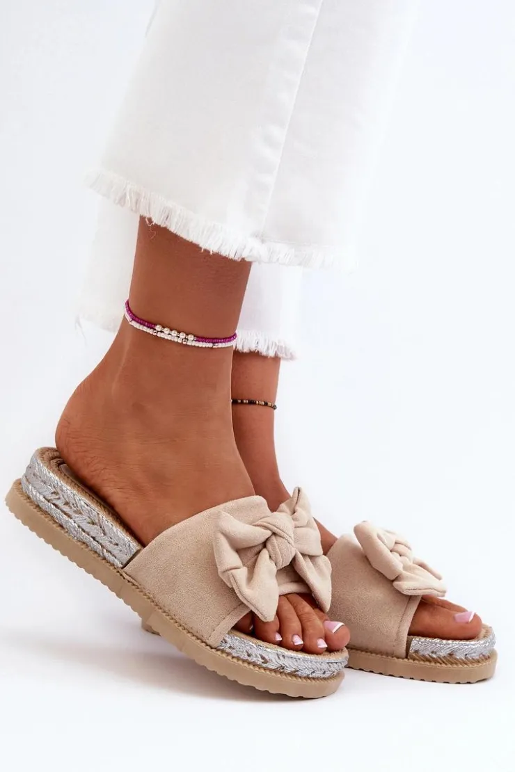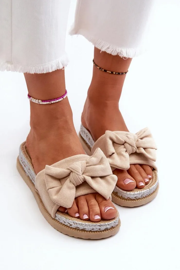 Damskie Boto Damskie Klapki Na Platformie Z Kokardą Beżowe Aflia