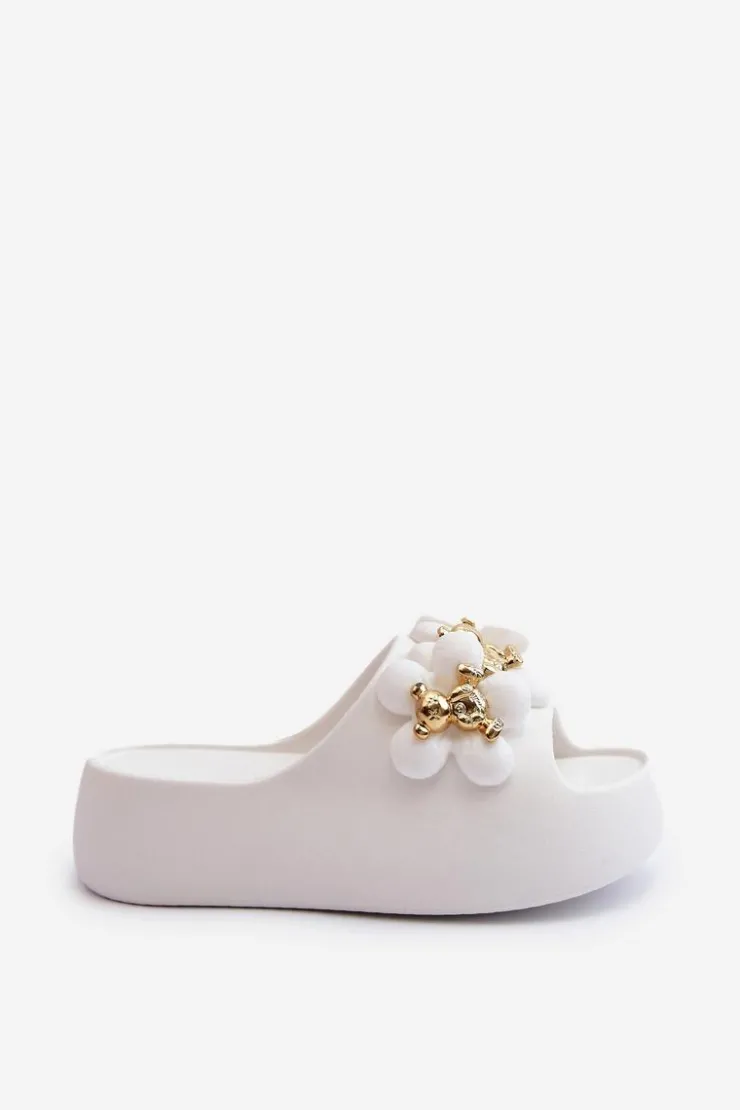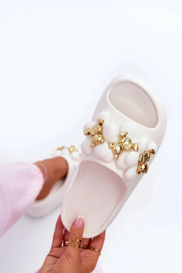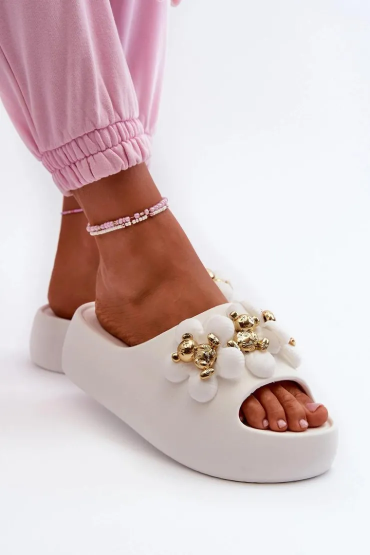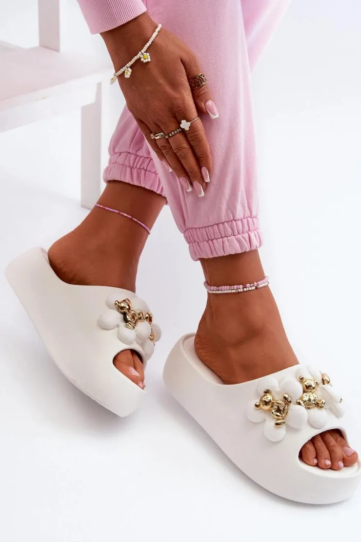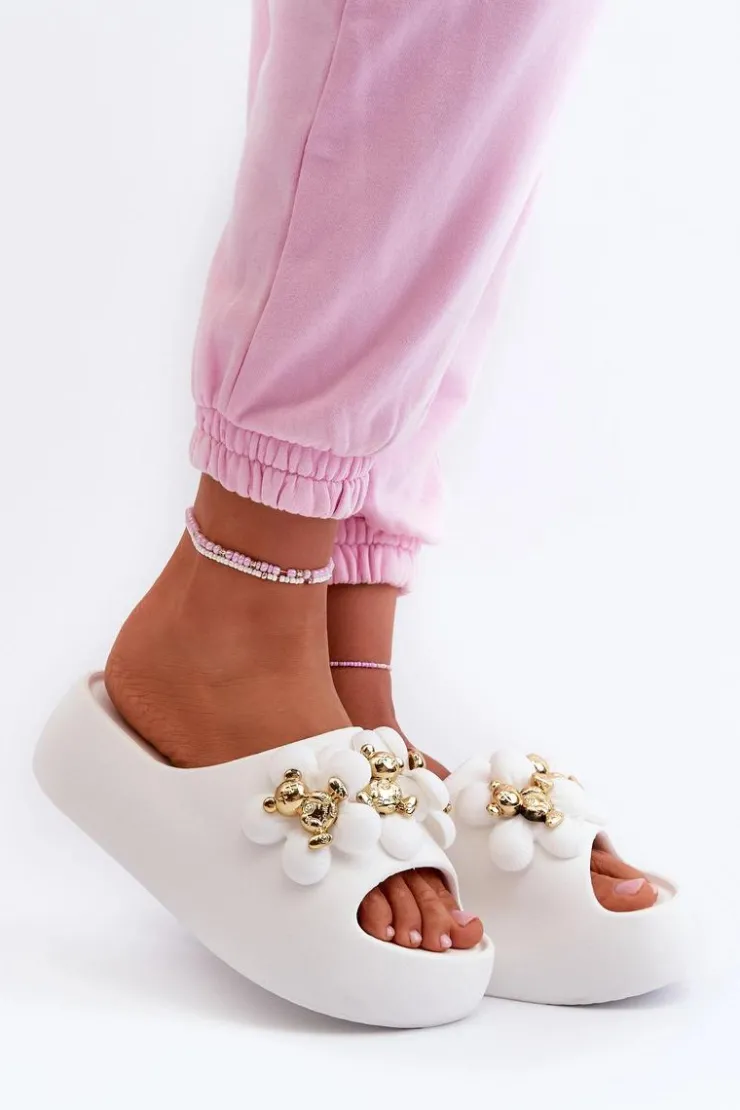 Damskie Boto Damskie Klapki Piankowe Z Ozdobami Na Grubej Podeszwie Białe Bremavia
