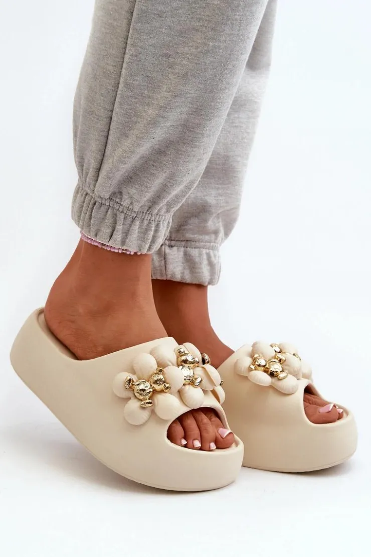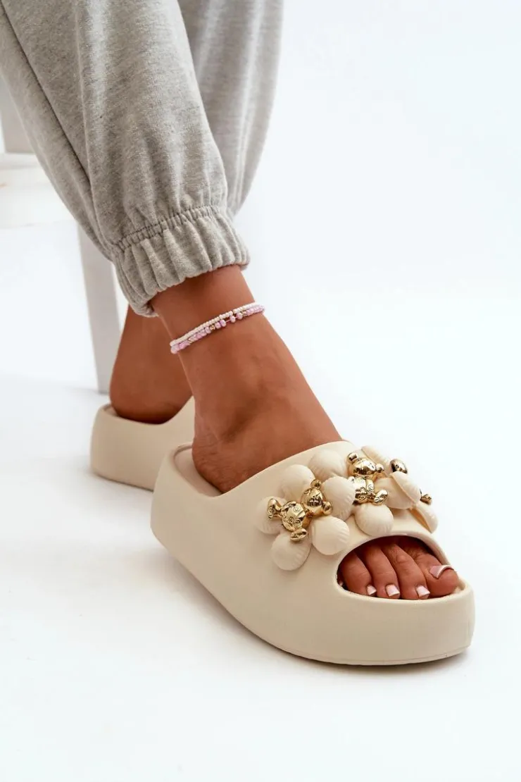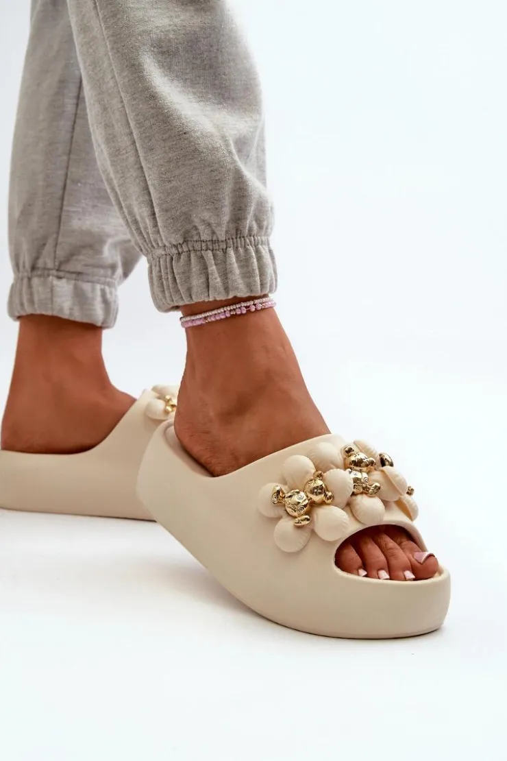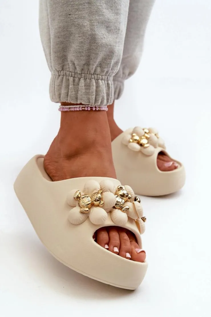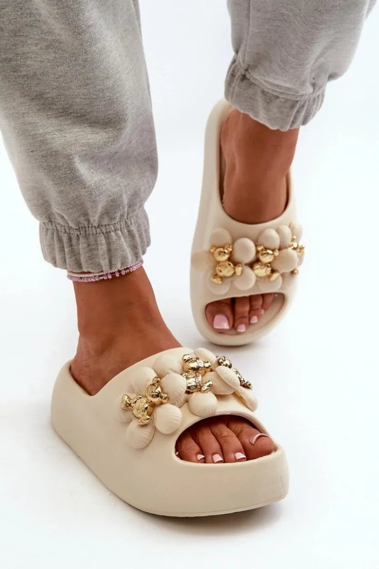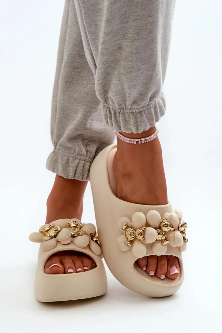 Lekkie damskie klapki wykonane z piankowego tworzywa, idealne na upalne dni. Osadzone na masywnej podeszwie, te klapki zapewniają wygodę i stabilność. Urocze ozdoby dodają im wyjątkowego charakteru, czyniąc je doskonałym wyborem na lato. Przy wyborze rozmiaru prosimy sugerować się tabelą rozmiarów.