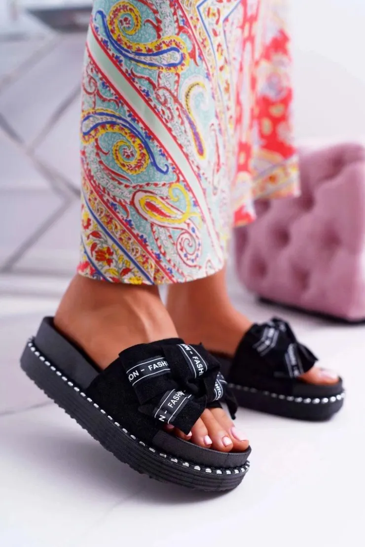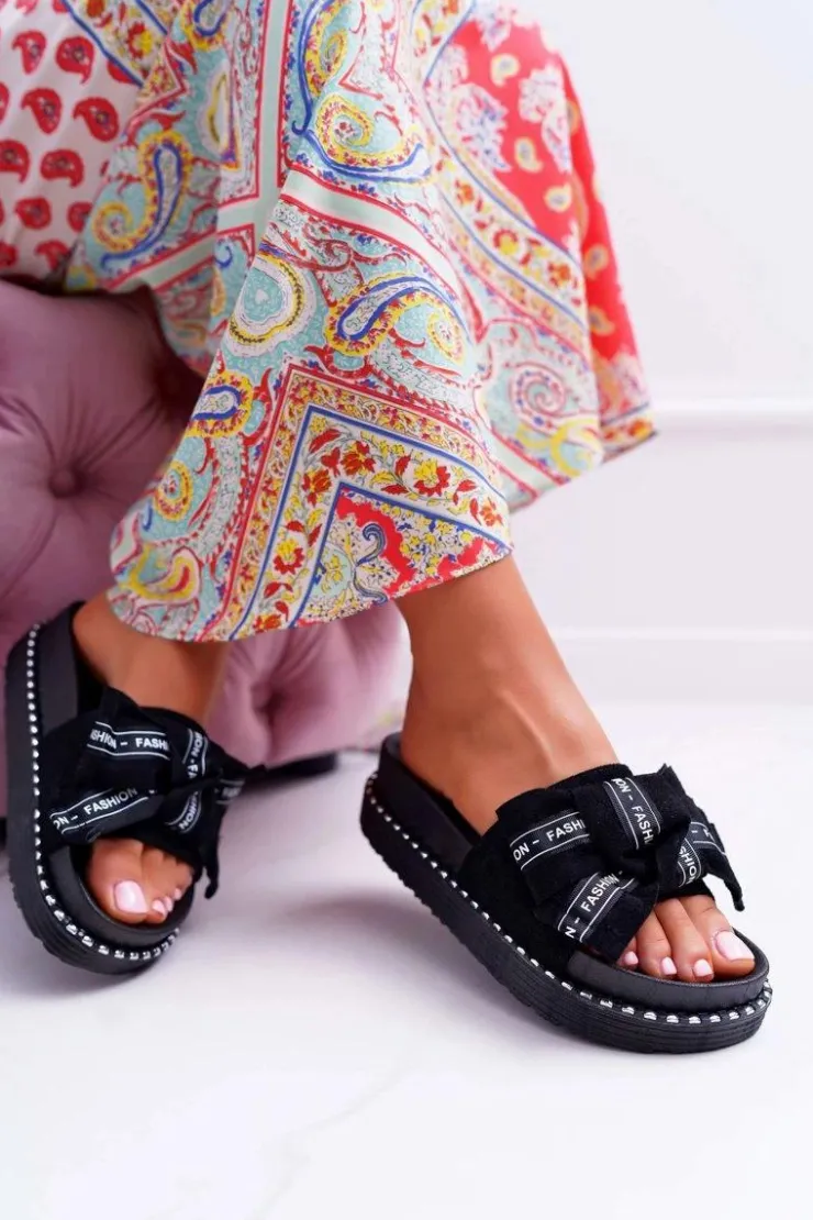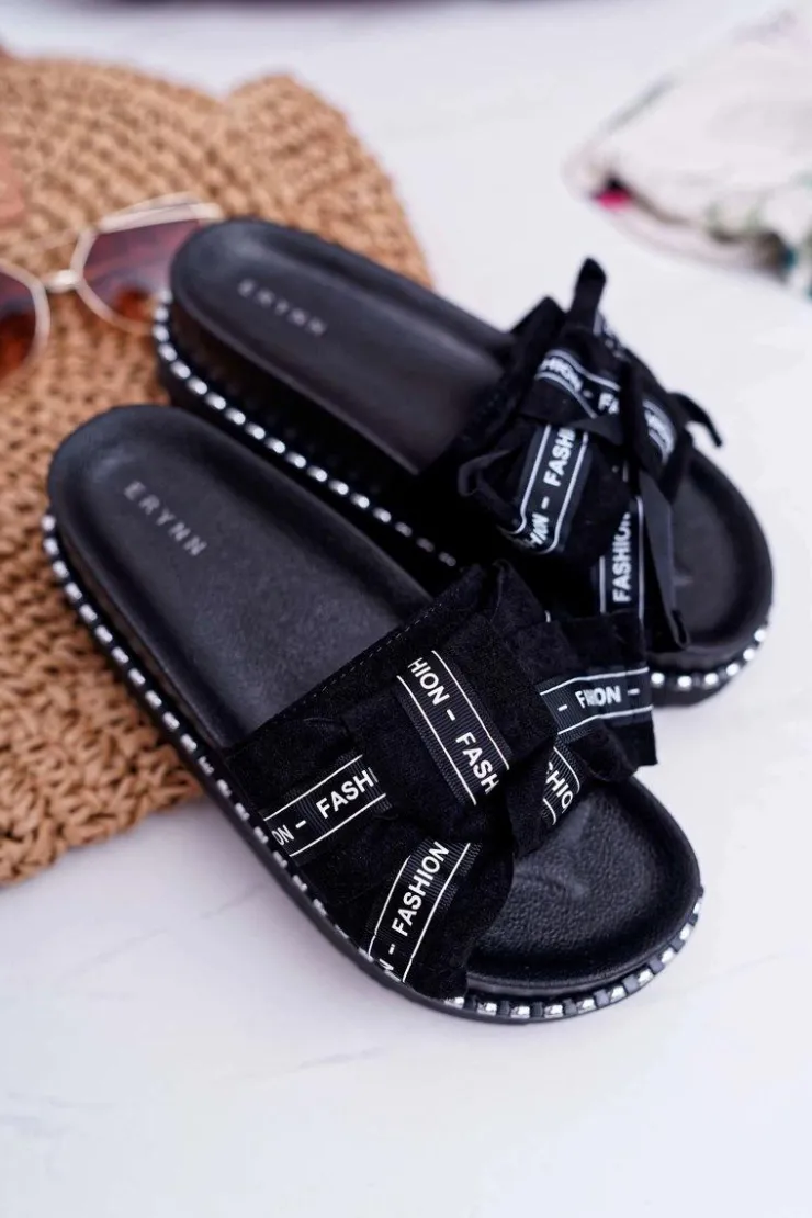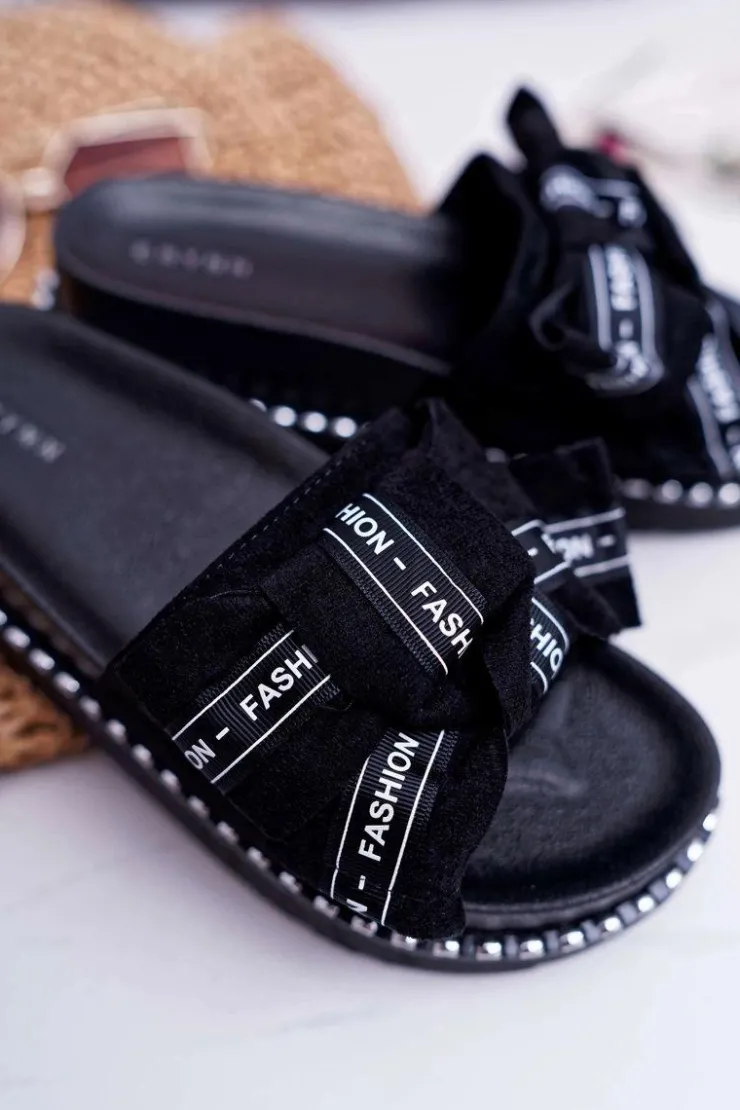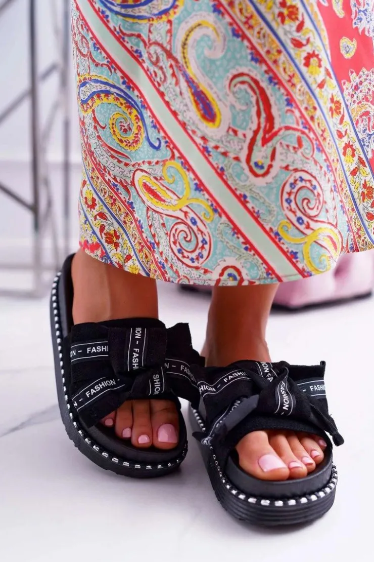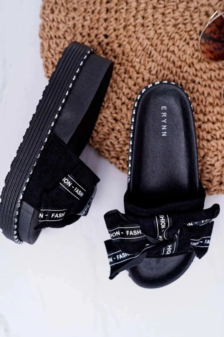 Damskie Boto Damskie Klapki Profilowana Wkładka Z Kokardką Czarne Vrenya