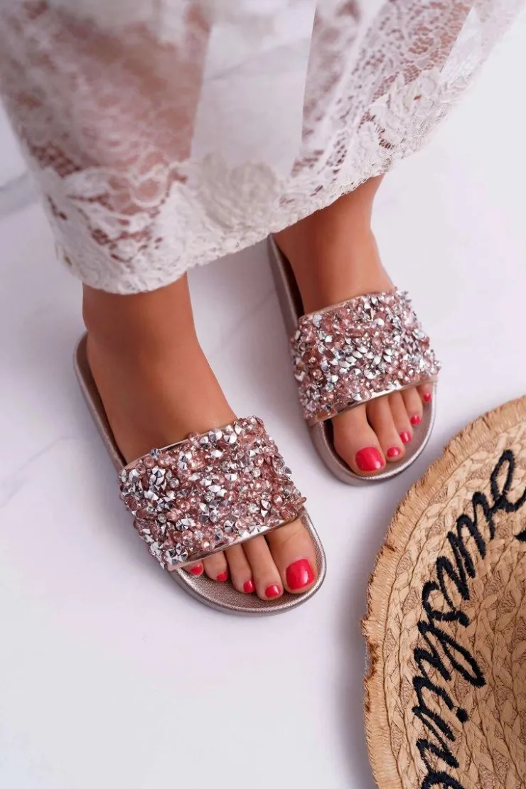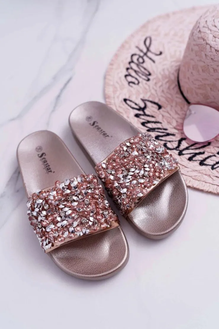 Damskie Boto Damskie Klapki Różowe Złoto Glamour