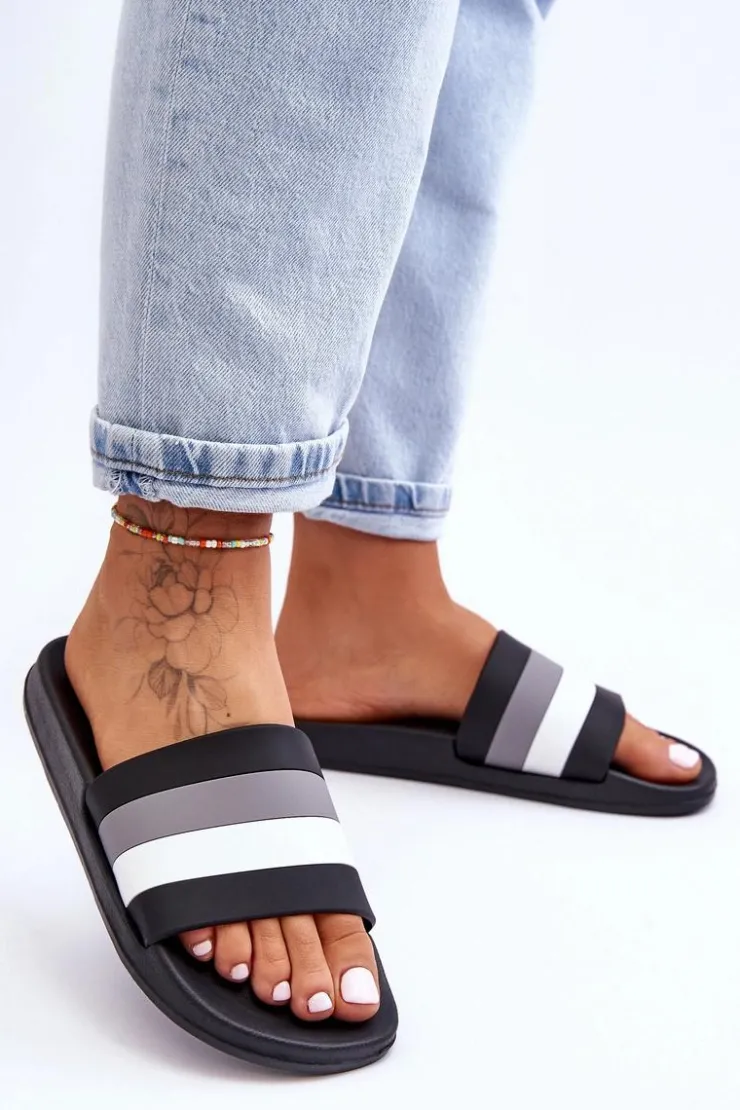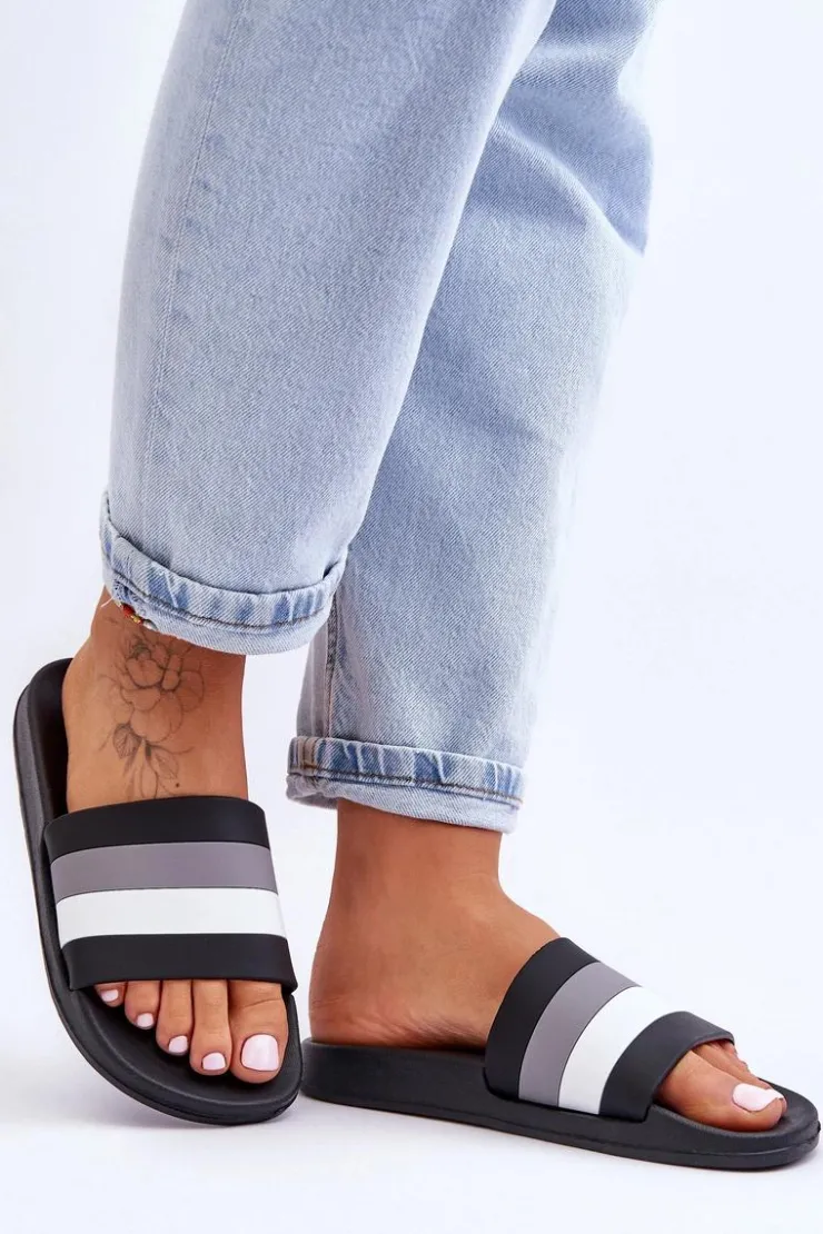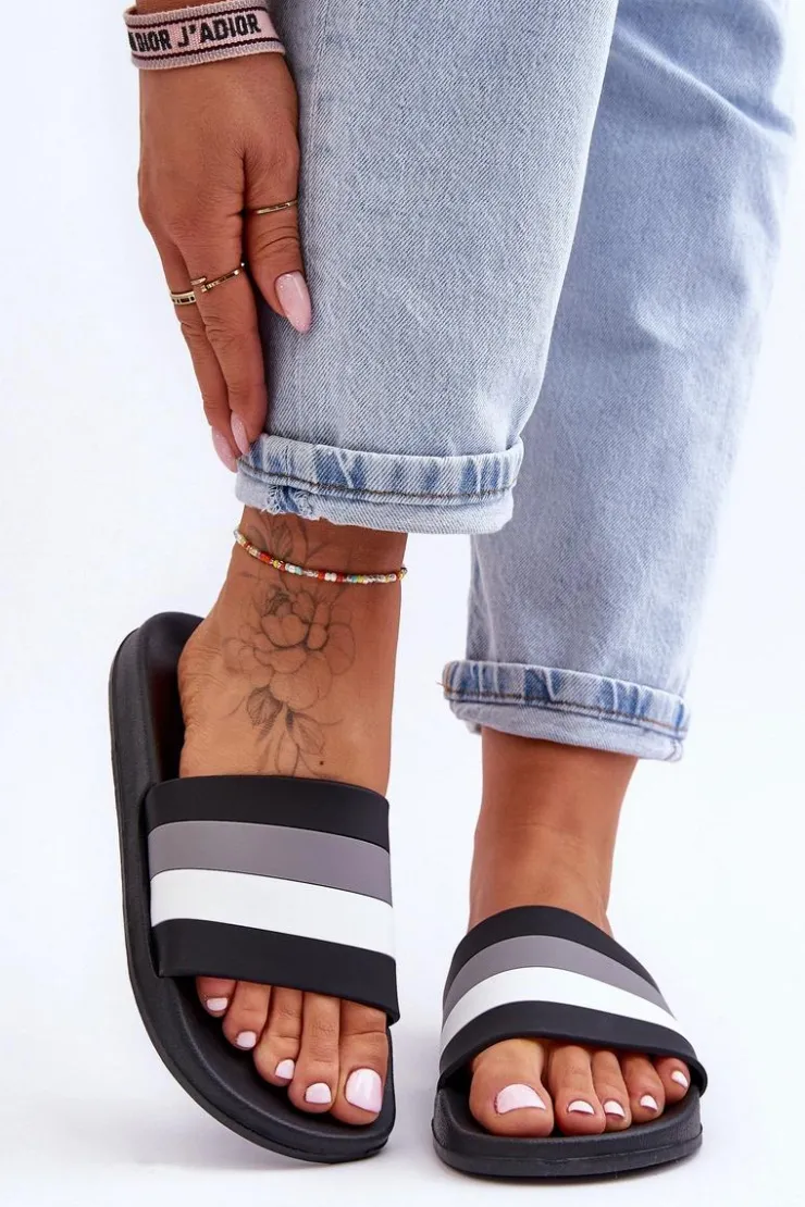 Te klasyczne klapki zostały wykonane z wierzchu z gumowego tworzywa, natomiast wkładka oraz podeszwa z piankowego tworzywa. Na paseczku znajdują się paski. Model ten został osadzony na delikatnej platformie. Te klapki świetnie sprawdzą się także na basen czy plażę. Koniecznie sprawdź także pozostałe modele klapek! Przy wyborze rozmiaru prosimy sugerować się tabelą rozmiarów.