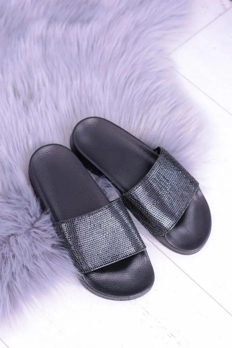Damskie Boto Damskie Klapki Z Cyrkoniami LadyCristal Czarne