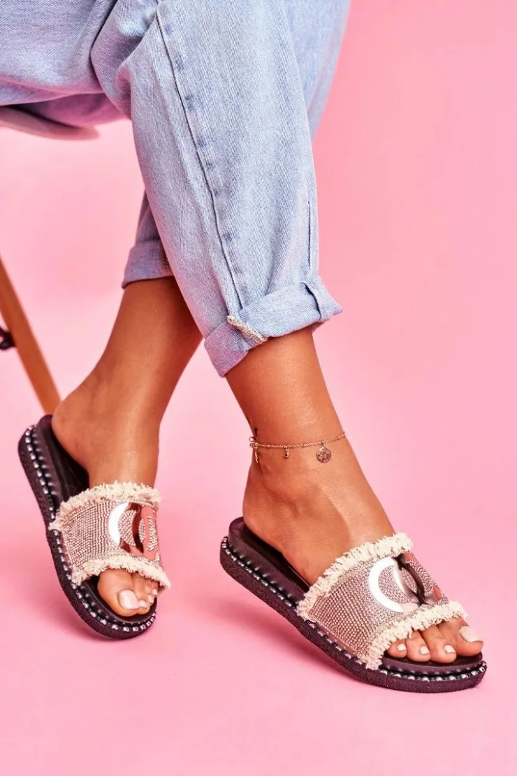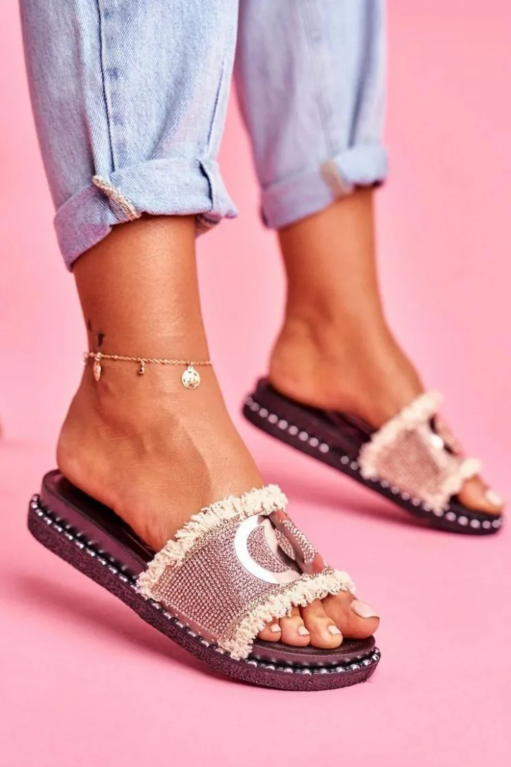 Damskie Boto Damskie Klapki Z Kryształkami Różowe Złoto Valley