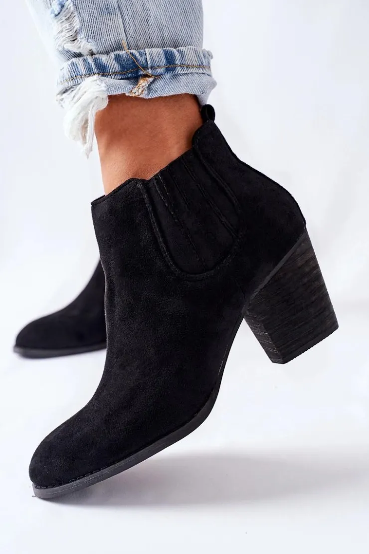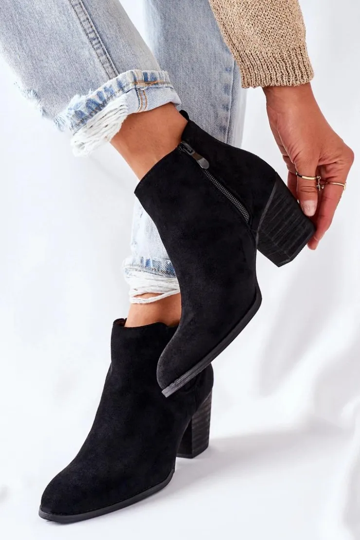 Przedstawiamy wygodne i stylowe botki na słupku. Wykonane z ekologicznego zamszu. Posiadają zapinanie na zamek z boku cholewki. Przy wyborze rozmiaru prosimy sugerować się tabelą rozmiarów.