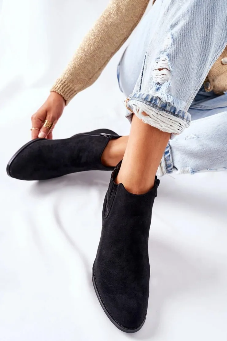 Clearance Boto Damskie Skórzane Klapki Z Ozdobą Czarne Roysa