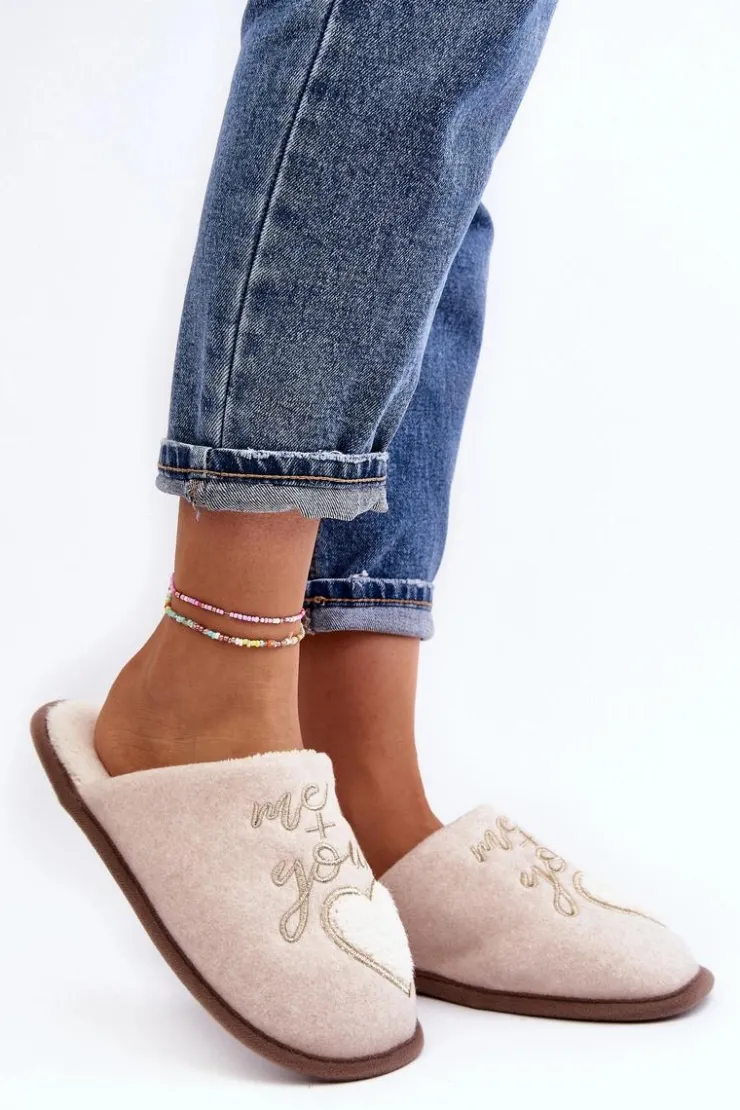Damskie Boto Damskie Klasyczne Kapcie Wsuwane Ocieplane Beżowe Mabira