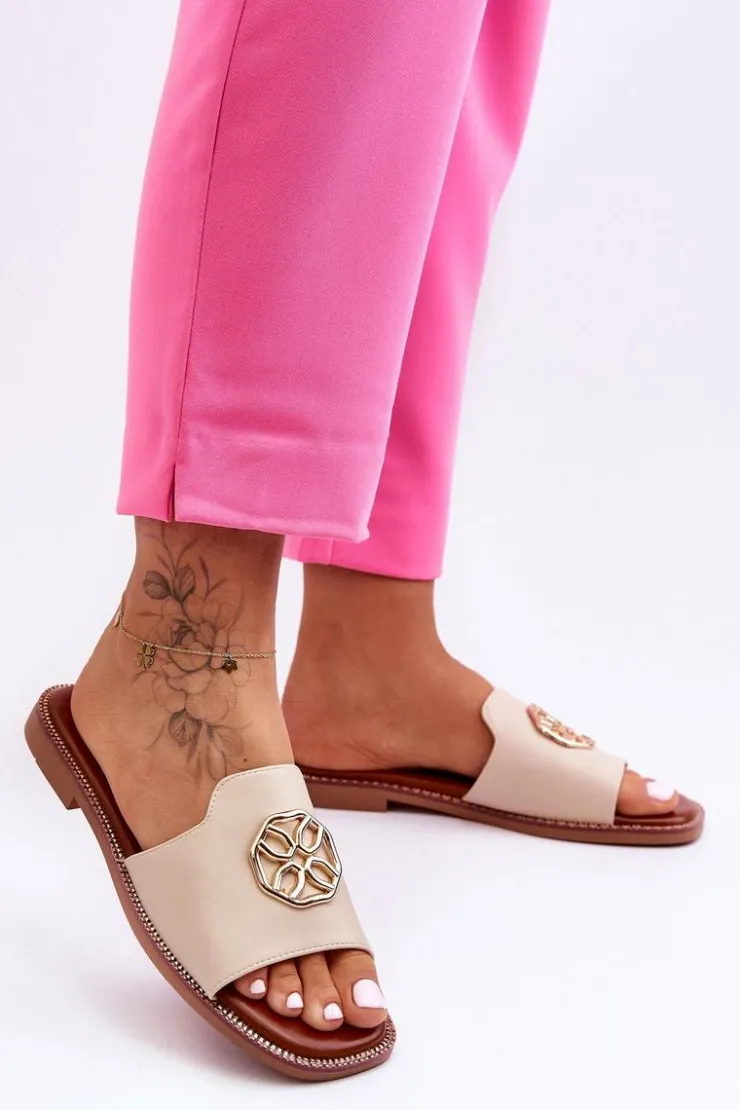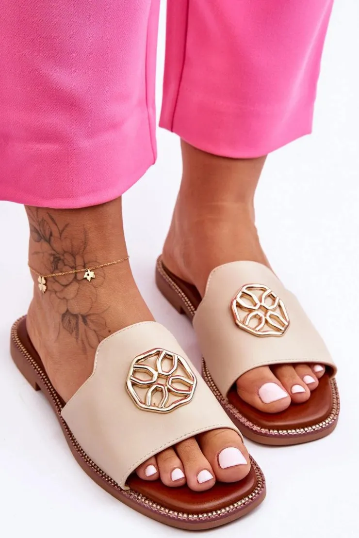 Klasyczne, damskie klapki zostały wykonane z eko skóry. Model ten posiada ozdobę wykonaną z tworzywa sztucznego. Klapki osadzono na delikatnej platformie oraz płaskim obcasie. Wkładka jest niezwykle miękka i wygodna w użytkowaniu. Nosek jest odkryty i lekko kwadratowy. Ten model powinien znaleźć się właśnie w Twojej garderobie! Przy wyborze rozmiaru prosimy sugerować się tabelą rozmiarów.