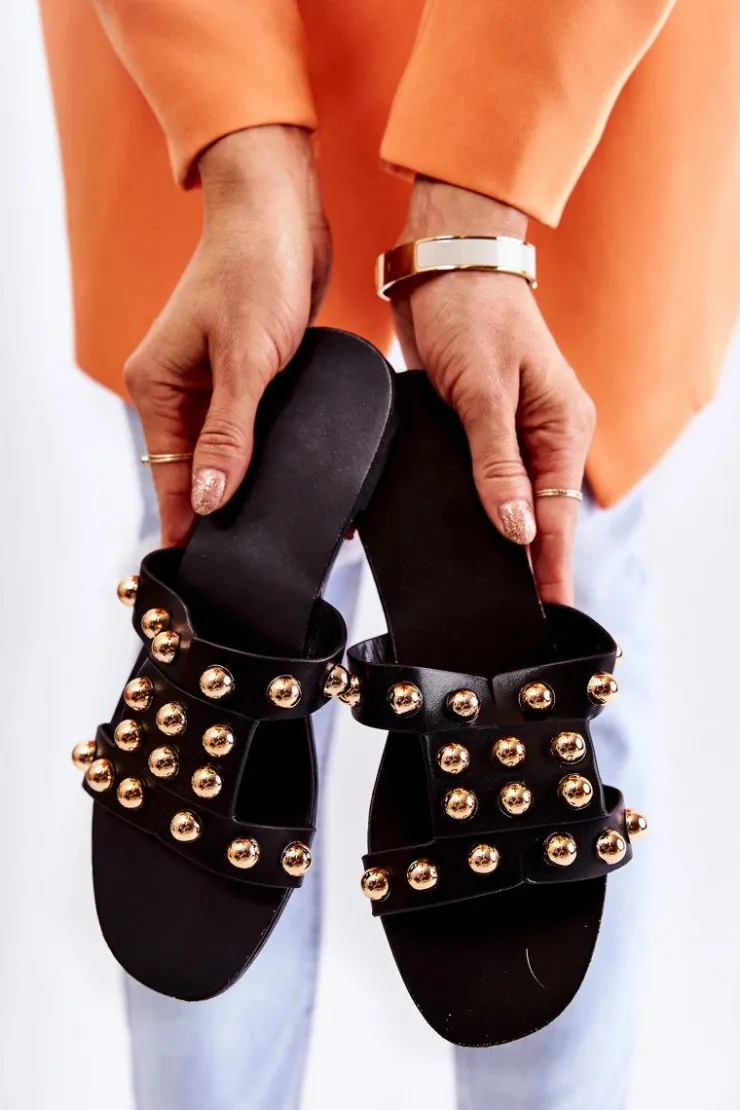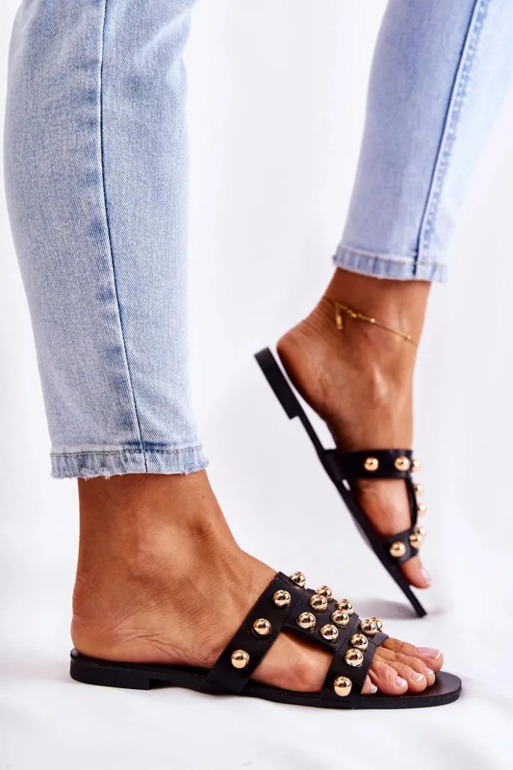 Damskie Boto Damskie Klasyczne Klapki Z Ozdobami Czarne Scotlyn