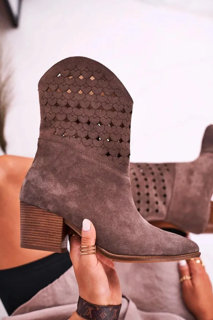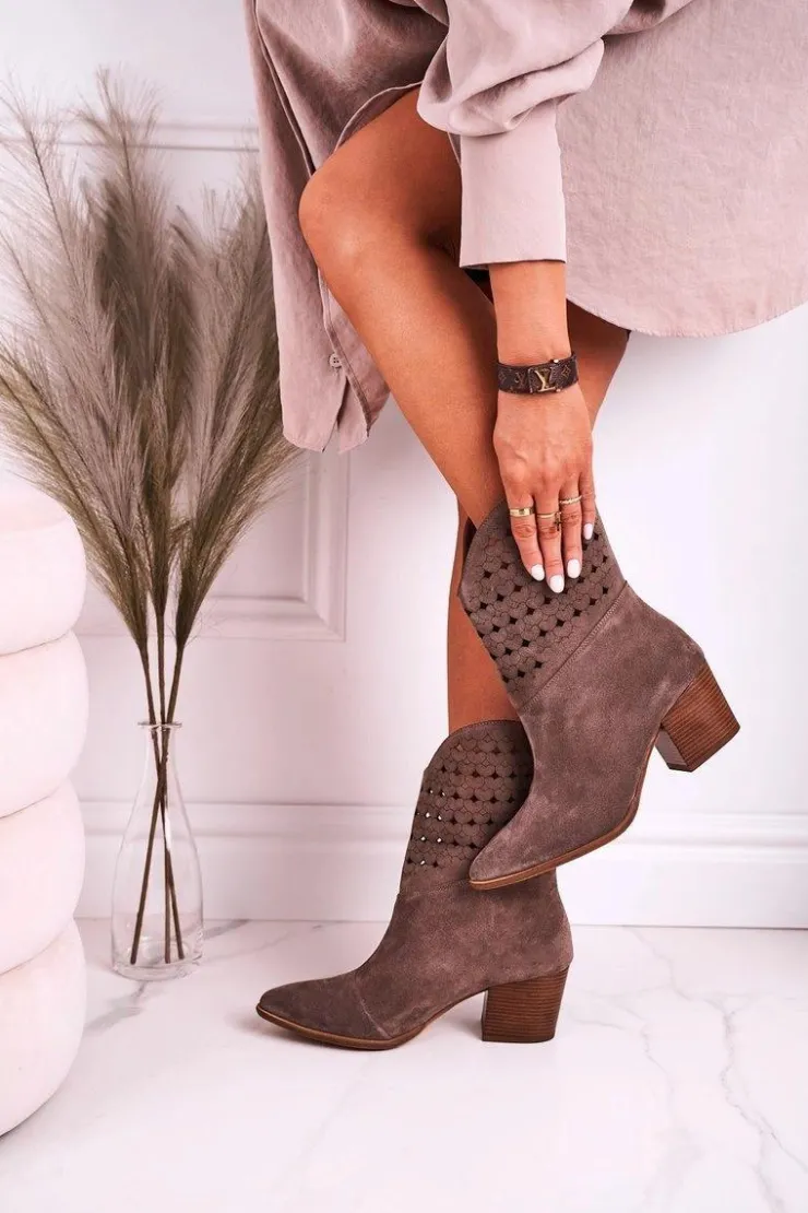 Damskie Boto Damskie Kowbojskie Botki Na Słupku Zamszowe Brązowe Emily
