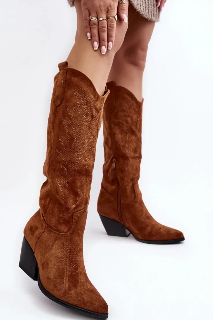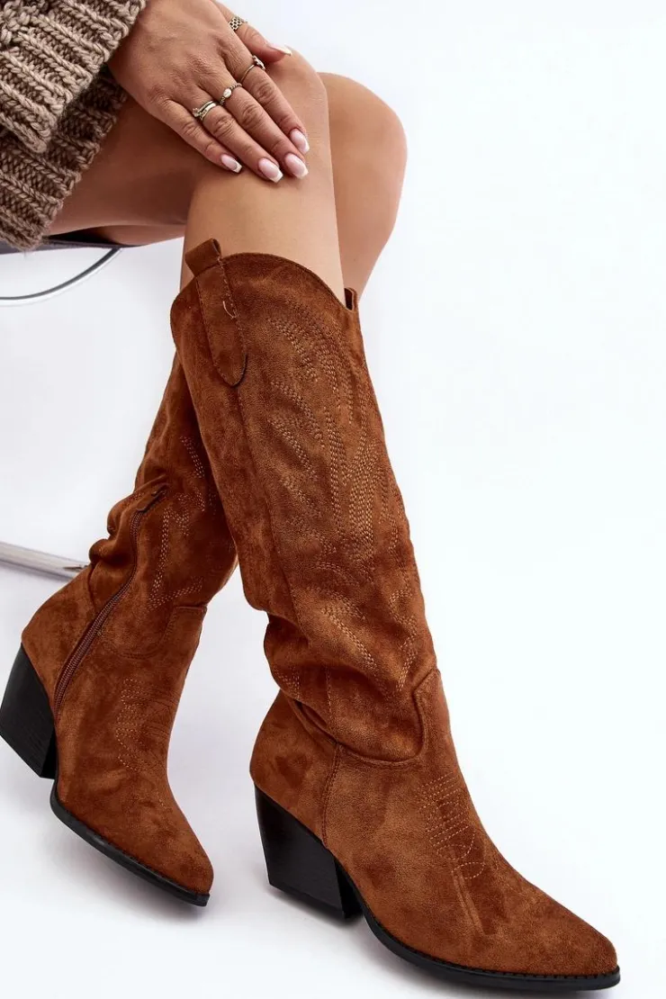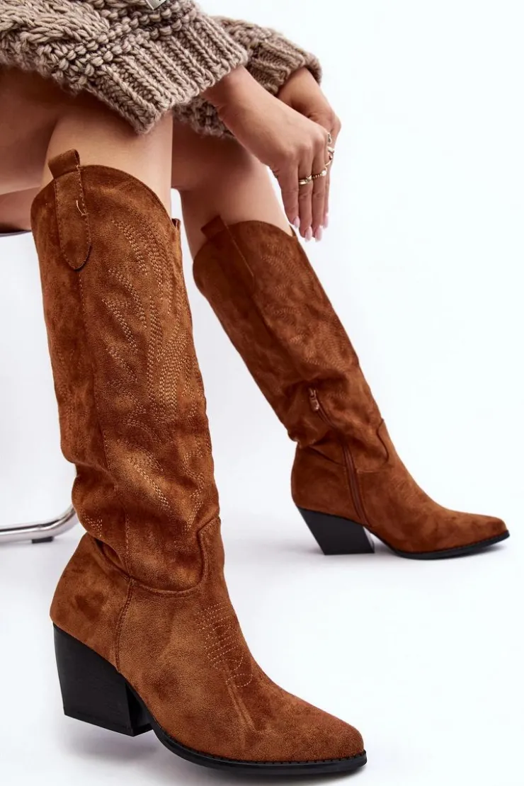 Damskie Boto Damskie Kozaki Kowbojki Na Słupku Camel Sloana