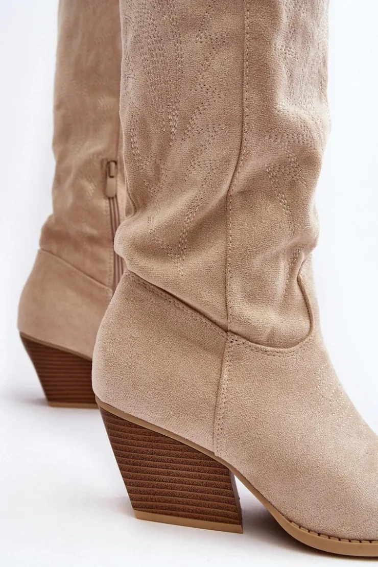 Damskie Boto Damskie Kozaki Kowbojki Na Słupku Jasnobeżowe Sloana