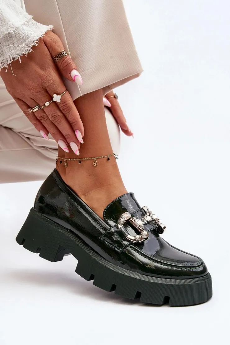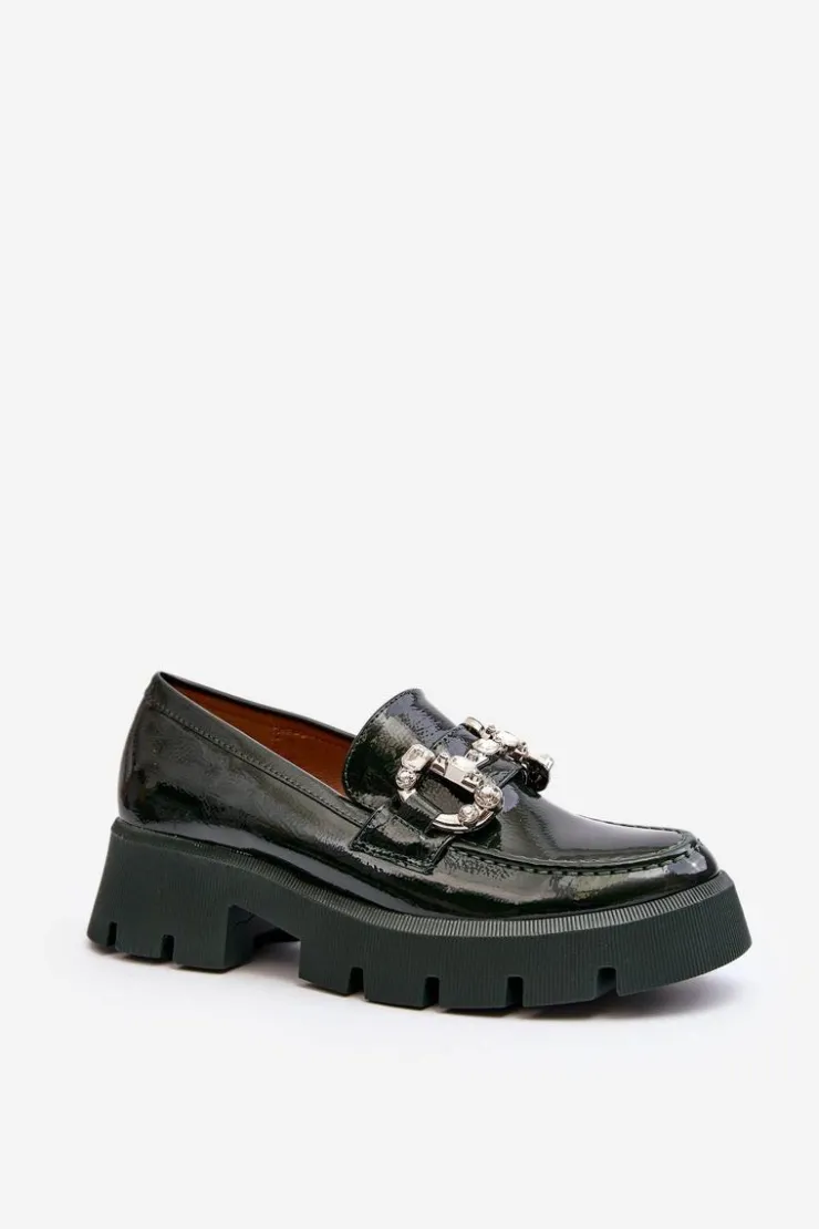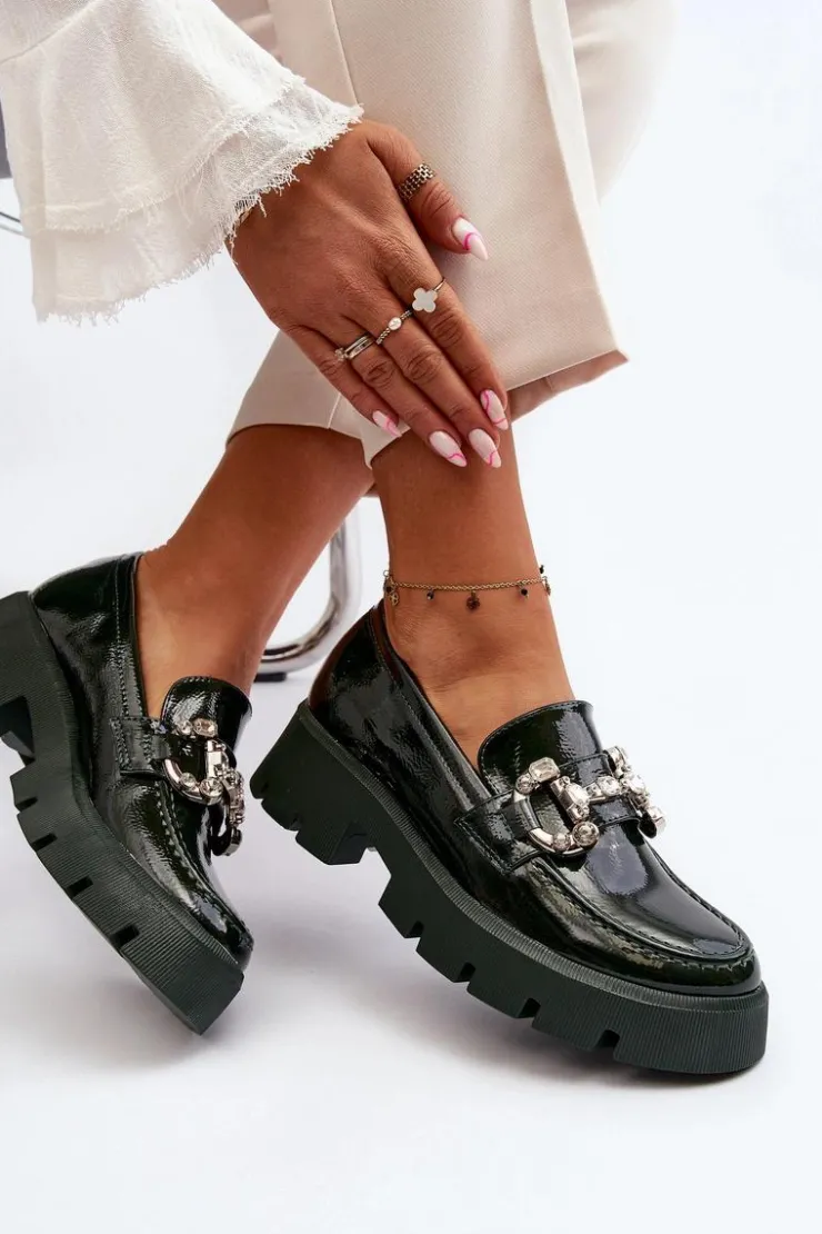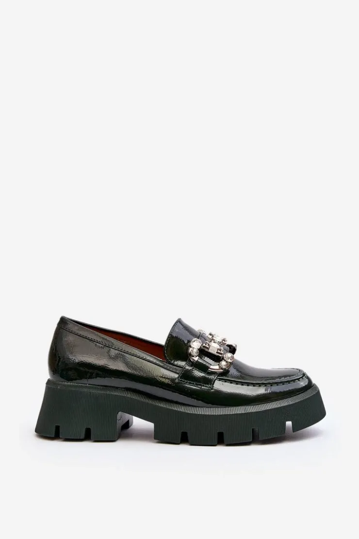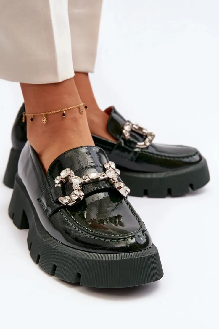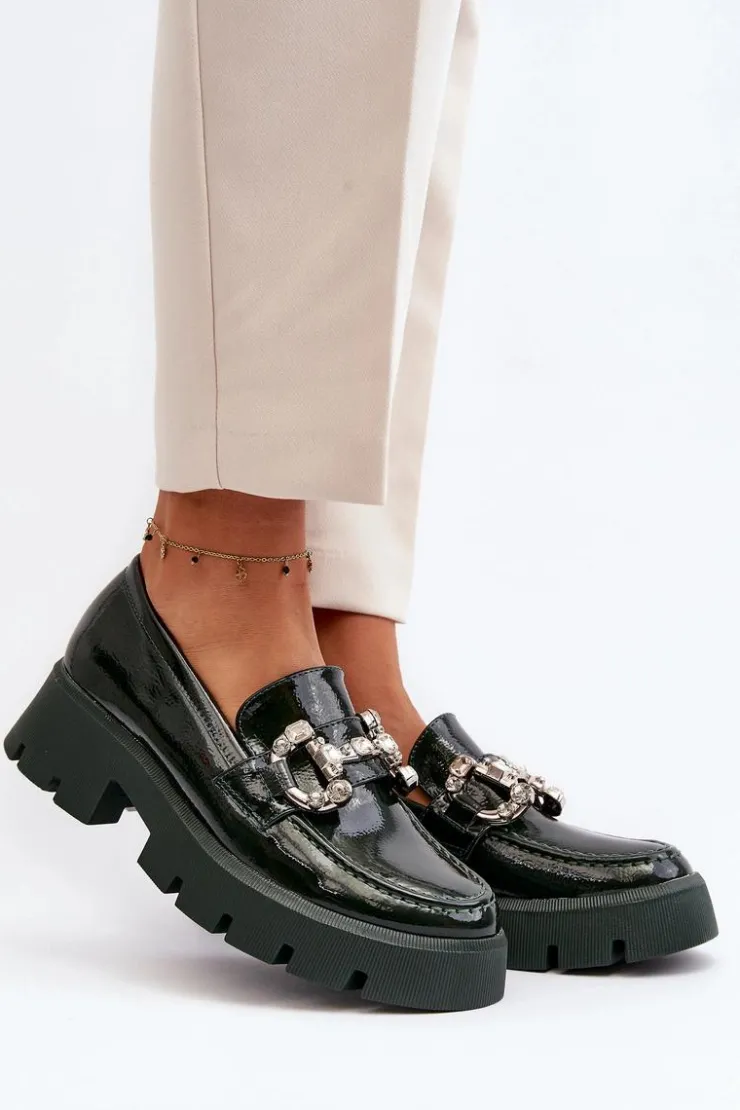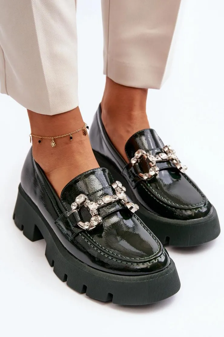 Damskie Boto Damskie Lakierowane Mokasyny Z Ozdobą Ciemnozielone Arsaba