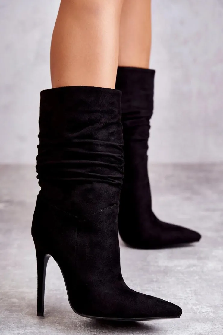 Damskie Boto Damskie Marszczone Botki Kozaki Czarne Laguna