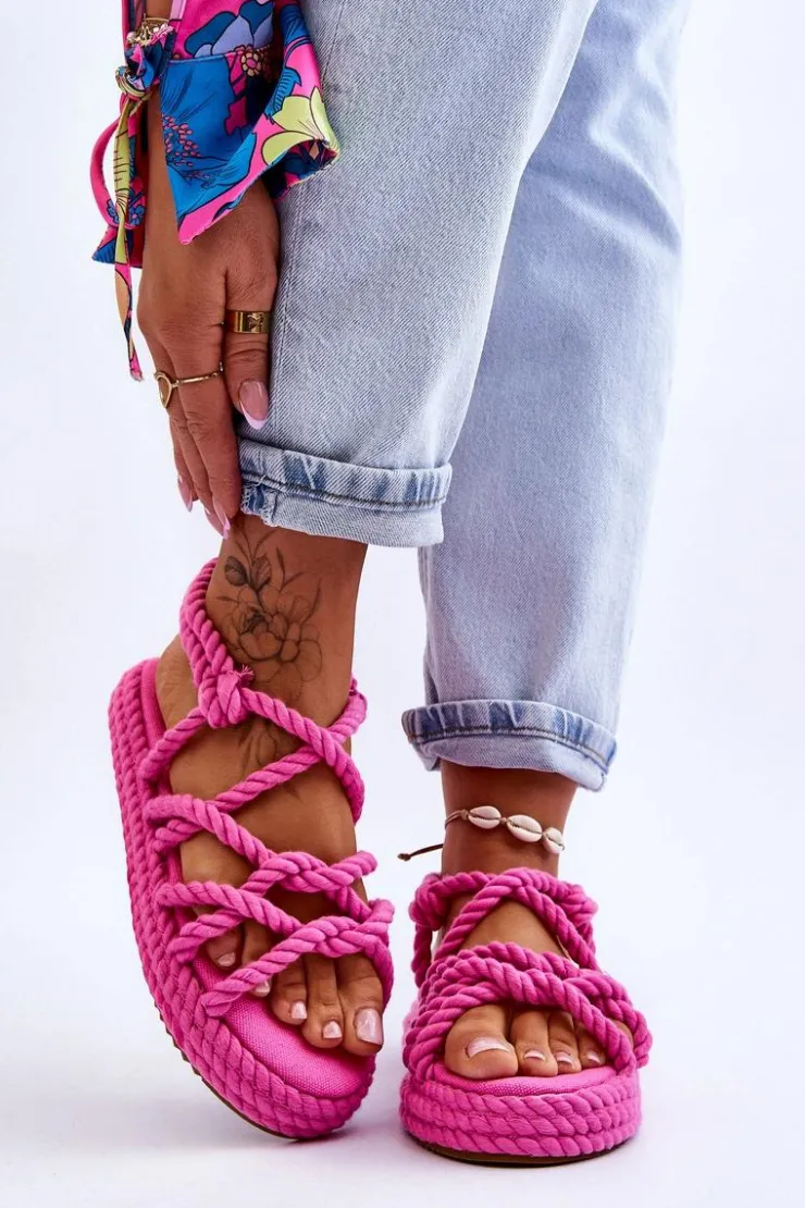 Wyjątkowe sandały damskie osadzone na masywnej platformie. Podeszwa w tych butach jest antypoślizgowa. Sandałki posiadają paseczki wykonane z plecionego, miękkiego sznurka. Model ten jest wsuwany. Sandałki są niezwykle wygodne i przewiewne. Posiadają wkładkę, która została wykonana z tkaniny i jest niezwykle komfortowa w użytkowaniu. Model ten posiada odkryty, zaokrąglony nosek. Przy wyborze rozmiaru prosimy sugerować się tabelą rozmiarów.