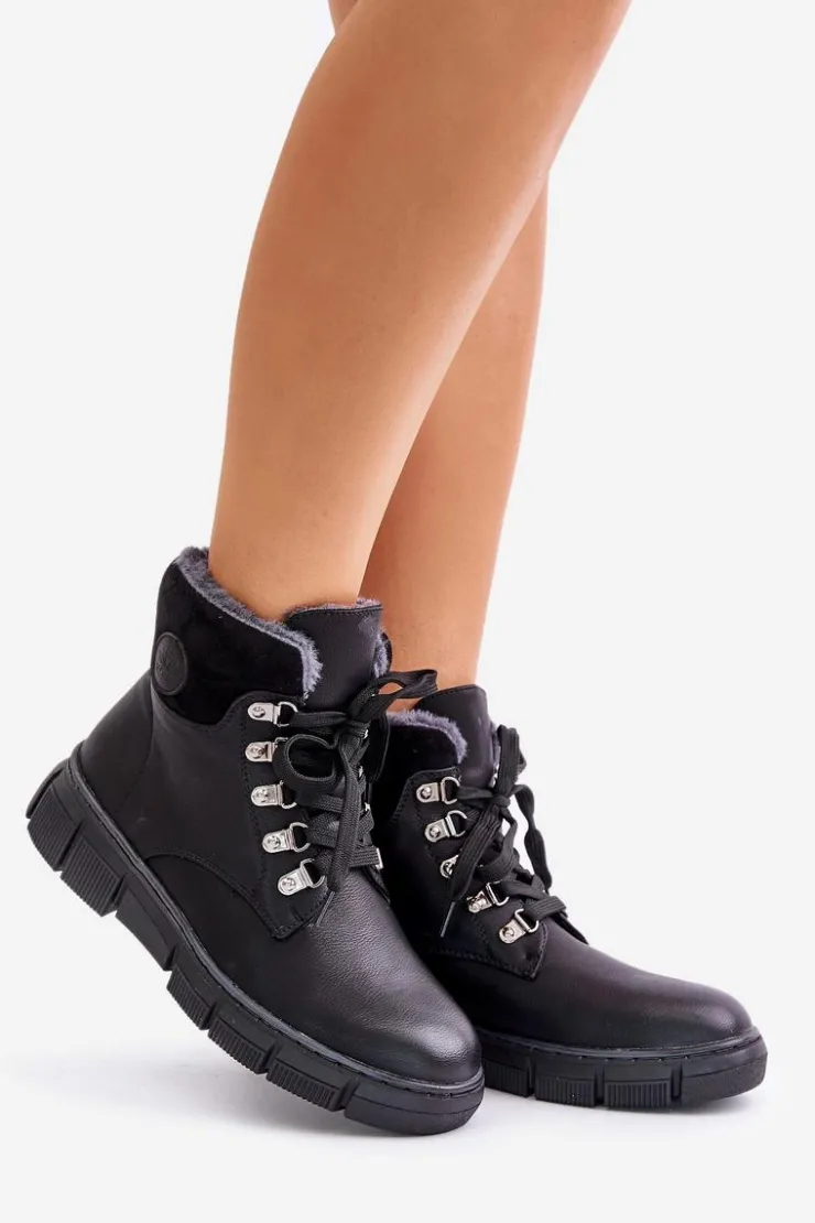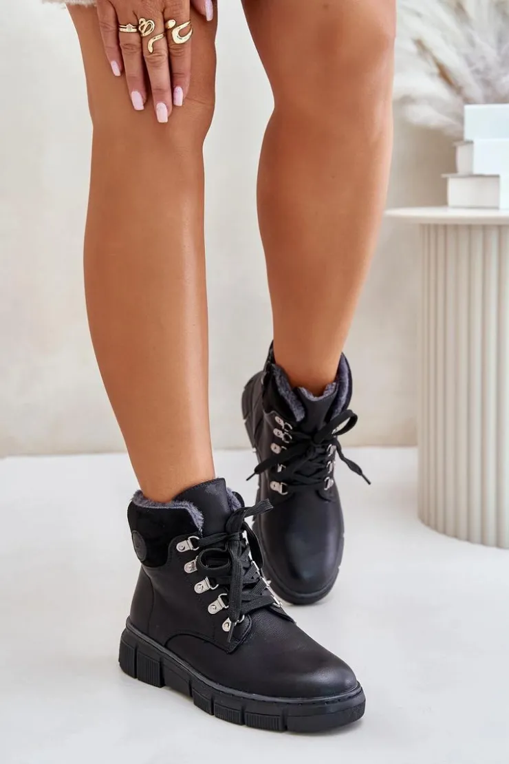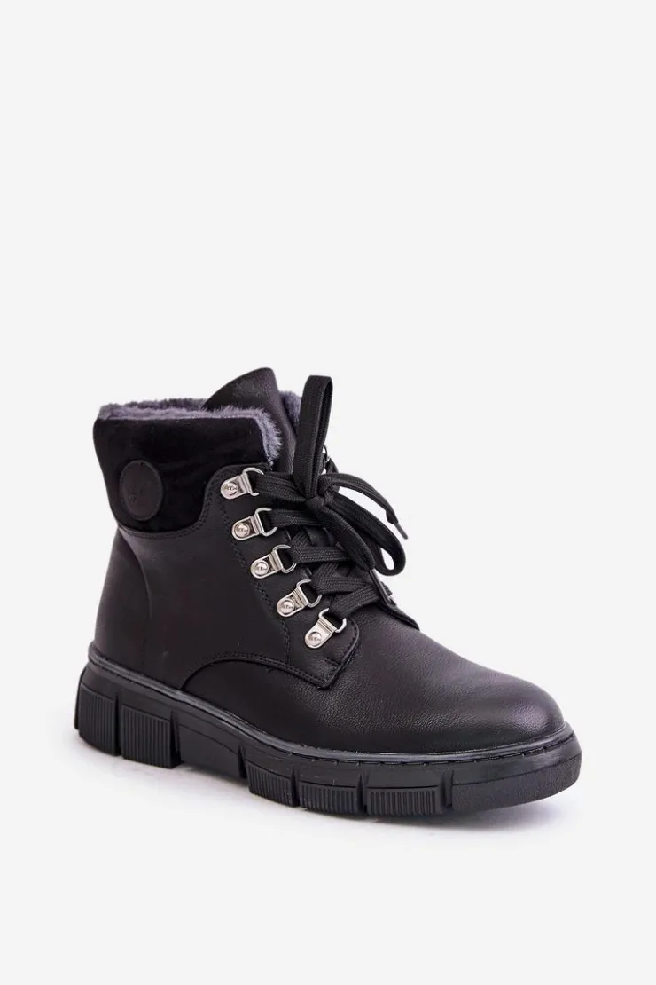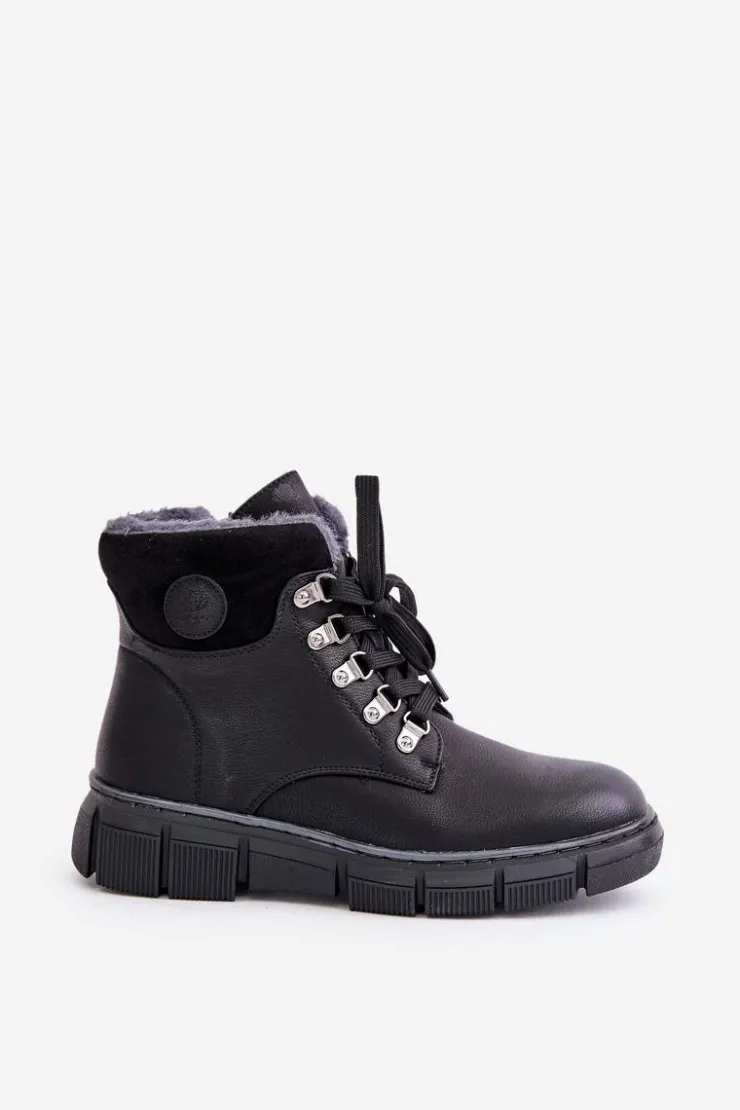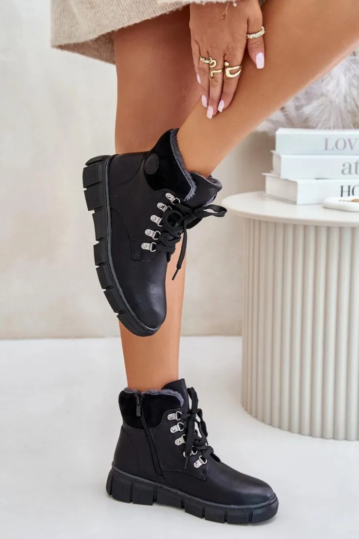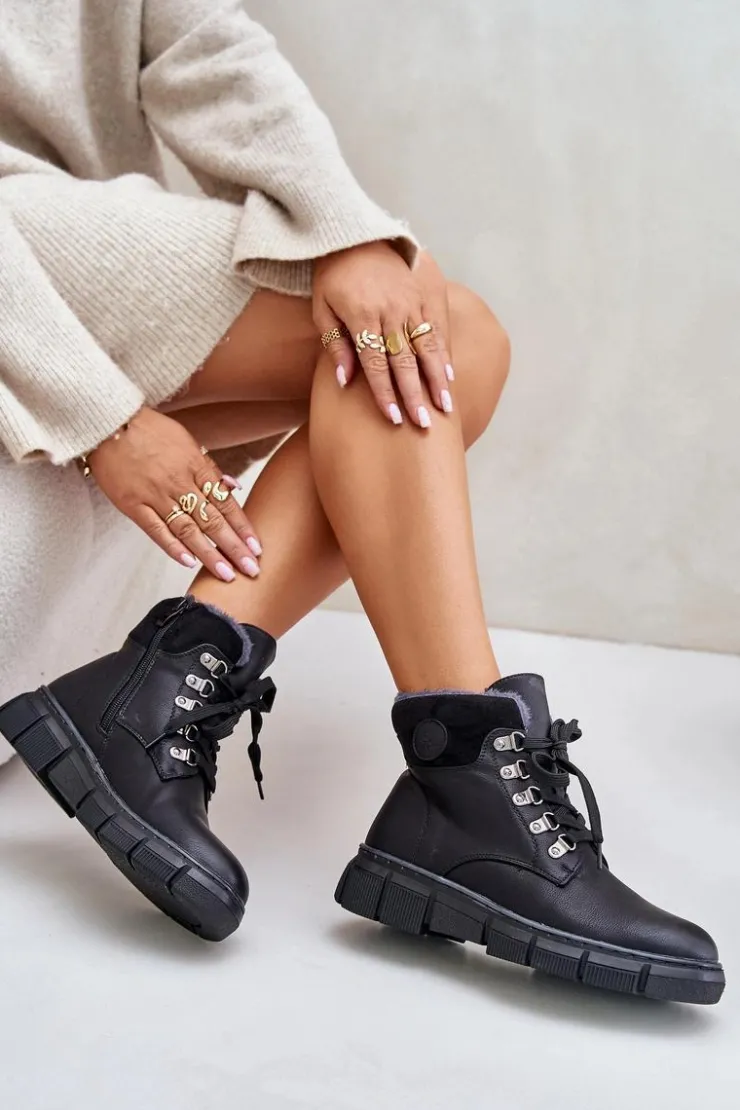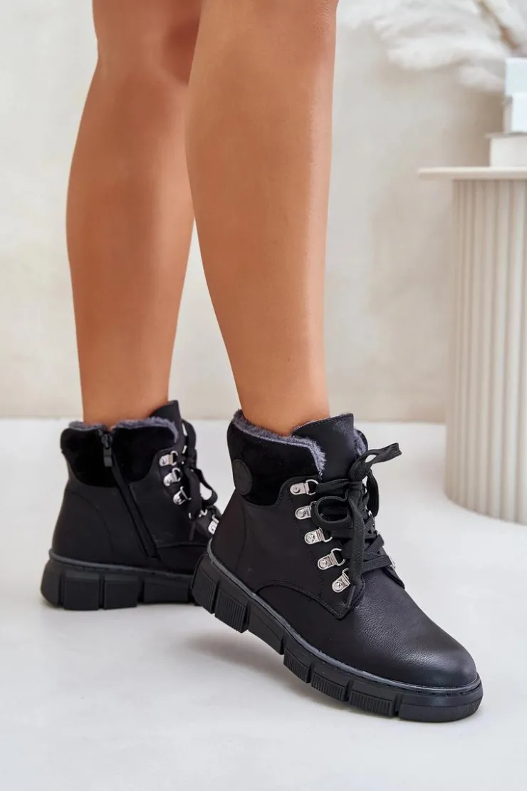 Damskie Boto Damskie Ocieplane Botki Trapery Na Zamek Czarne Mevanisa
