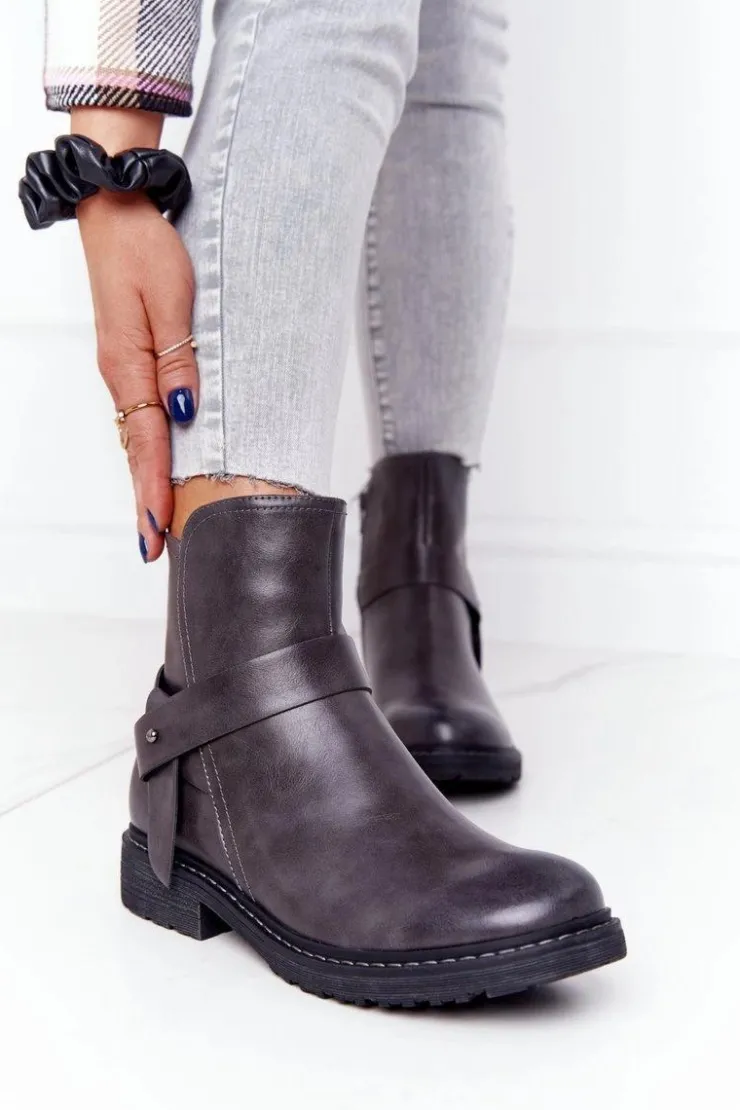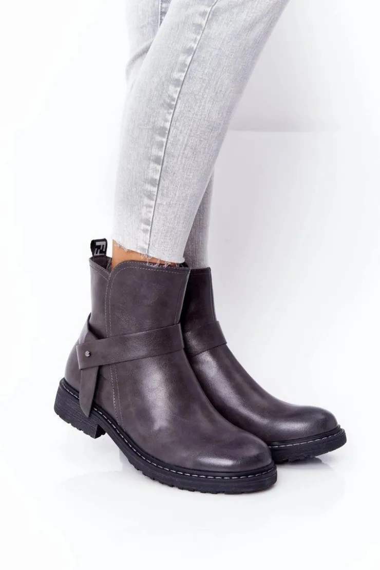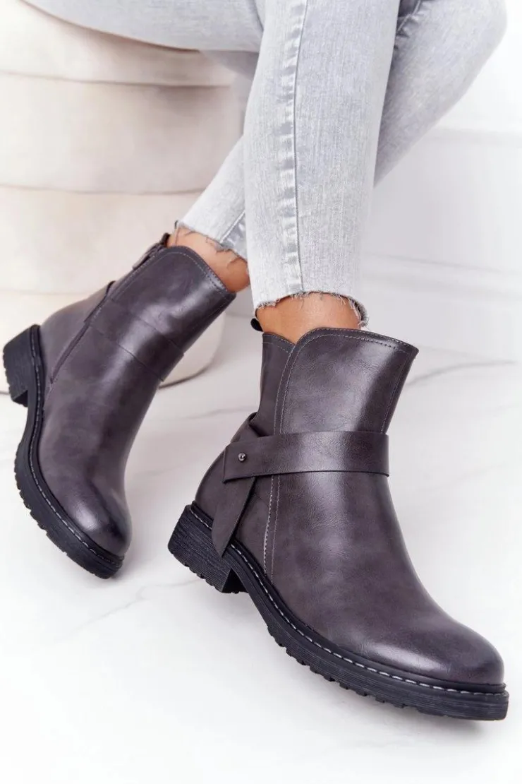 Damskie Boto Damskie Ocieplane Botki Workery Szare Alivia
