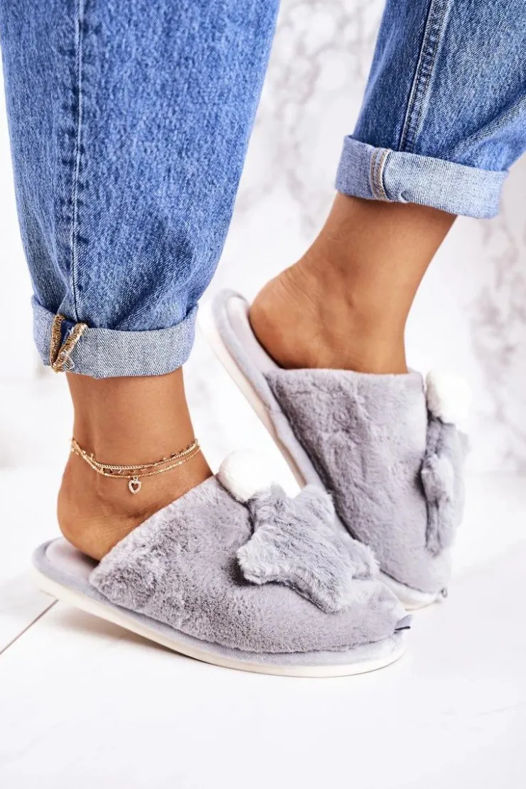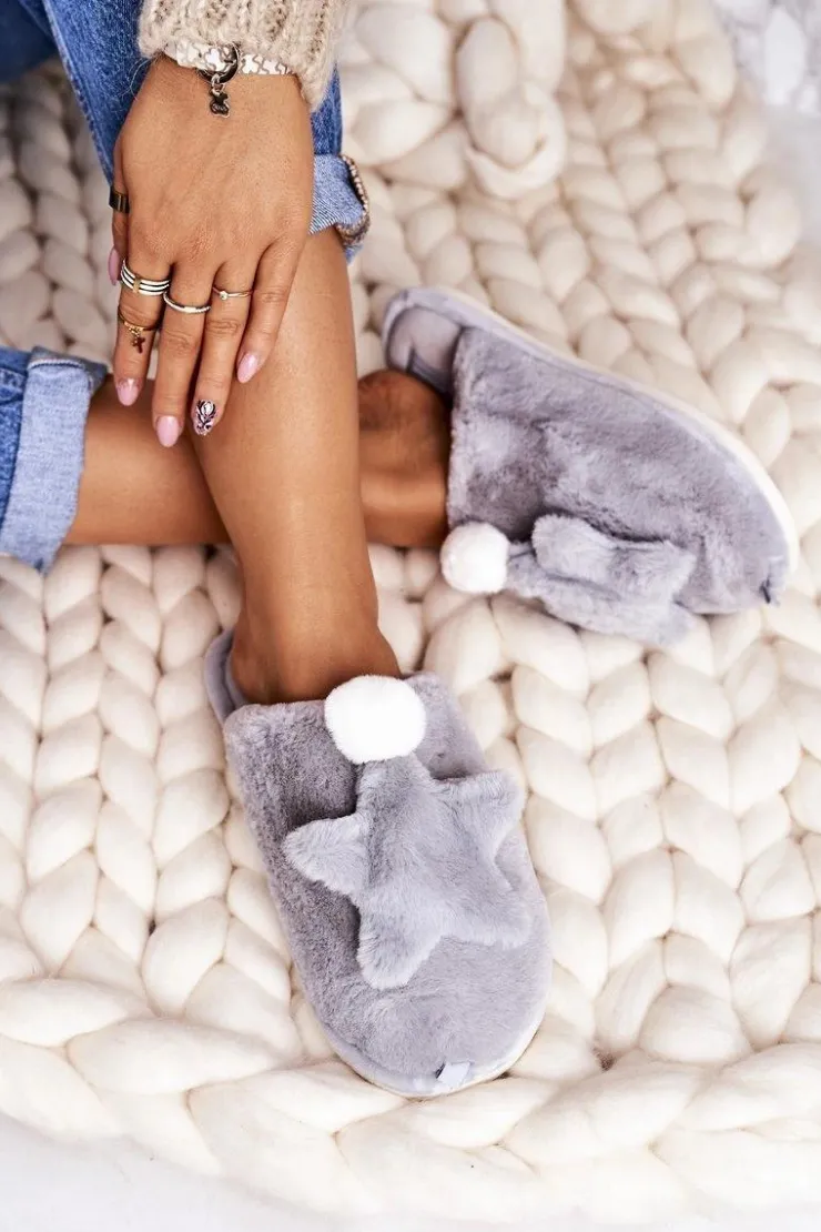 Damskie Boto Damskie Papcie Z Futerkiem I Gwiazdką Szare Night-Night