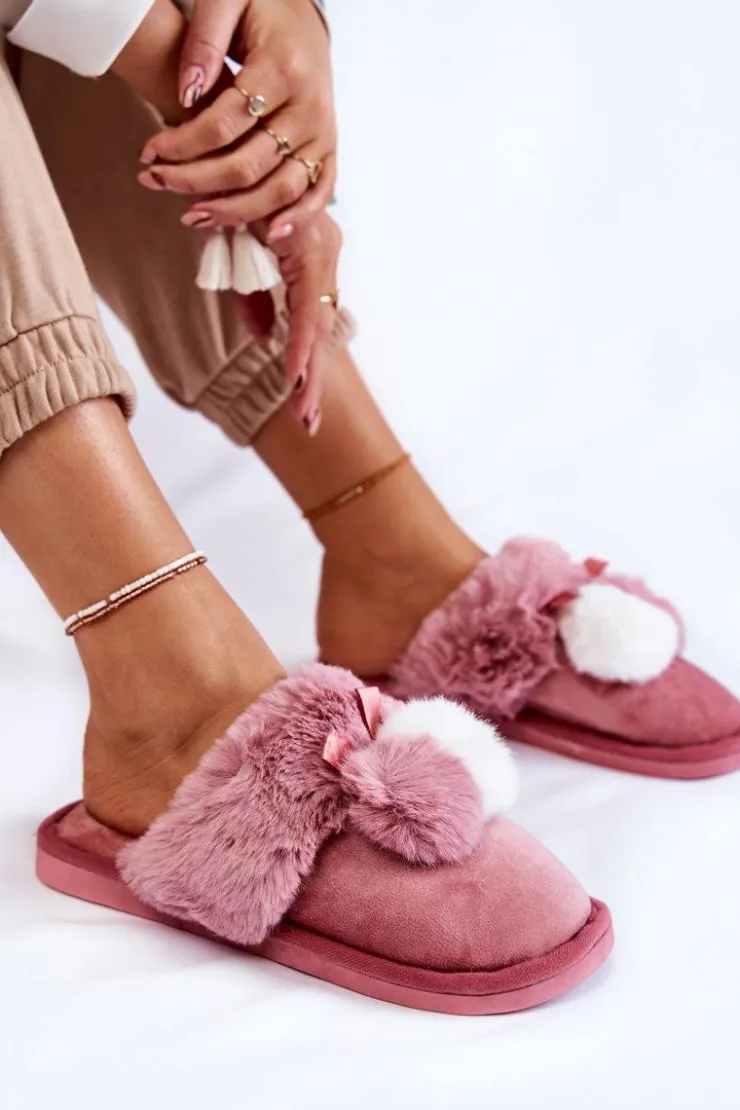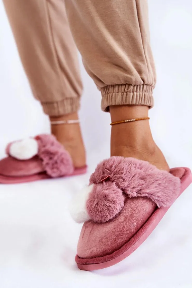 Damskie papcie zostały wykonane z miłej w dotyku tkaniny. Dodatkowo ozdobione pomponami oraz futerkiem. Wewnątrz ocieplone kocem obuwniczym. Wkładka jest miękka i komfortowa podczas użytkowania. Ten model idealnie sprawdzi się podczas chłodniejszych dni. Papcie zostały osadzone na płaskiej podeszwie wykonanej z gumowego tworzywa. Przy wyborze rozmiaru prosimy kierować się tabelą rozmiarów.