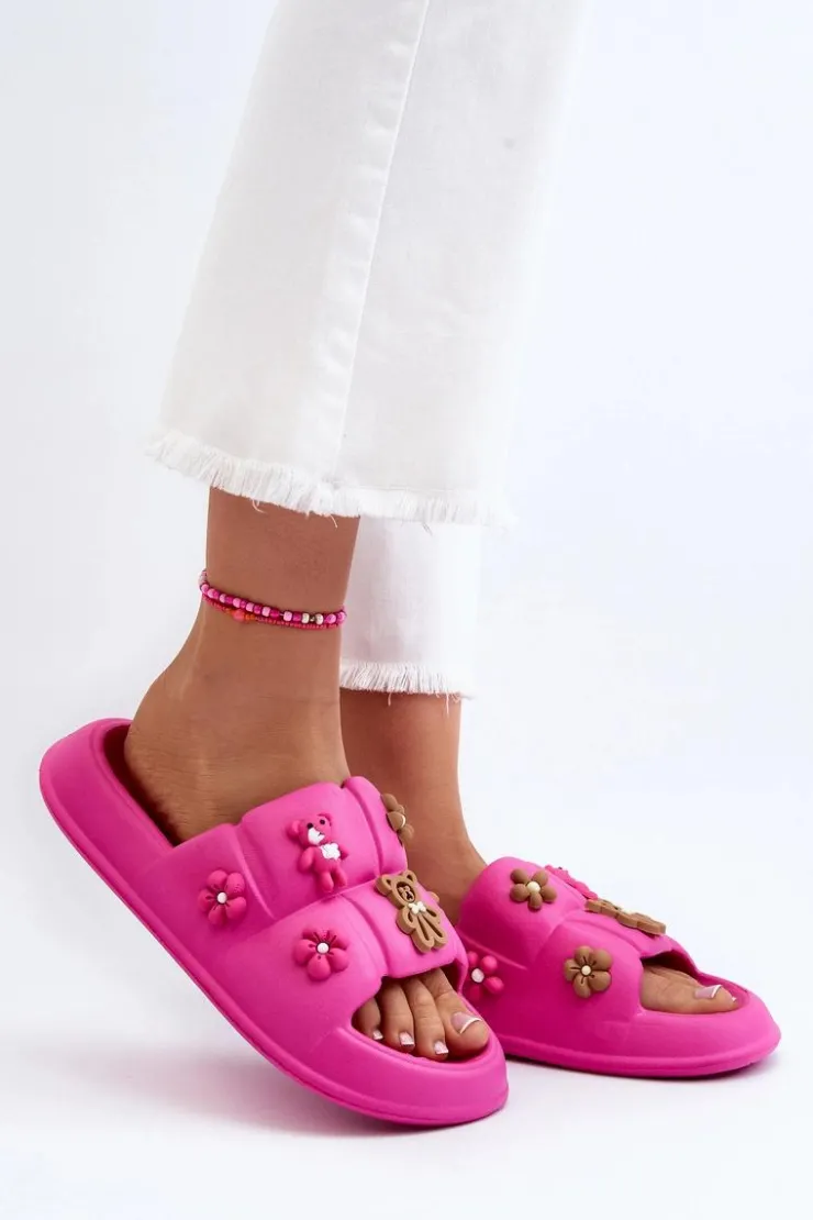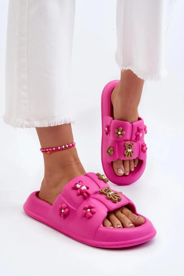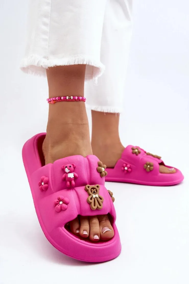 Urocze klapki damskie na szerokim pasku. Wykonane z piankowego tworzywa. Model ten posiada przyciągające uwagę ozdoby z przodu. Idealne do spacerów po plaży lub leniwego popołudnia na tarasie. Koniecznie musisz je mieć! Przy wyborze rozmiaru prosimy sugerować się tabelą rozmiarów.