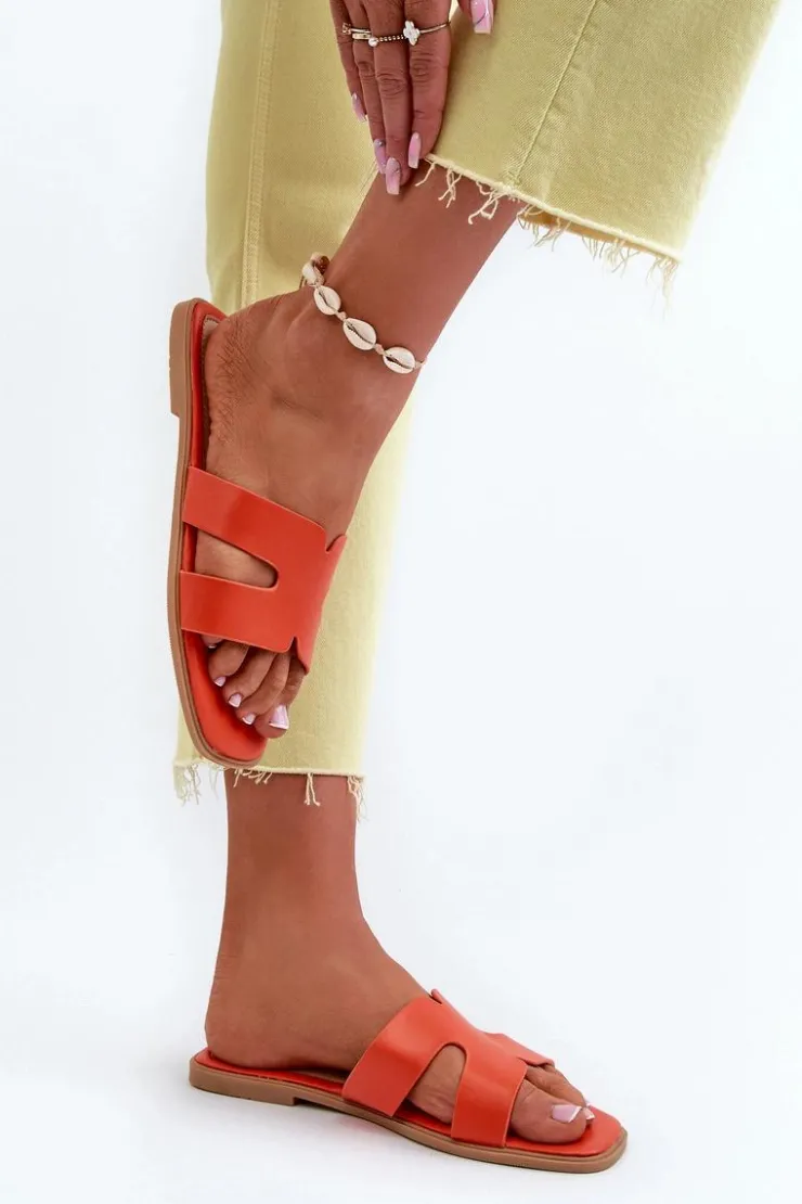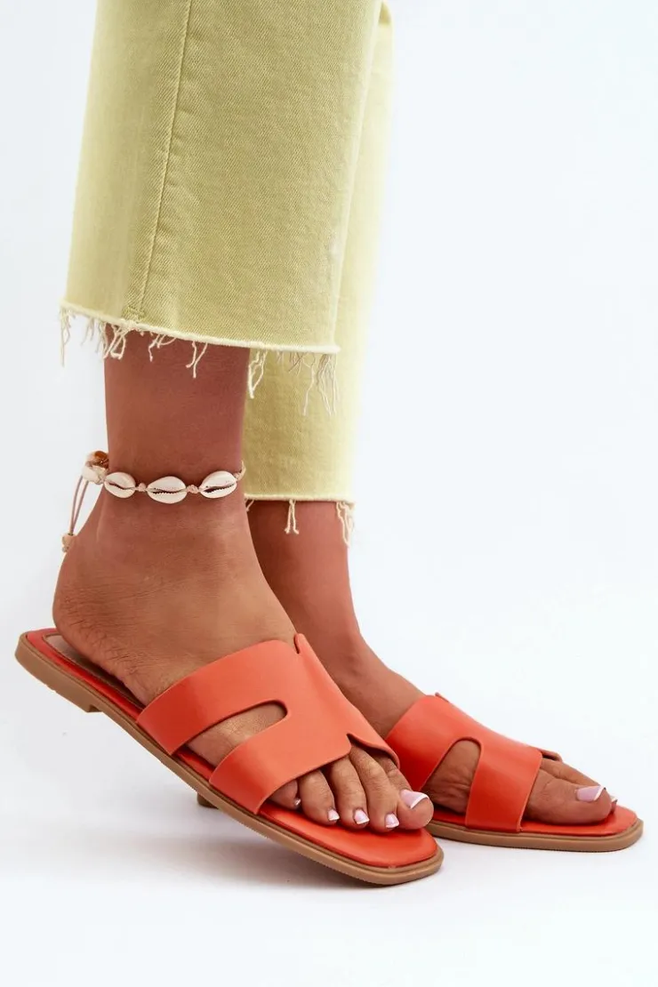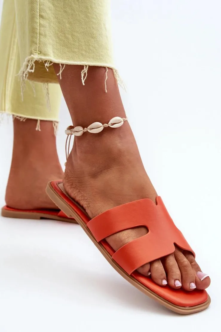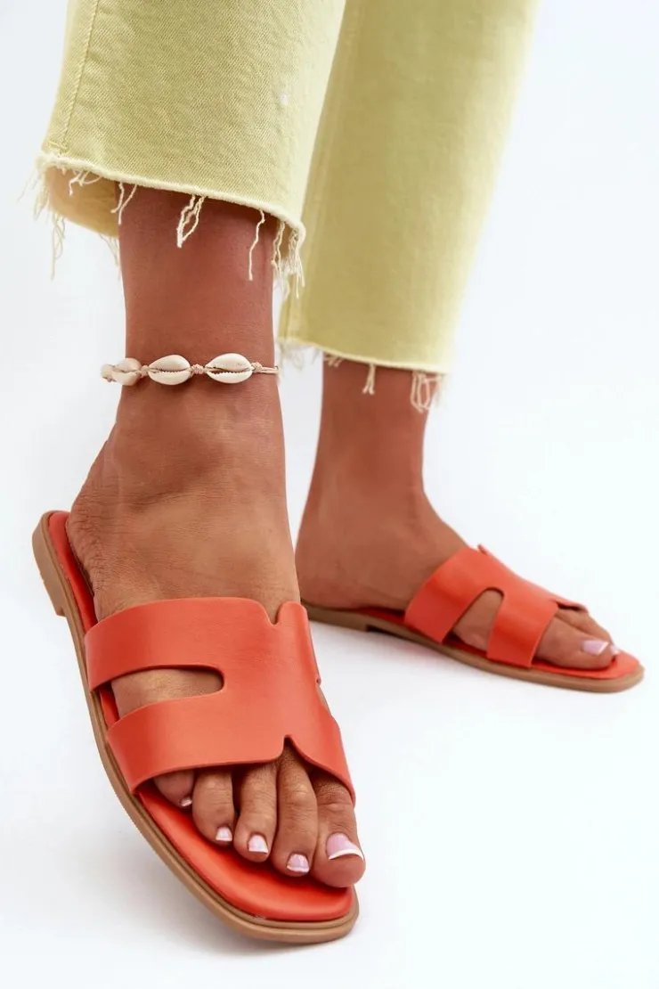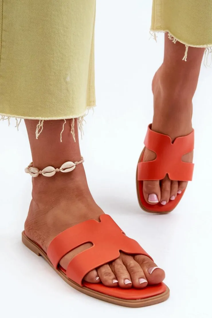 Damskie Boto Damskie Płaskie Klapki Z Wycięciami Pomarańczowe Fiviama