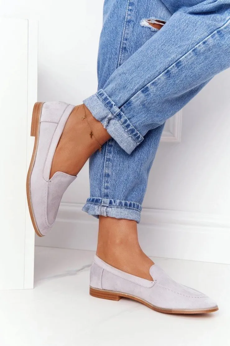 Damskie Boto Damskie Półbuty Wsuwane Zamszowe Szare Twinky